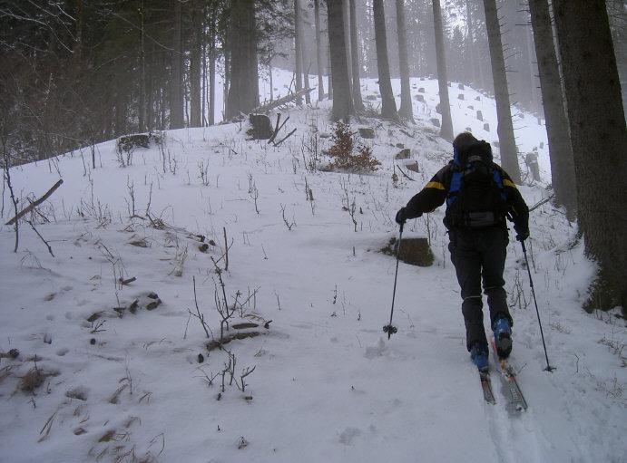 Heute stand eine wenig begangene Schitour auf dem Programm: Vom Tauglboden über den Duschenriedel zur Christel Alm und weiter auf den Trattberg (1757 m). Bis 1000 m war die karge Schneedecke im Wald durchfeuchtet, darüber stieg die Schneehöhe rasch an und es herrschten sehr gute Verhältnisse.