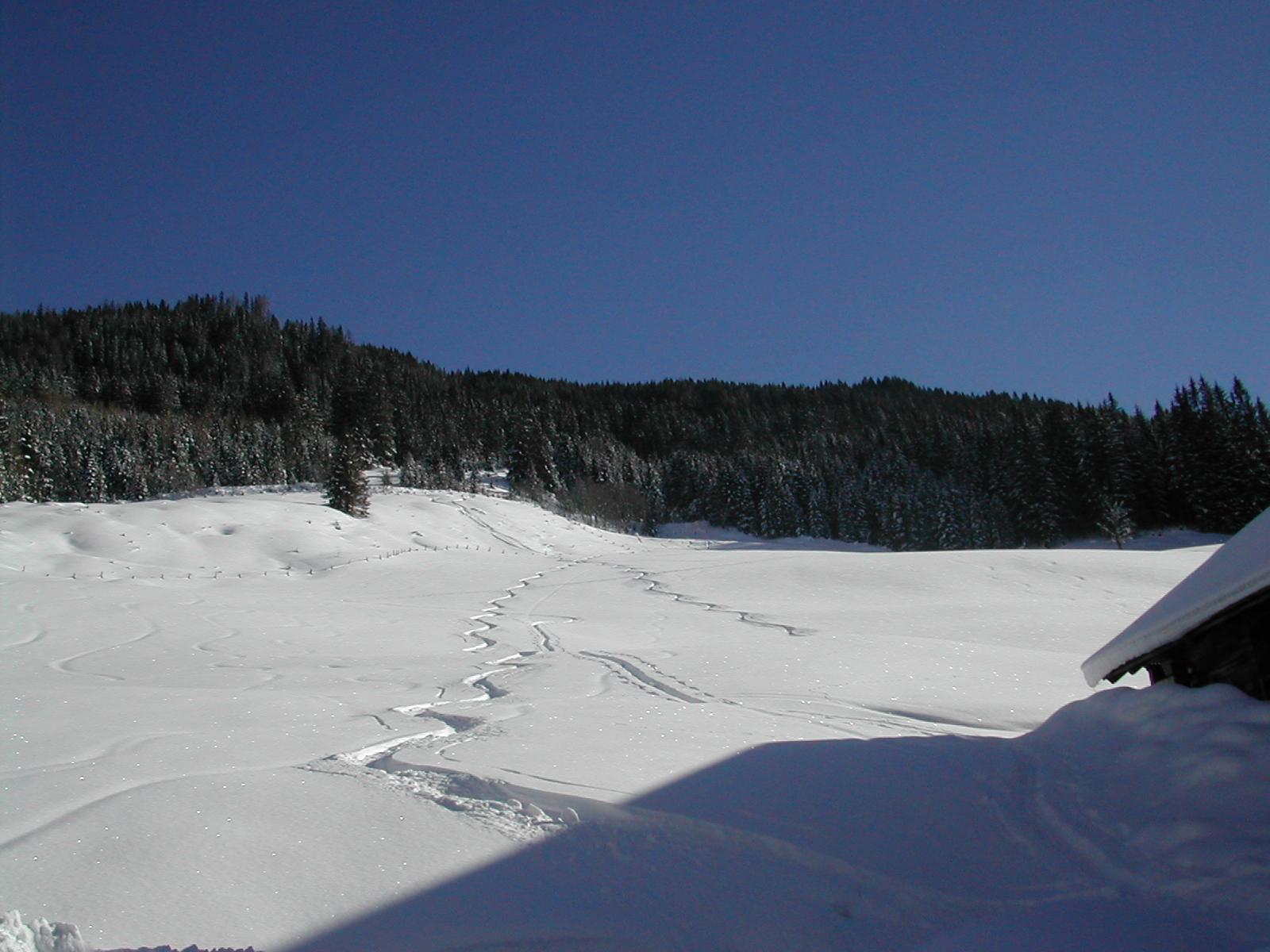 Am Freitag, 23.01.04 unternahmen wir eine genußvolle Hochwintertour aufs Kreuzeck in Karteis im Großarltal. Ca. 950 hm Spurarbeit war angesagt. Bei der Abfahrt gabs nach dem abgeblasenen Gipfelbereich die Belohnung in Form von Pulver vom Feinsten. Ein herrlicher Wintertag.