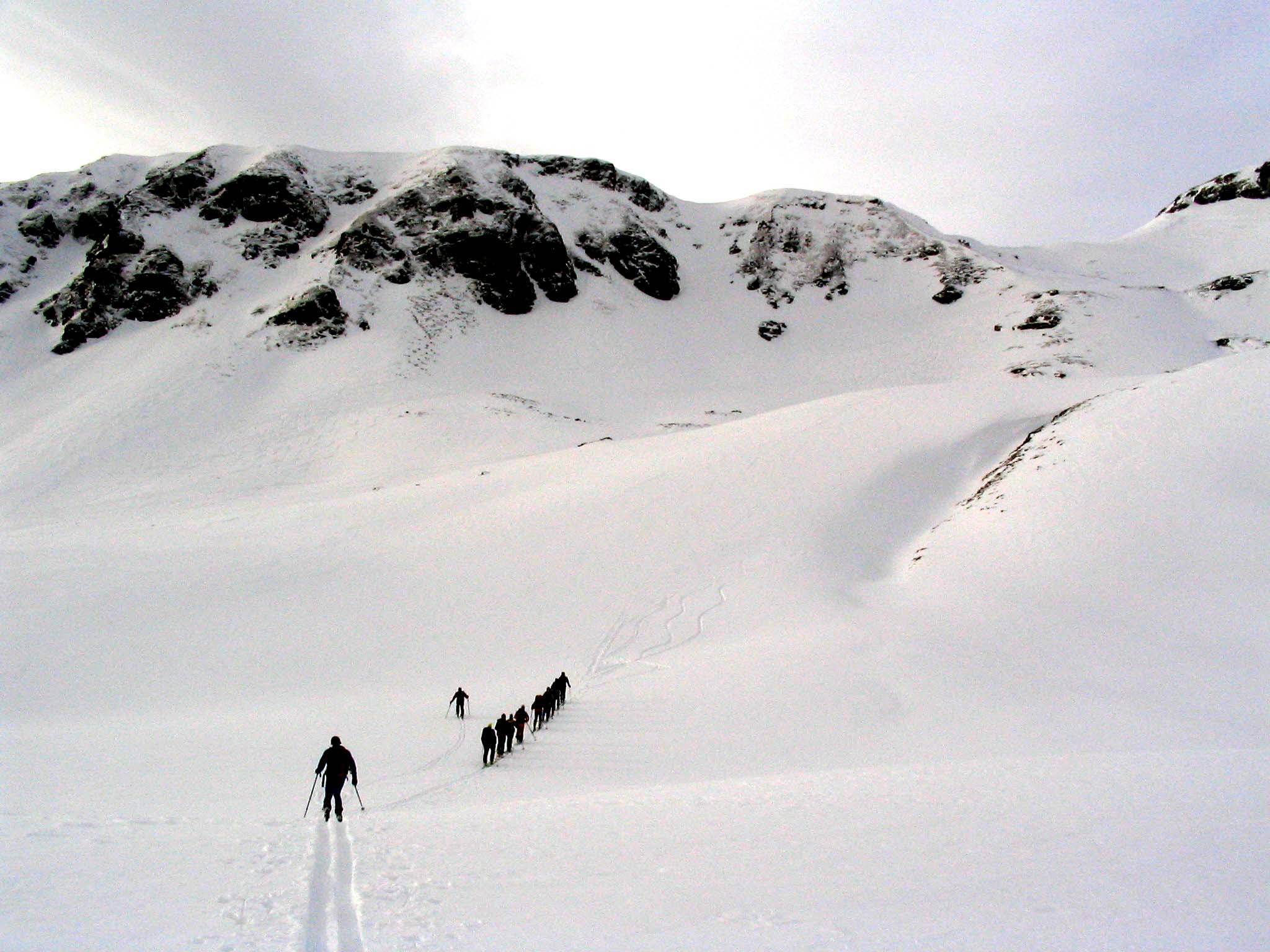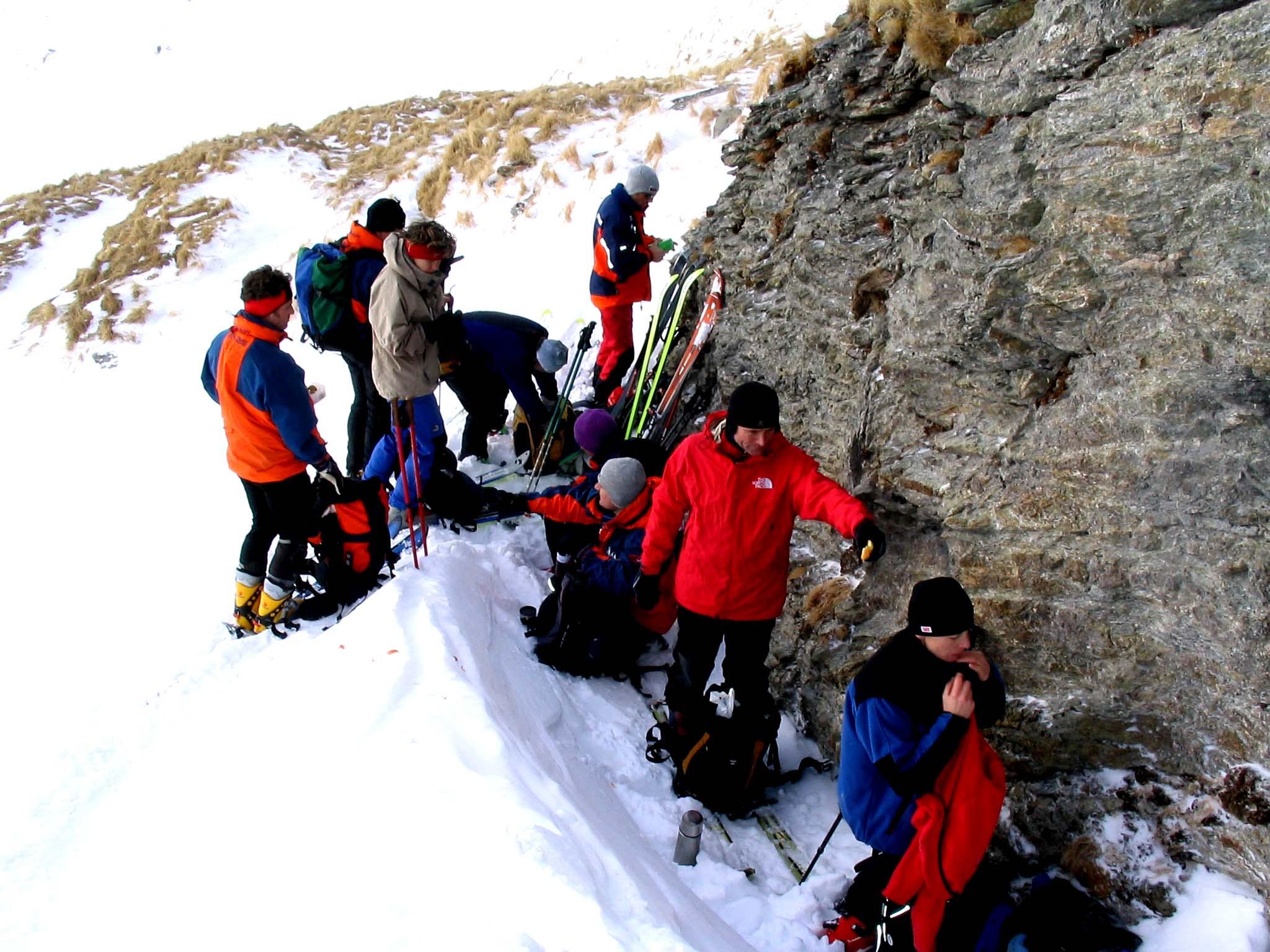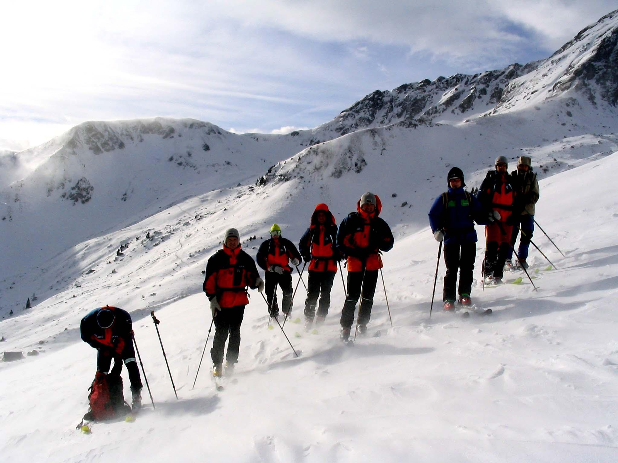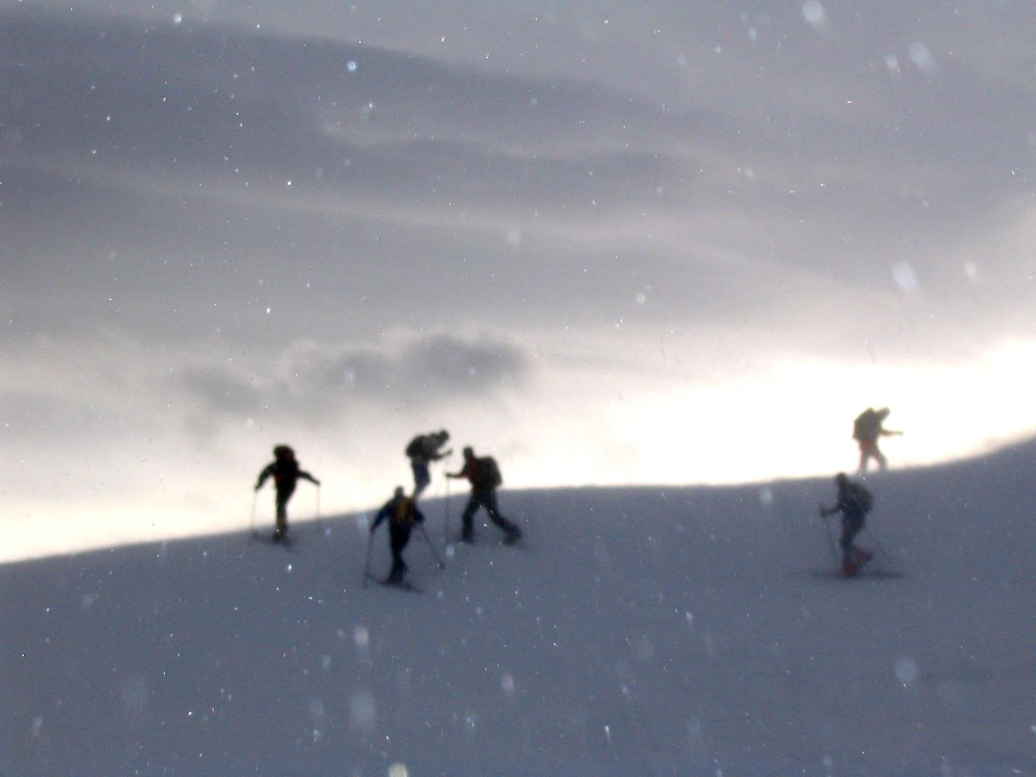Gemeinschaftstour der Bergrettung Saalfelden gemeinsam mit unseren Frauen und anschliessender Piepssuchübung auf den Schusterkogel. Extrem starker Föhn, aber sehr sichere Schneelage. Schnee windgepreßt und nich ganz leicht zu fahren.