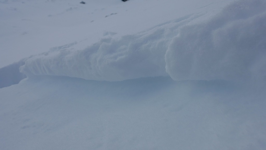 Ausreichend Schnee im flachen Gelände. Im steilen Gelände ist recht wenig Schnee, was im Aufstieg kein Problem darstellt, das Abfahren erfordert viel vorausschauendes Fahren. Weil wir uns im Kar nicht sicher waren, ob eine Abfahrt über die Südflanke möglich ist (Option Ostrinne), haben wir einen ECT auf ca. 2.000m im sehr steilen Osthang des Kreiskogels gemacht, der folgendes folgendes Ergebnis brachte: Die dünne Triebschneeauflage ging sofort ab, die darunter liegende Schneedecke konnte an dieser Stelle nicht ausgelöst werden (siehe Fotos). Schneehöhe an dem Platz 150cm. Persönliche Meinung: "Es war eine Punktlandung des LWD". Im Aufstieg zeigte sich, dass es doch größere zusammenhängende Schneefelder gibt und eine Abfahrt möglich ist. Wir sind ohne Steinkontakt in der Abfahrt bis ins Kar durchgekommen!