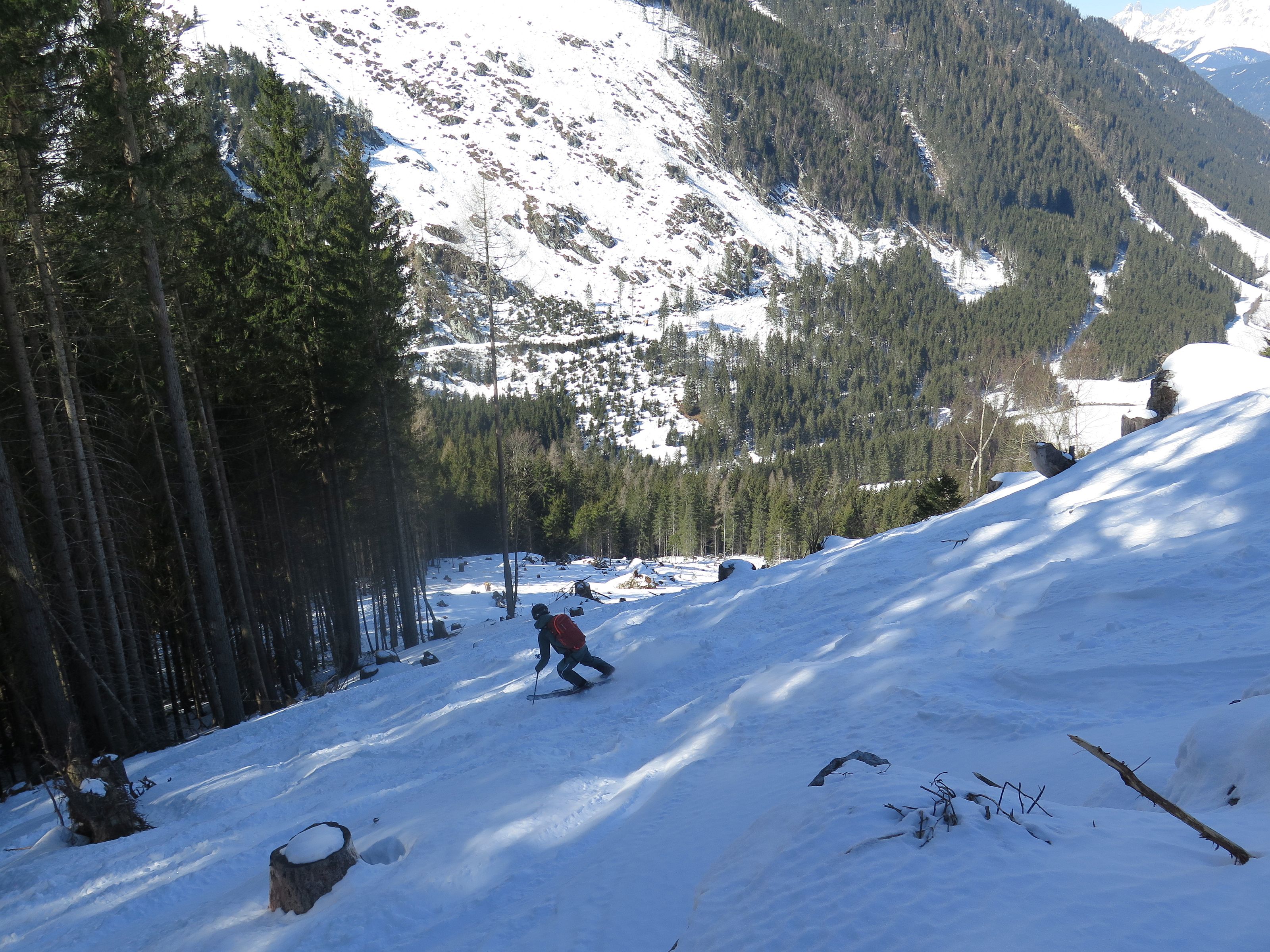 Im Schatten und im Wald noch Pulvrig , in der Sonne leichter Harschdeckel