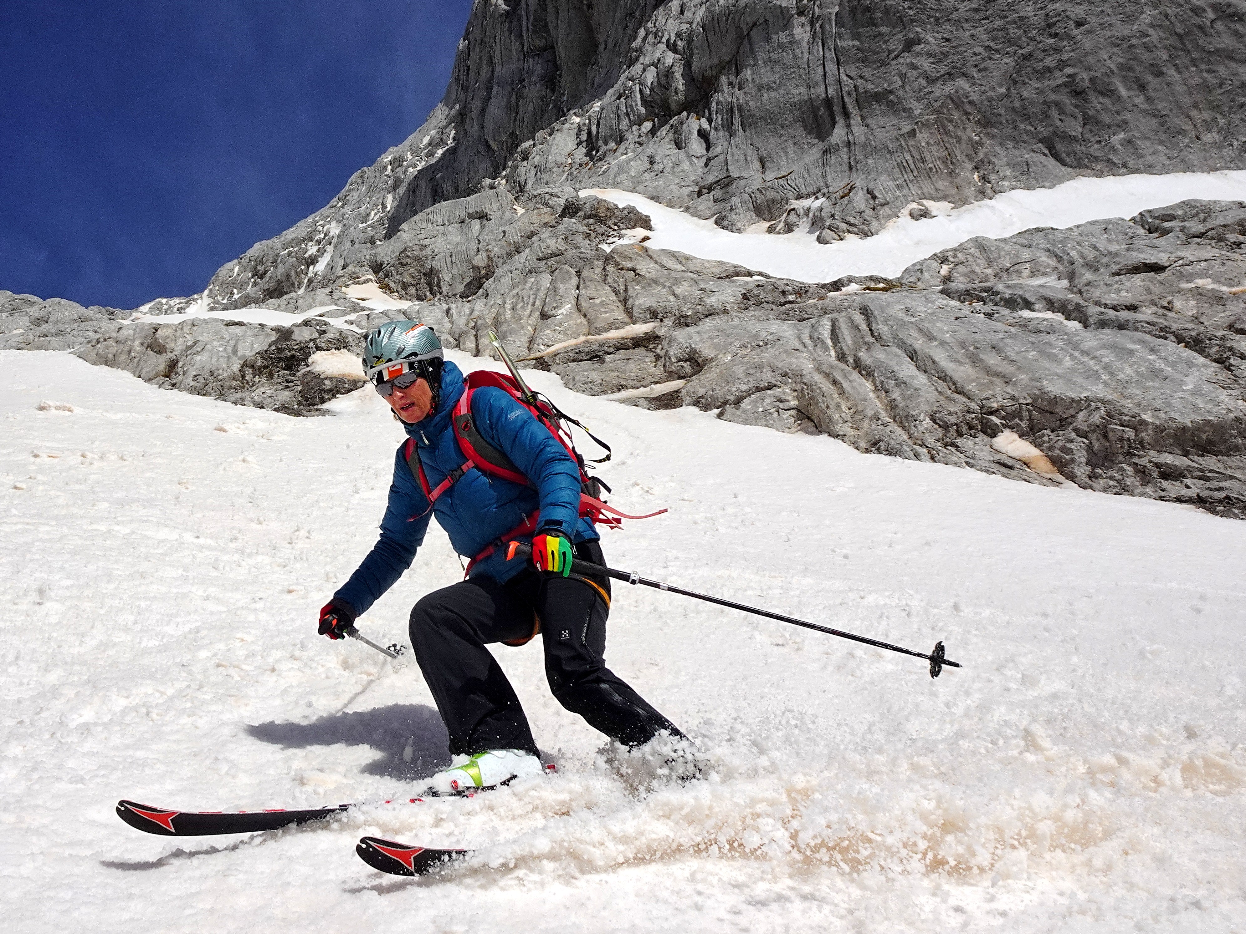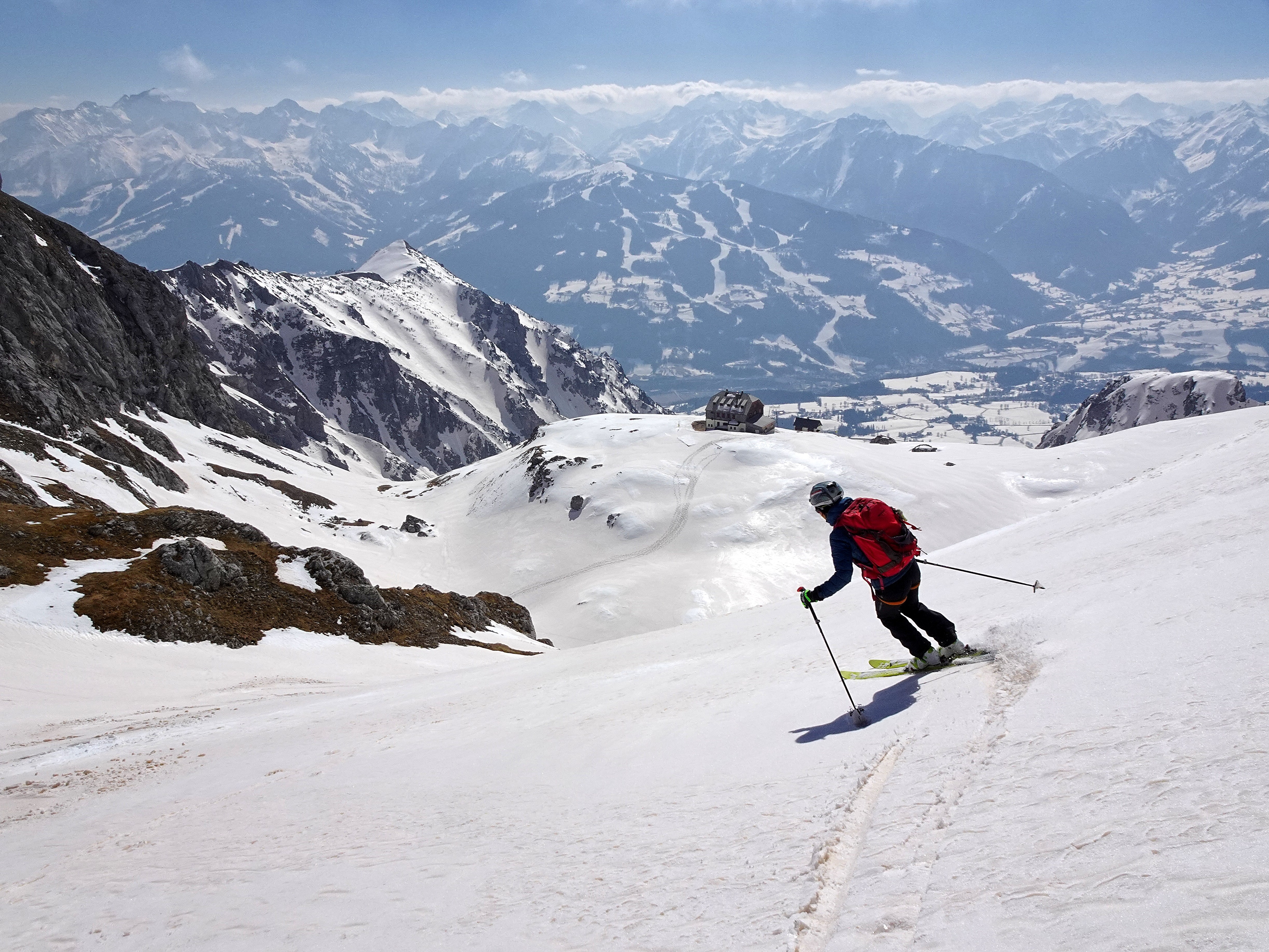 Derzeit ideale Frühjahrsverhältnisse nach wolkenlosen Nächten. Alle Touren sind möglich. Am Dachstein Pickel erforderlich, da Versicherungen teilweise eingeschneit. Steilabfahrer können sich austoben, Firnschmierer genießen. So ist z.B. die rote Rinne am Röthelstein komplett zerfahren. Abfahrten bis ins Tal sämtlich (noch) möglich. Auch Gosau. Für die Überquerer ist nun wieder eine Rückfahrt mit dem Autobus organisiert (Abfahrt 15:30 Obertraun)