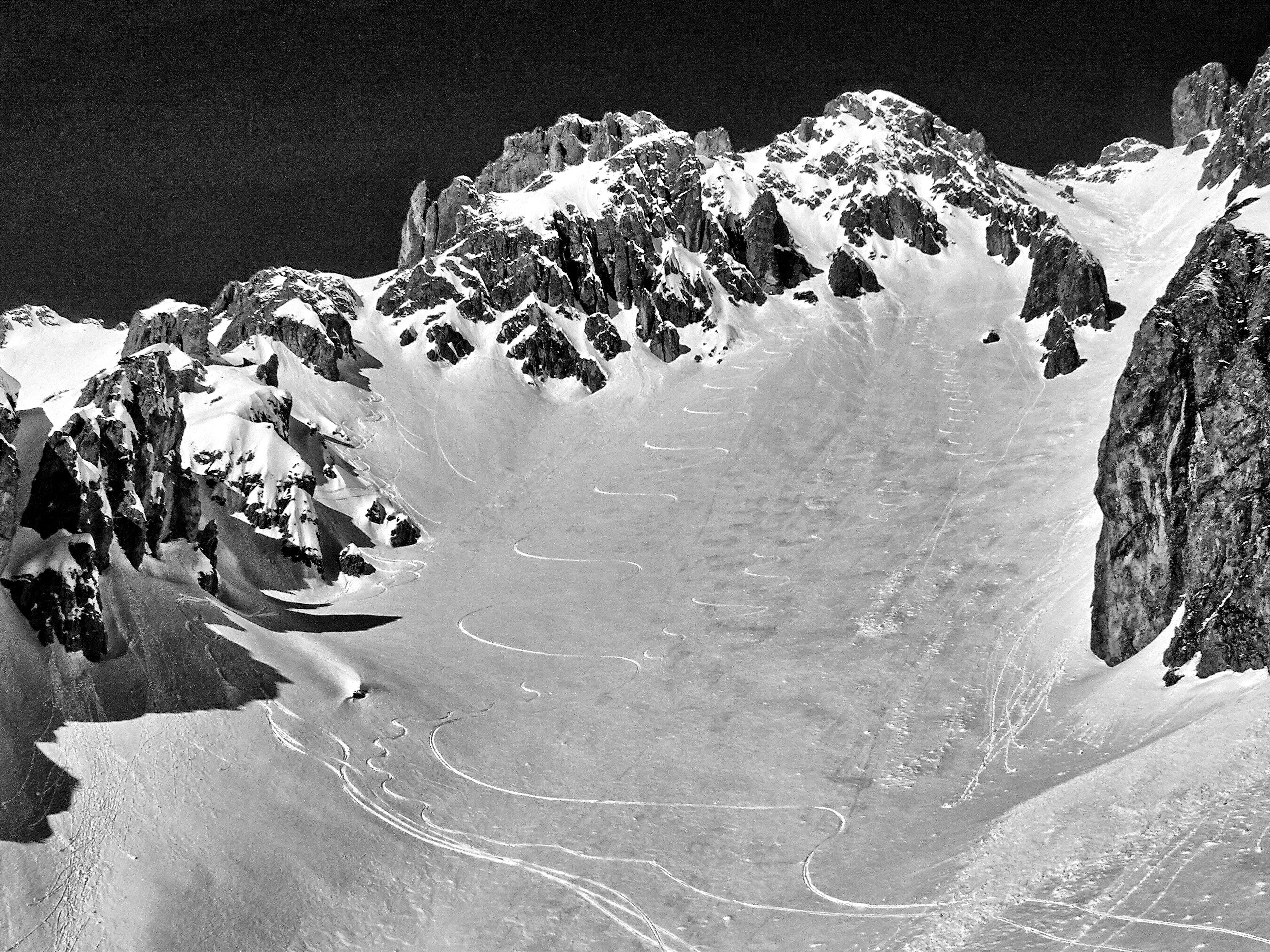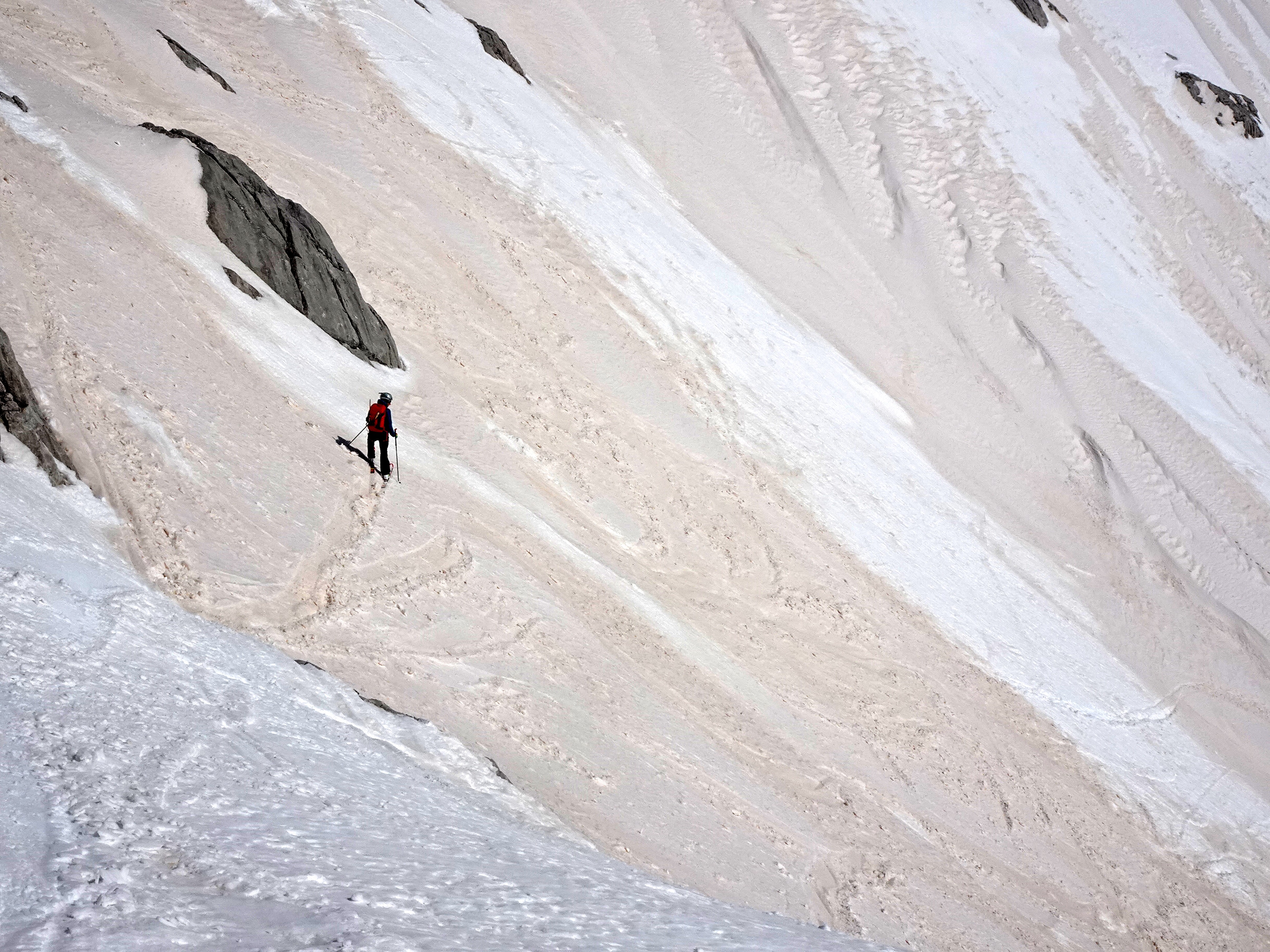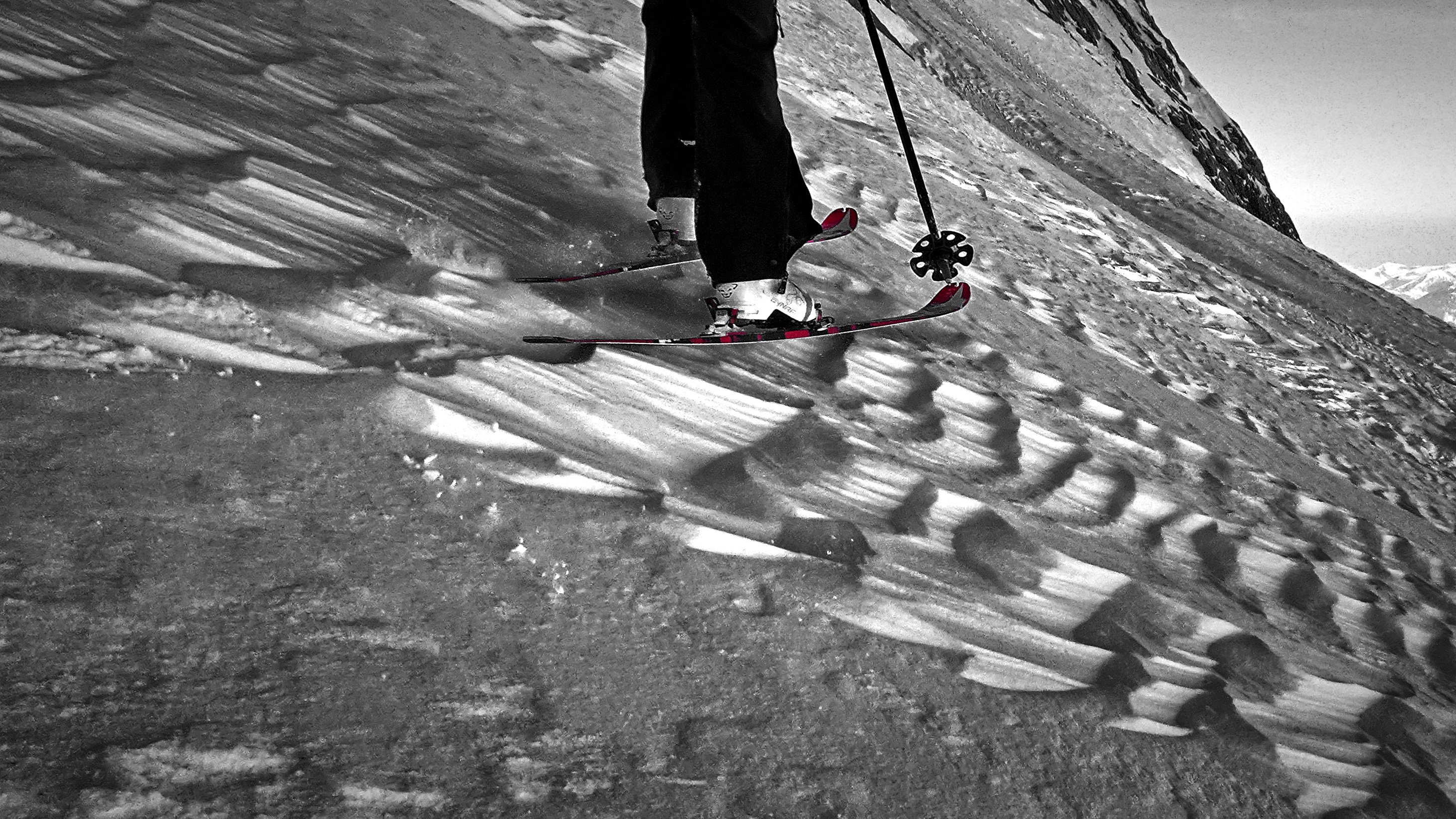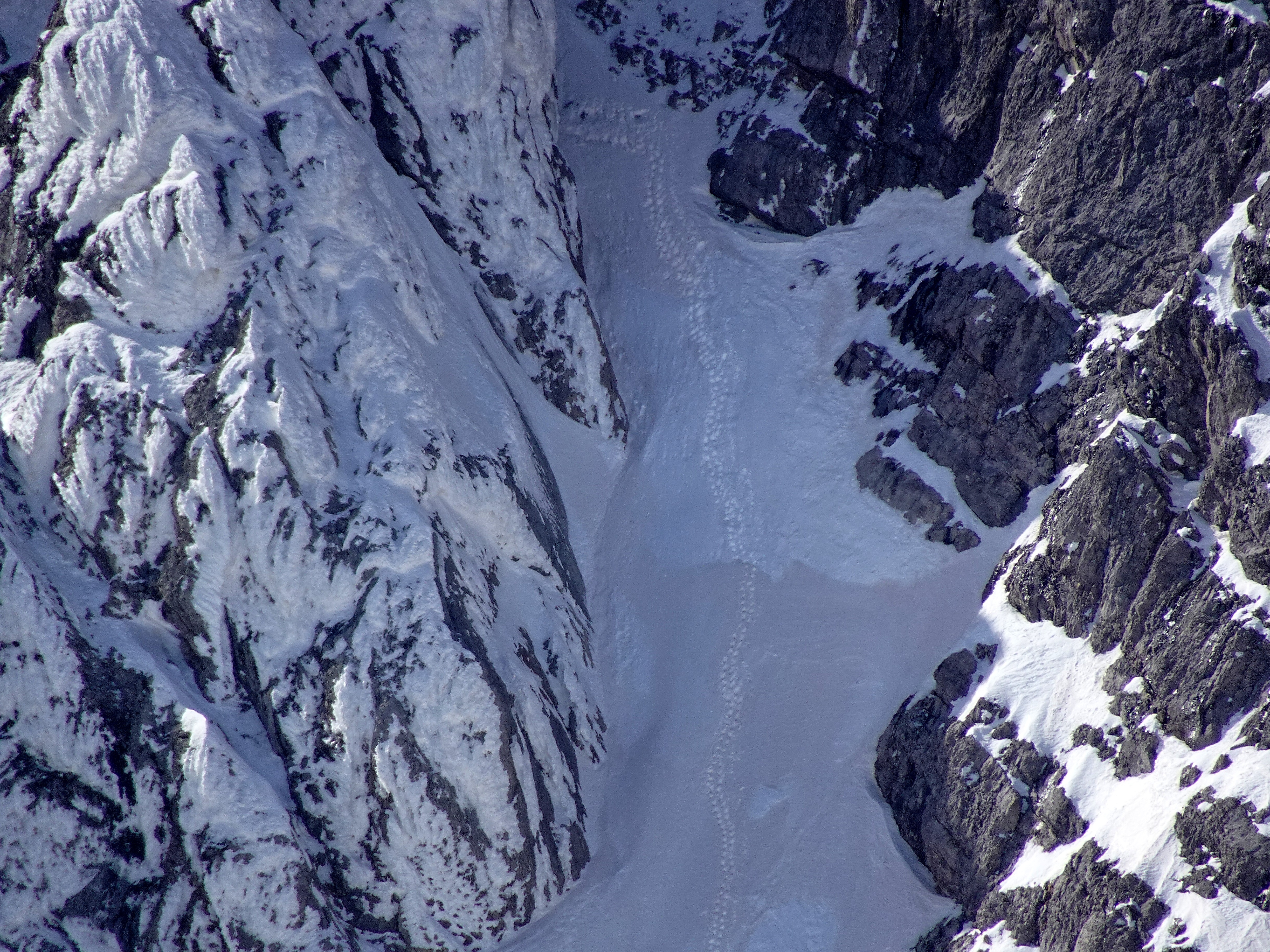 Derzeit sichere Verhältnisse im Dachsteingebiet. Noch keine größeren Nassschneelawinen. Schneebeschaffenheit von Presspulver über Rieselpulver über pickelhart bis zum nassen Firn, je nach Tageszeit, Höhe und Exposition. Bedingt durch den Saharaschnee sind frische Einwehungen gut zu erkennen.