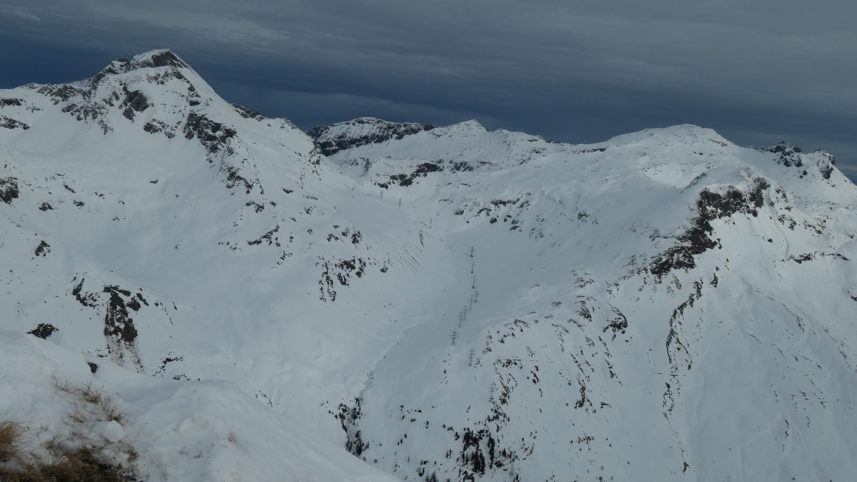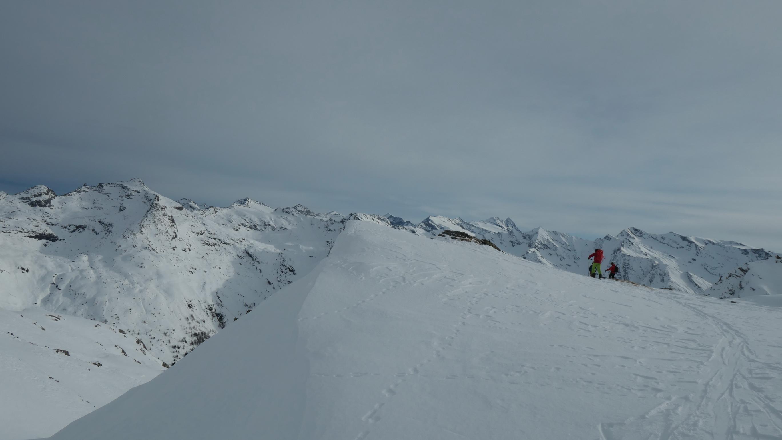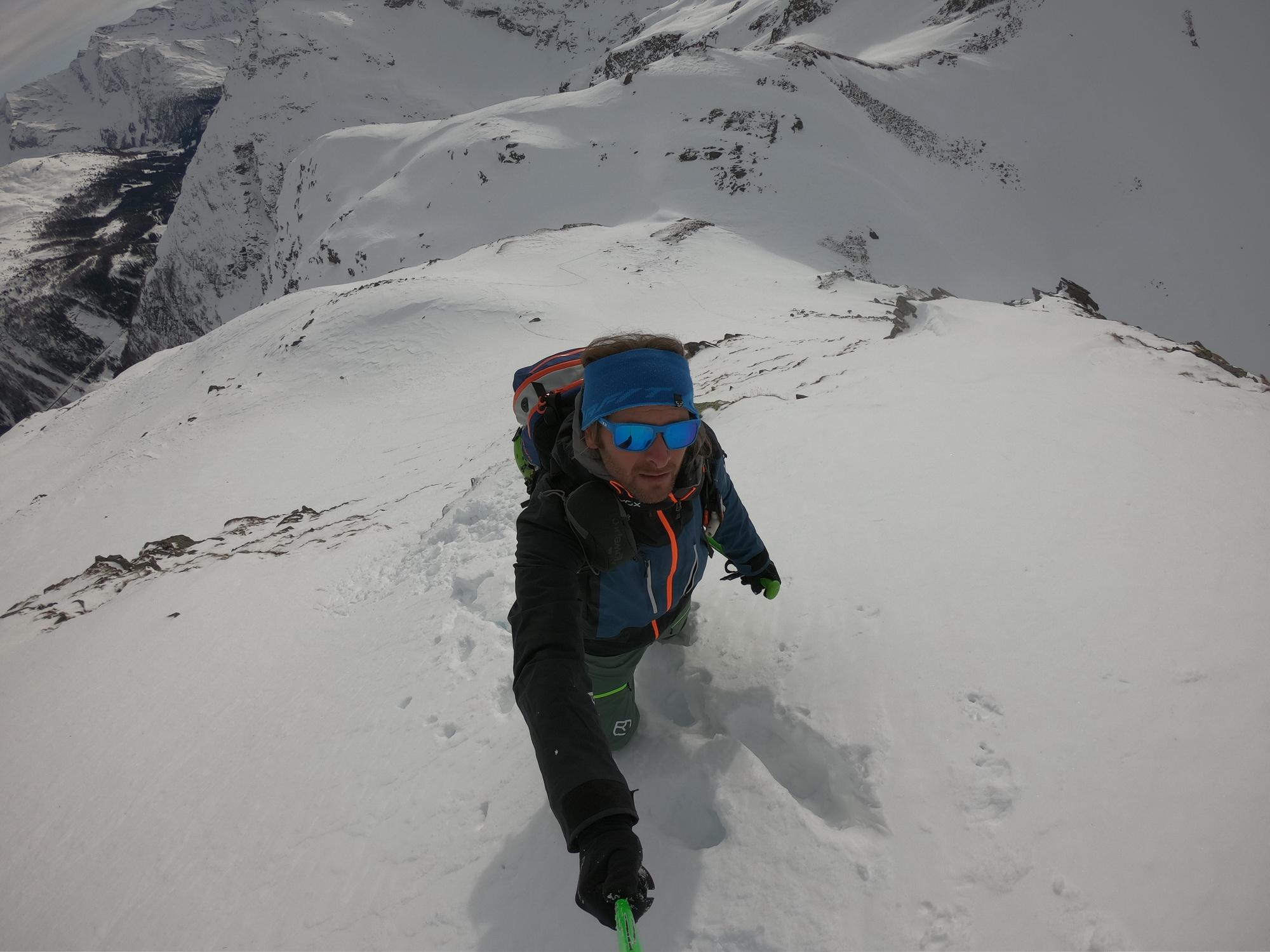 Die ertsen 250hm durch den Wald waren etwas mühsam, danach war die Tour bis unter den Gipfel landschaftlich wirklich super schön. Leider war heute die Sicht nicht so berauschend und auch die Schneedecke war durch die warmen Temperaturen schon etwas feucht. Der Gipfelaufbau, bzw. die letzten 100 bis 150hm waren stark abgeblasen und teilweise schneefrei. Darunter waren einige kleinere Triebschneepakete deutlich erkennbar. Am Gipfel haben wir 2 mal lautes Donnern, welches wir auf größere Lawinen zurückführten, vernommen. Gesehen haben wir allerdings dort nicht wirklich etwas. Bei der Abfahrt haben wir 2 kleinere Nassschneerutscher aus steilem Gelände gesehen.