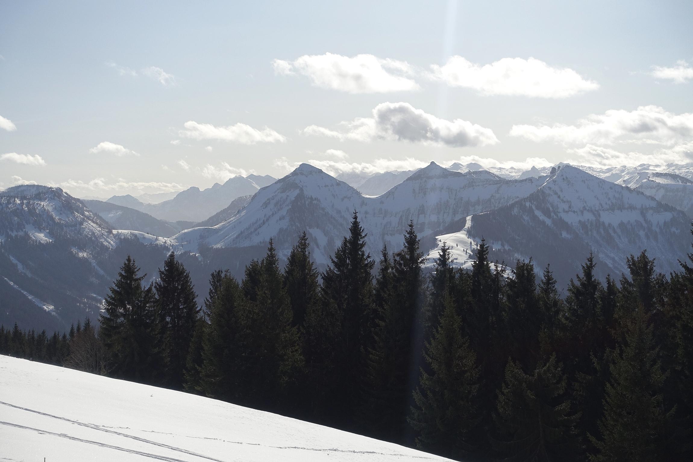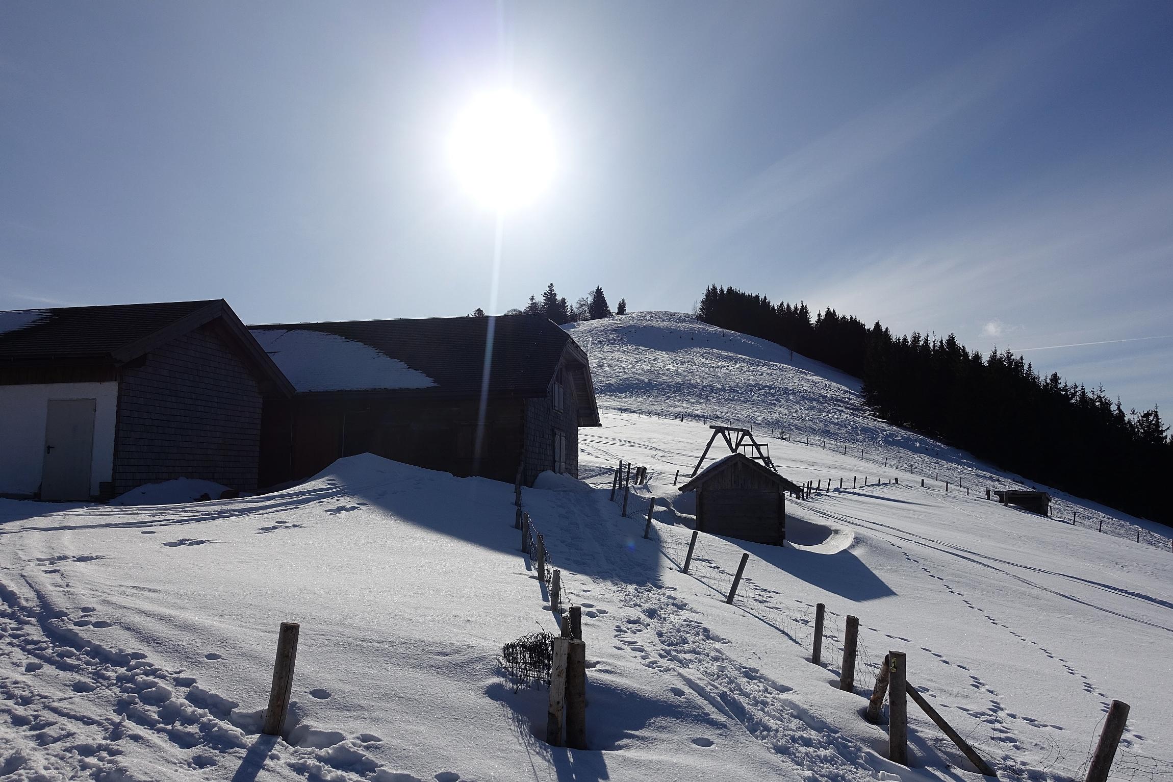 Mittags das kurze Sonnenfenster genutzt und vom oberen Döllererparkplatz auf die Loibersbacher Höhe gegangen. Leider hat es in der Nacht fast bis ganz hinauf geregnet und der Schnee daher eine schöne dicke feste Kruste abbekommen. Abfahrt nur auf der präparierten knusprigen Piste sinnvoll. Am Forstweg ist schon 2 X abschnallen angesagt.