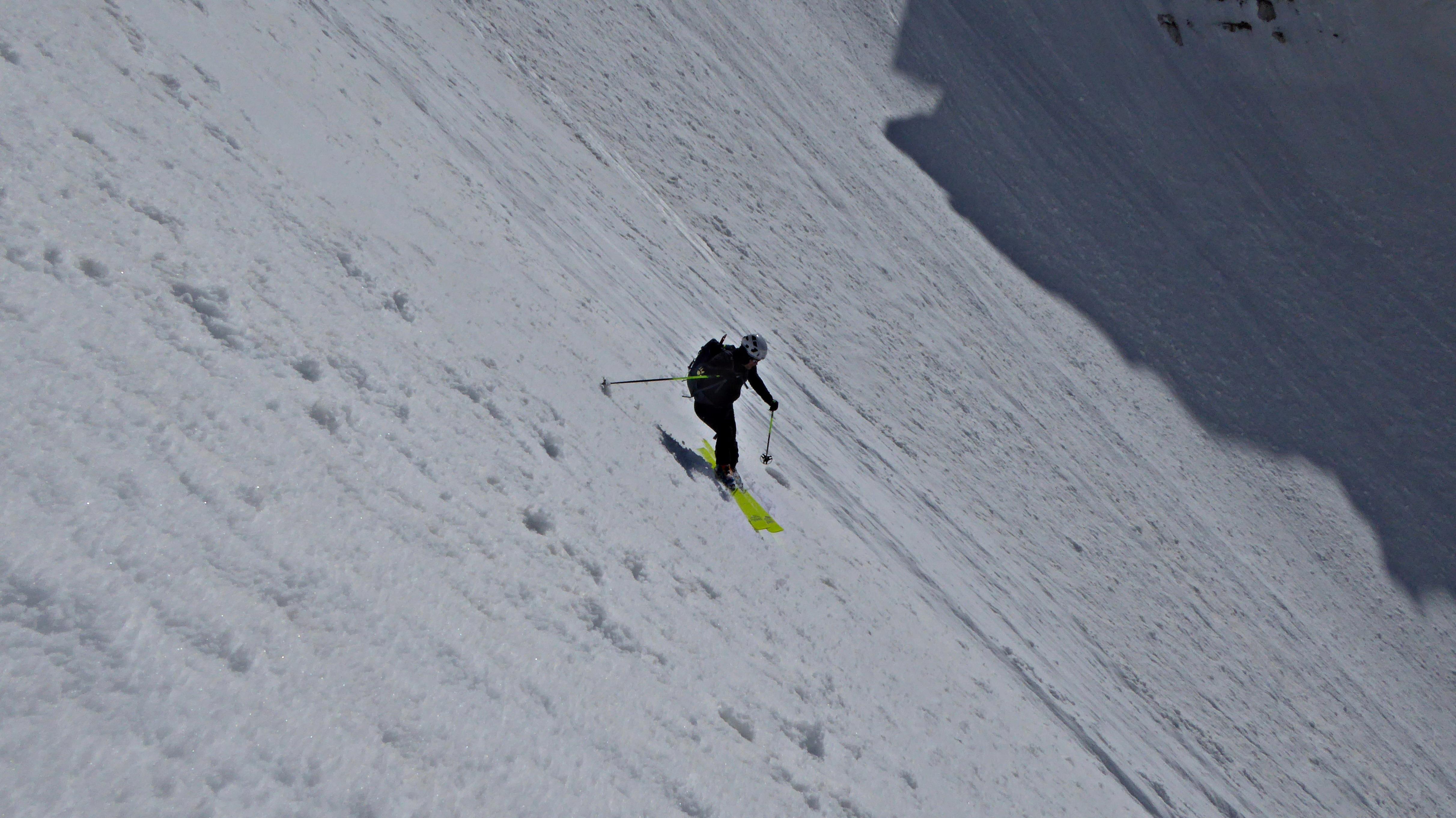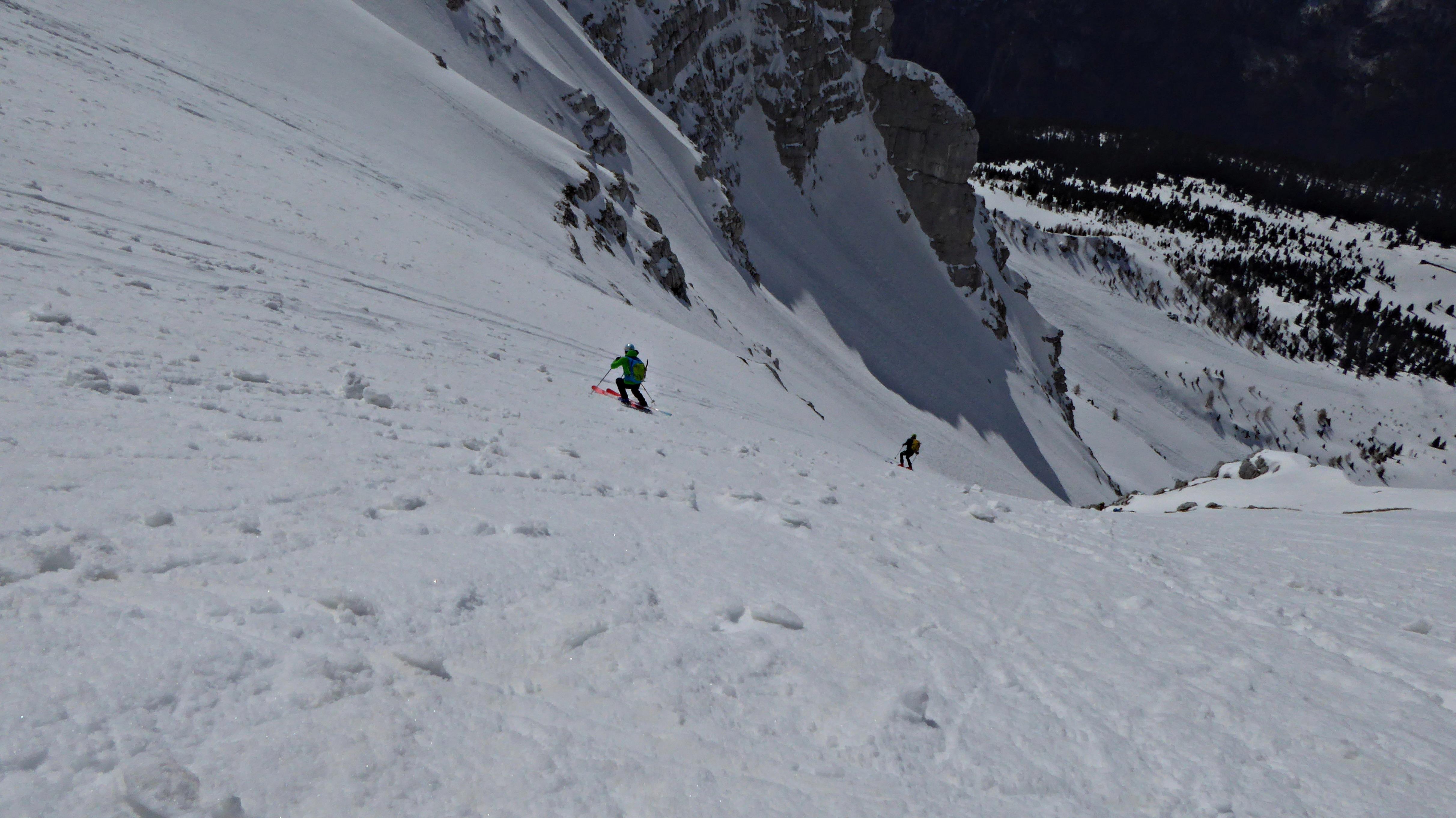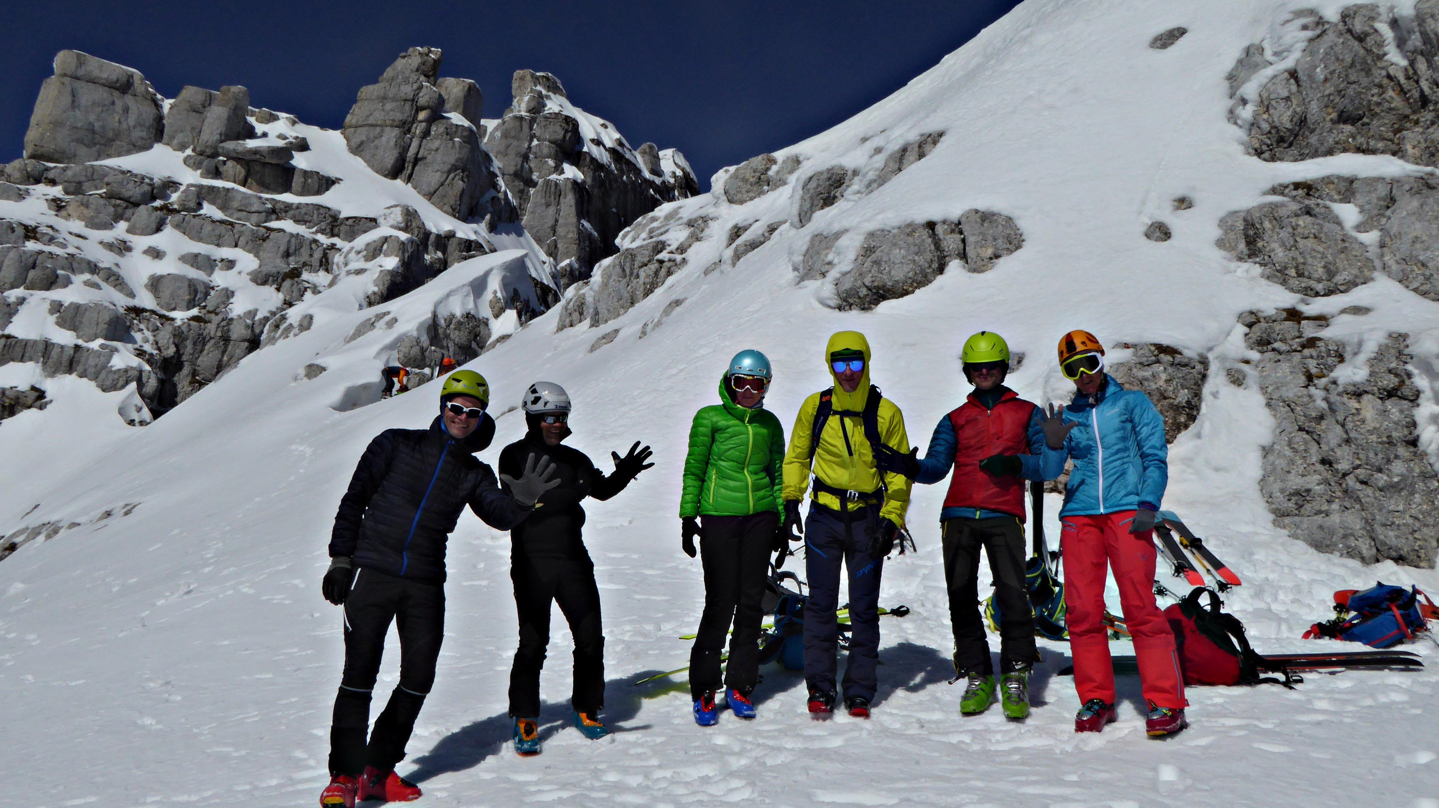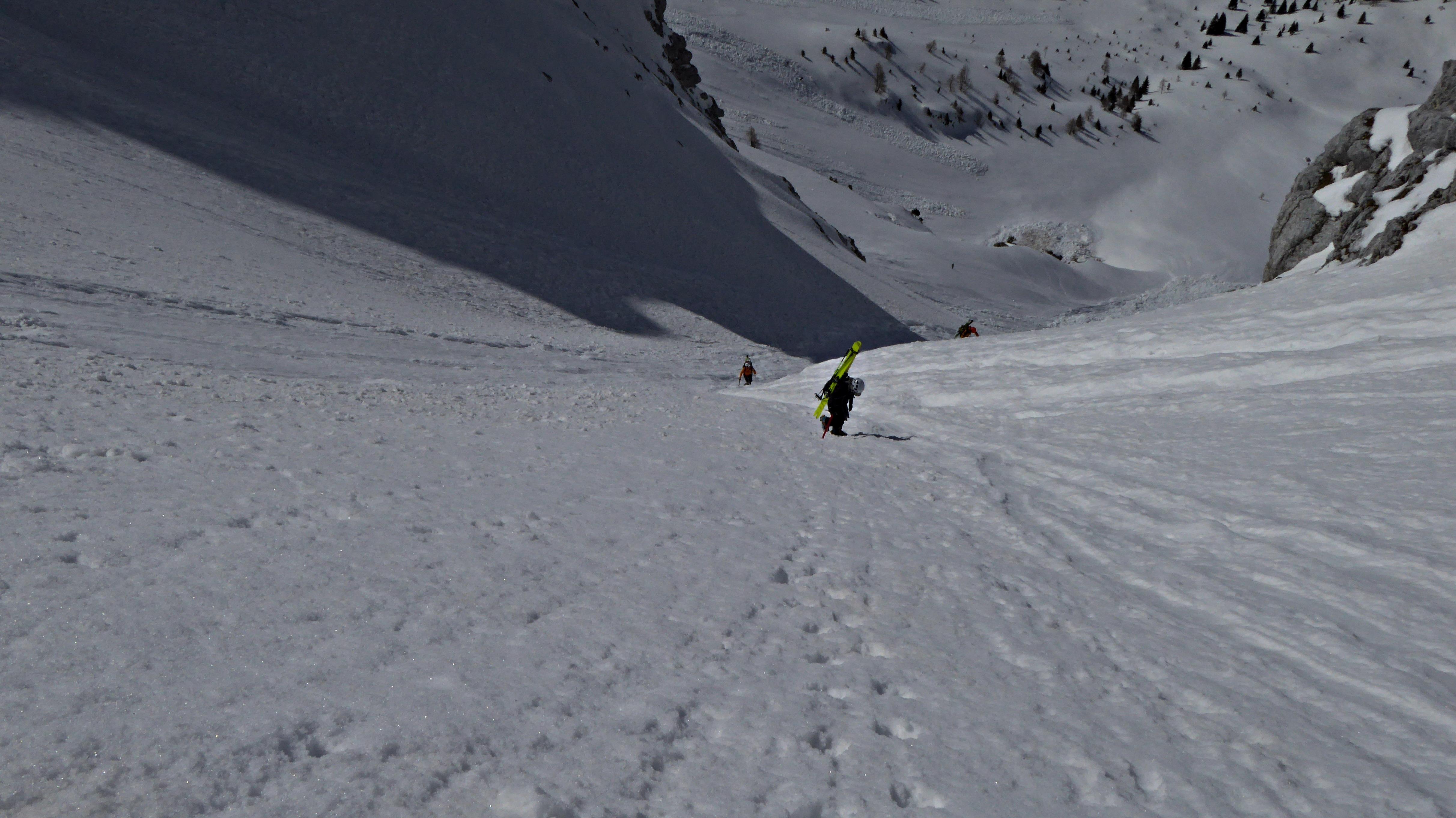 ...im Gegensatz zum Vortag waren wir für meinen Geschmack etwas zu früh unterwegs...im Aufstieg alles mit Steigeisen und da uns der scharfe Wind die gemütliche "Gipfeljausn" gründlich verdorben hat, hat's bei der Abfahrt teils noch ordentlich gerockt...