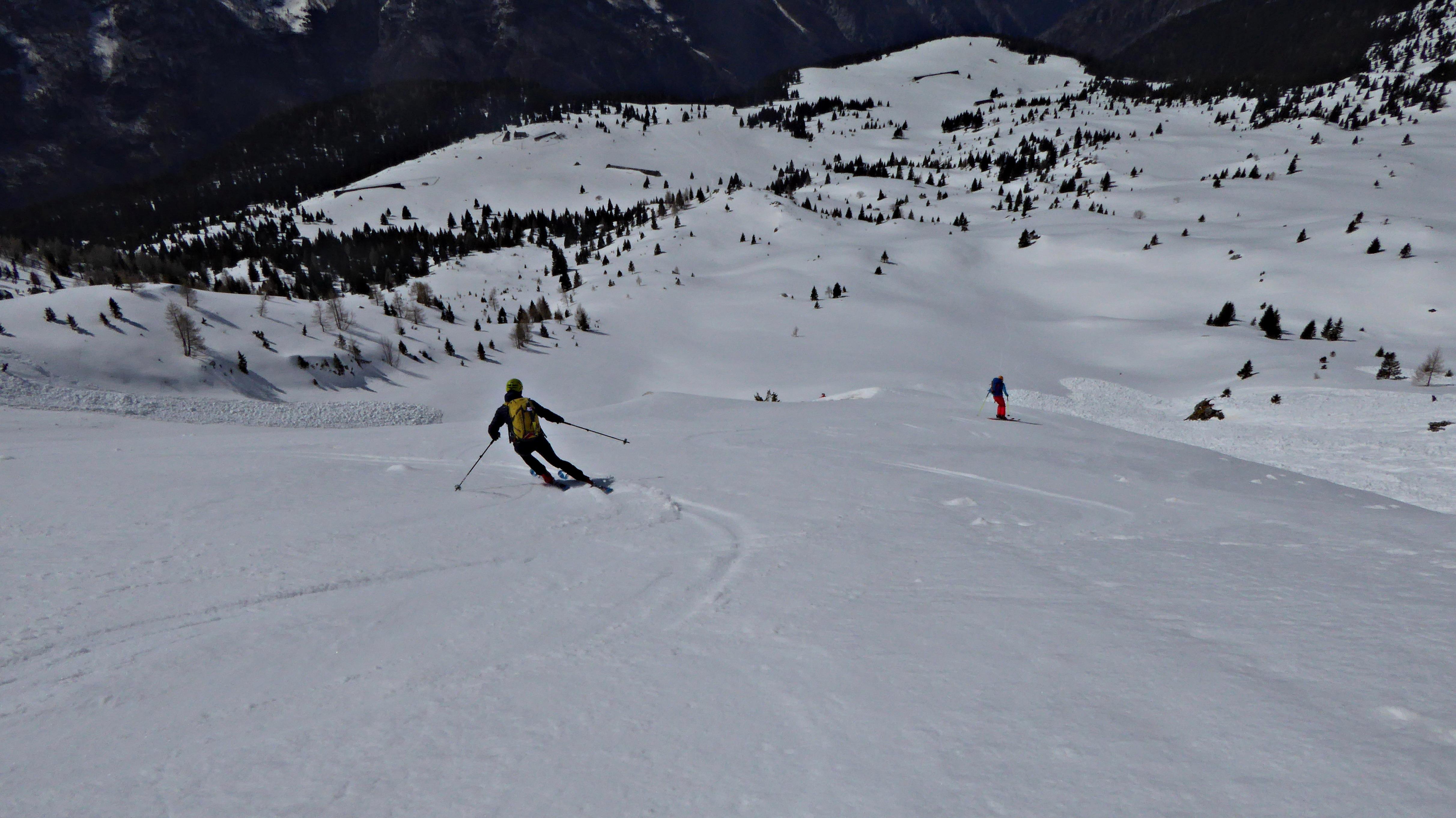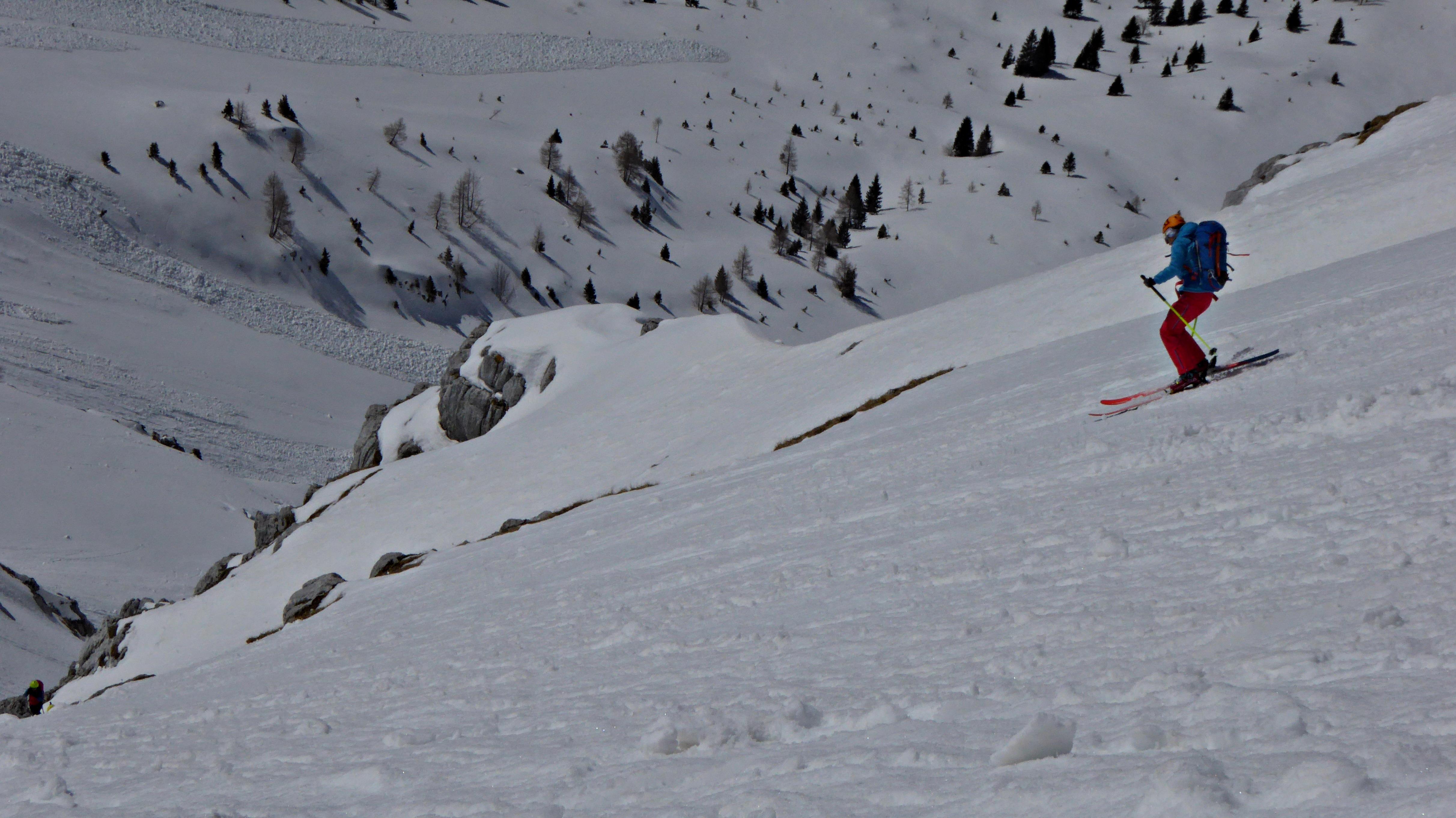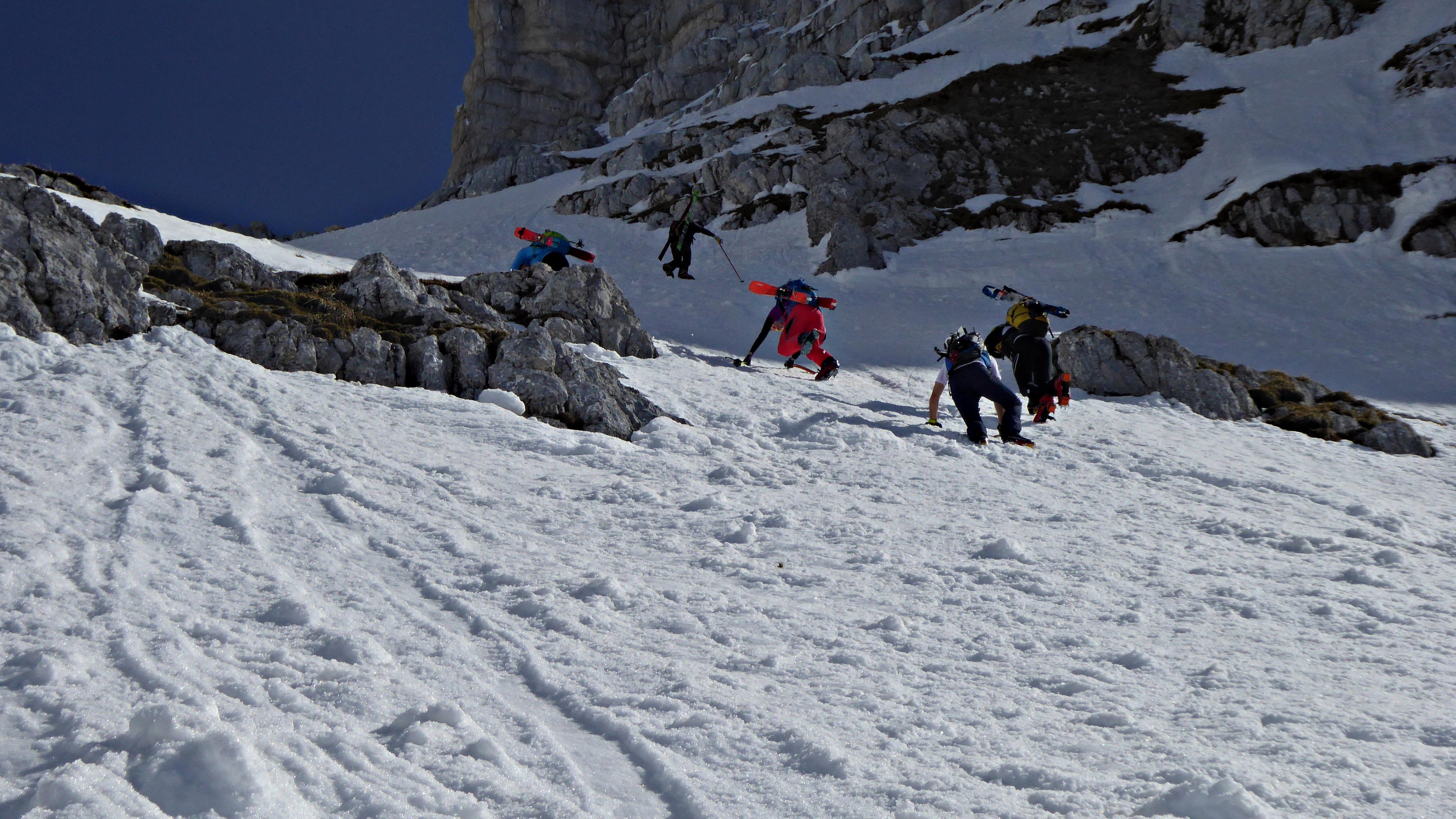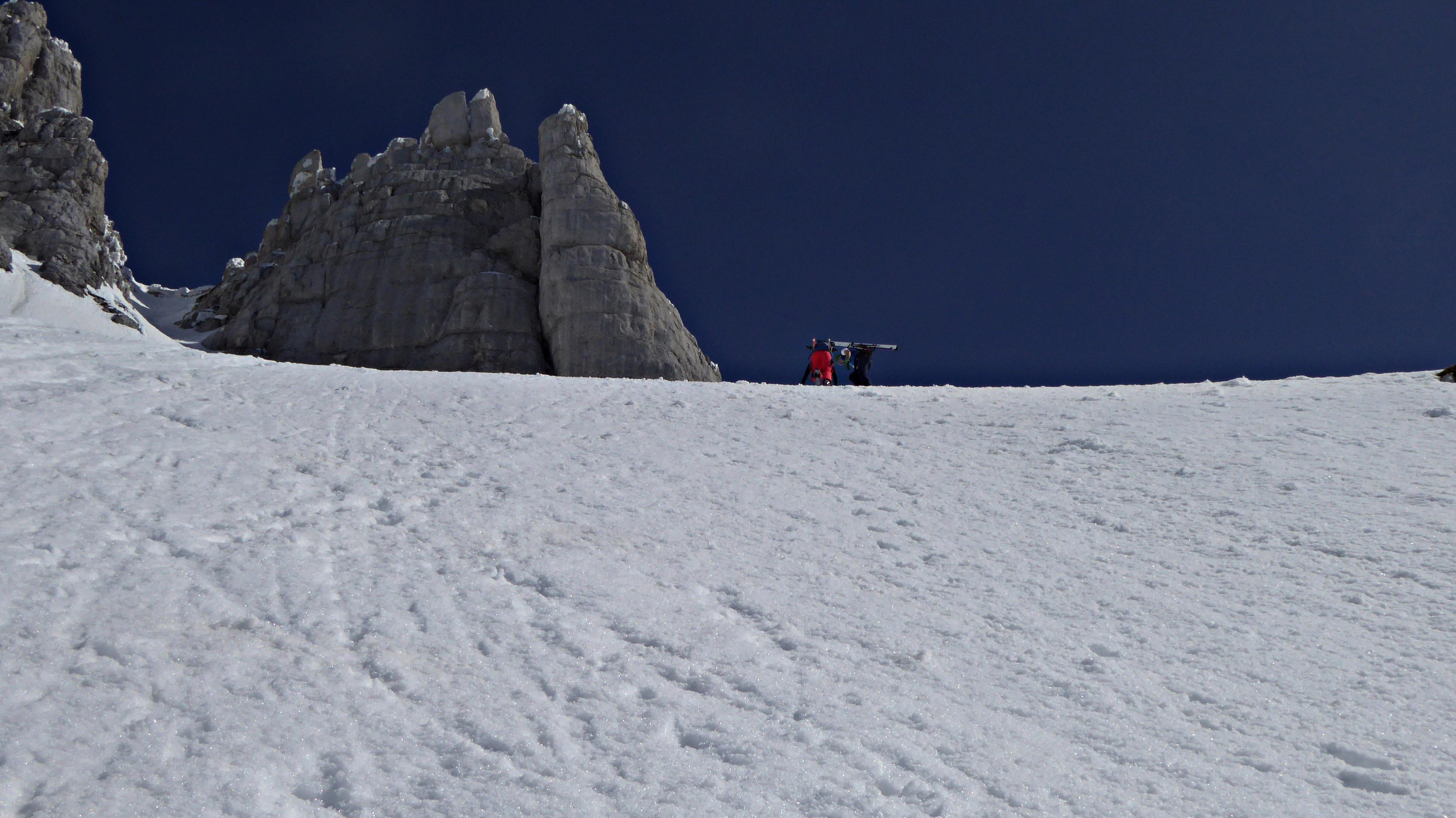 ...im Gegensatz zum Vortag waren wir für meinen Geschmack etwas zu früh unterwegs...im Aufstieg alles mit Steigeisen und da uns der scharfe Wind die gemütliche "Gipfeljausn" gründlich verdorben hat, hat's bei der Abfahrt teils noch ordentlich gerockt...
