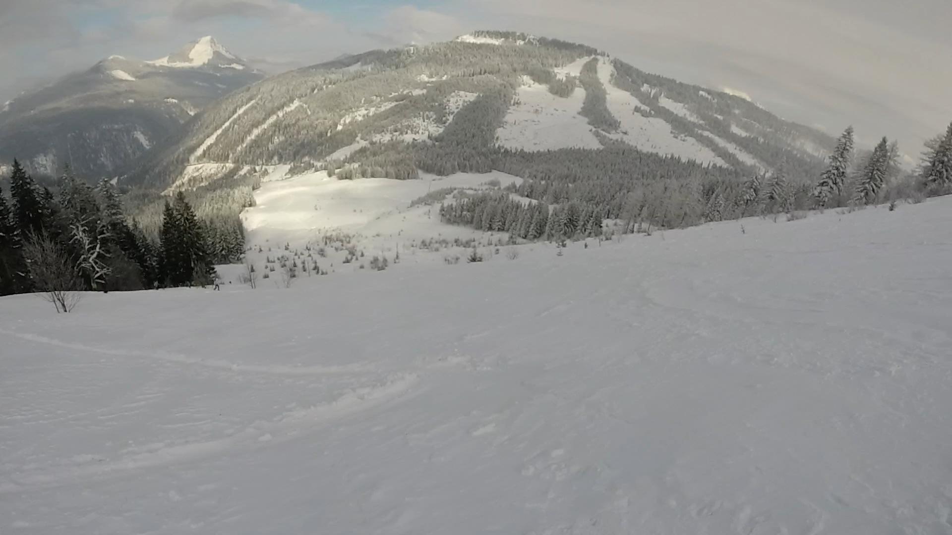 Schnee: Windbehandelter gesetzter Pulverschnee ca. 30cm, gut zu fahren.