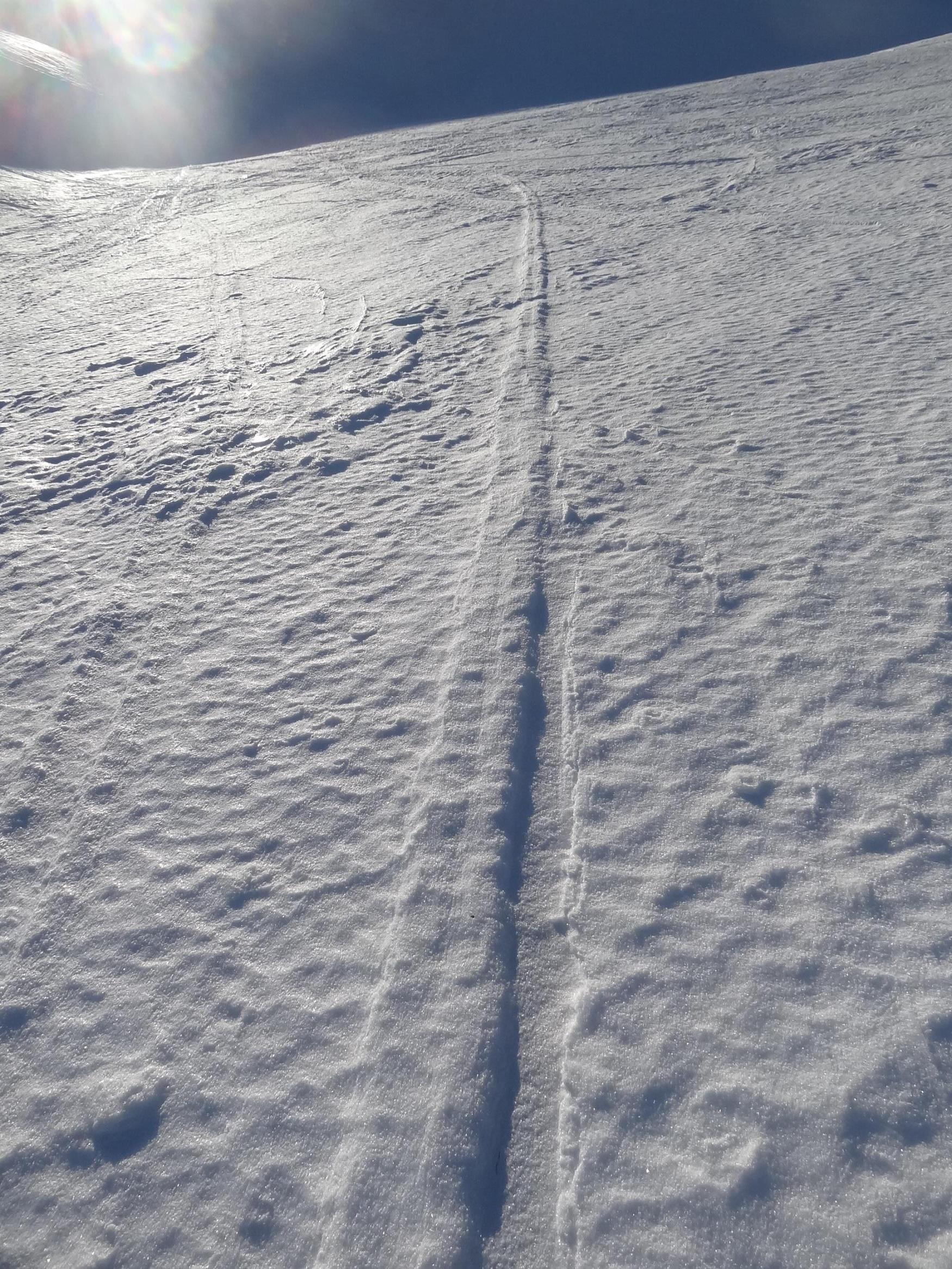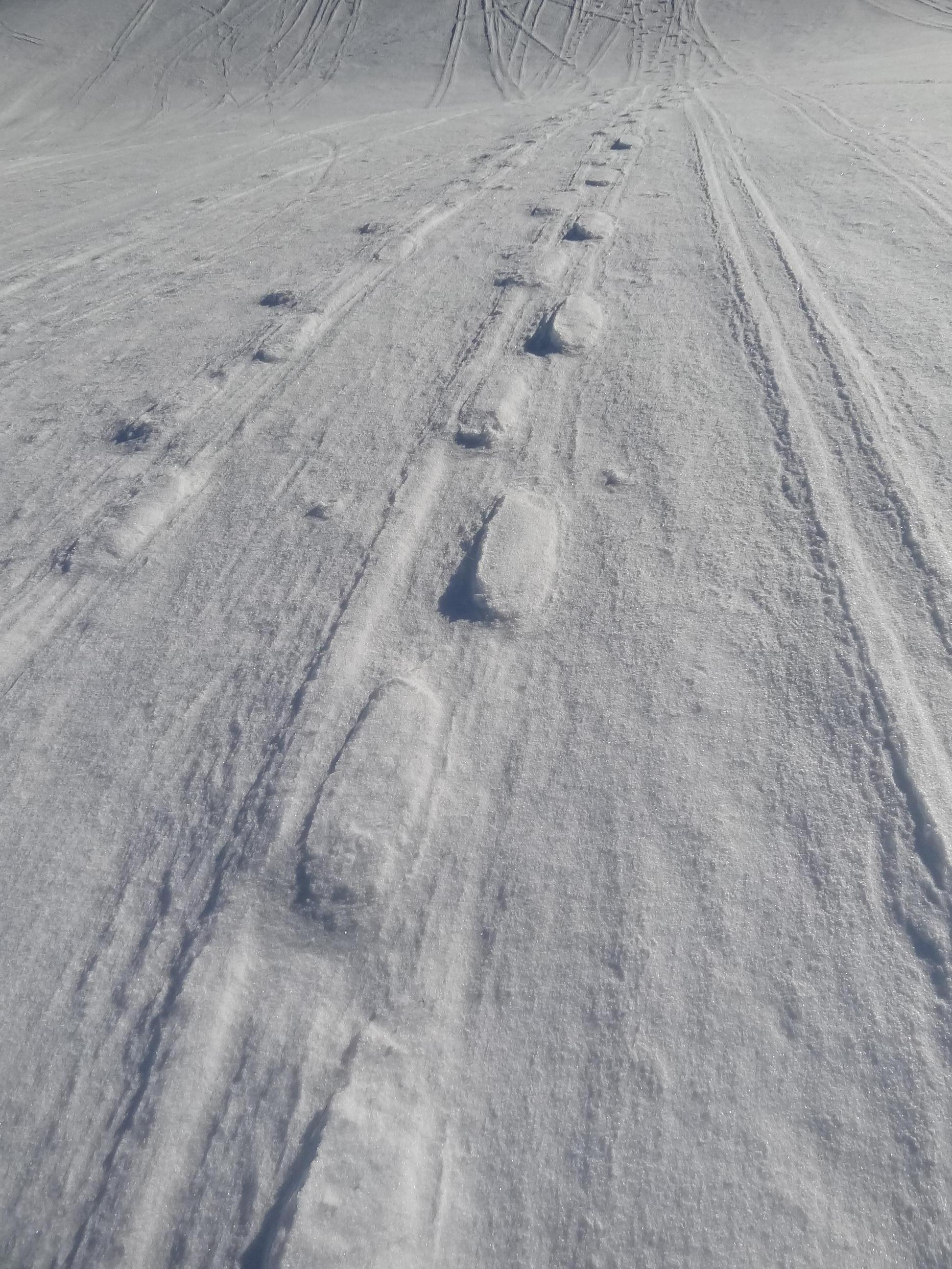 Die Abstrahlung der vergangenen, klaren Nacht, von gestern Dienstag auf heute Mittwoch, ließ den Schmelzharschdeckel so richtig hart werden. Leider auch noch um 1/2 elf bei der Abfahrt.