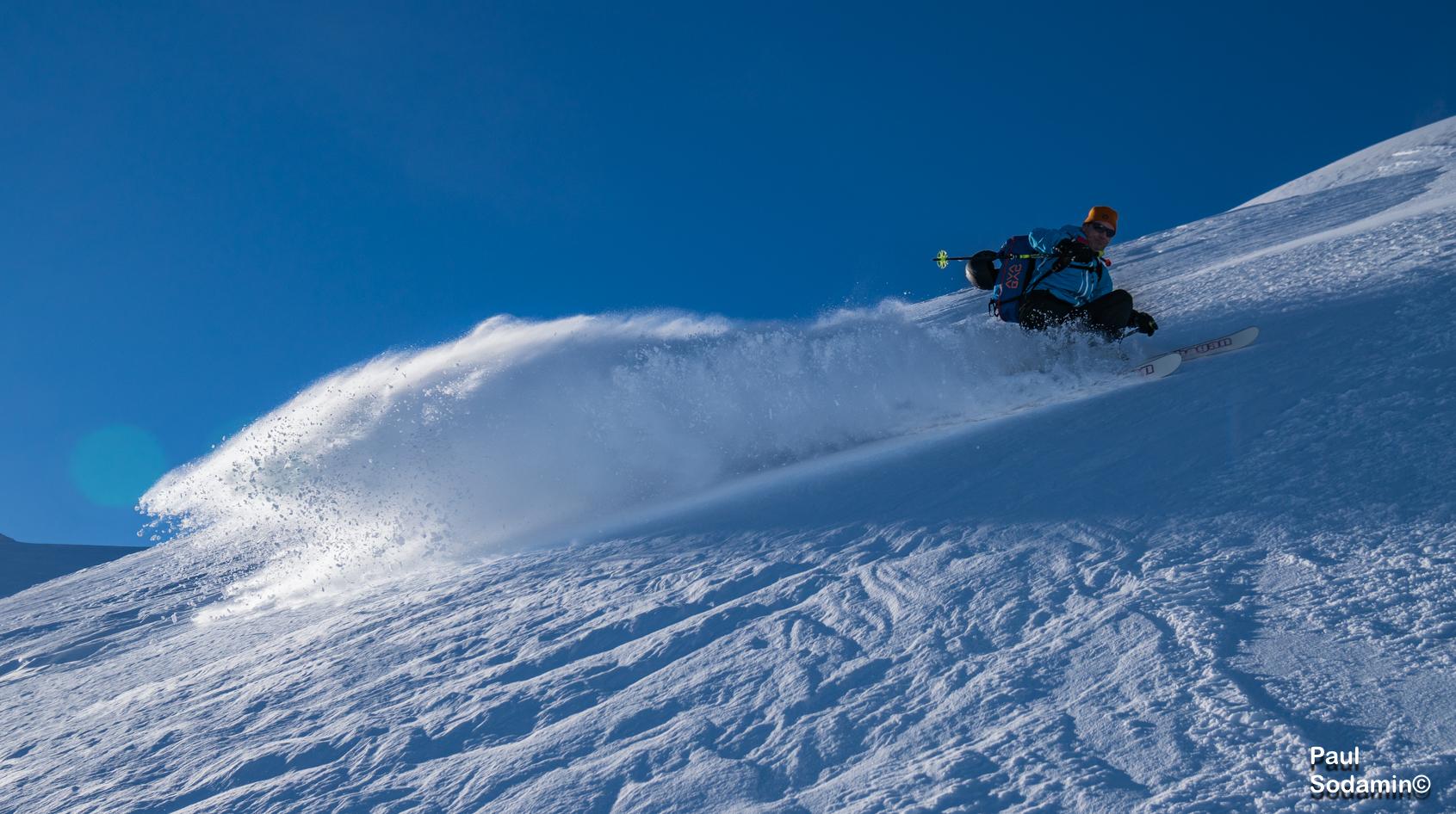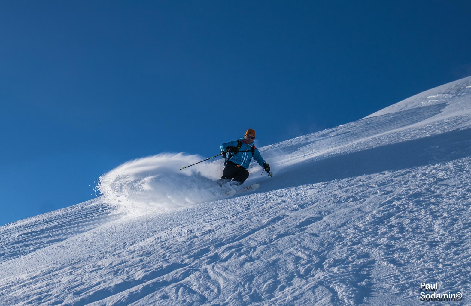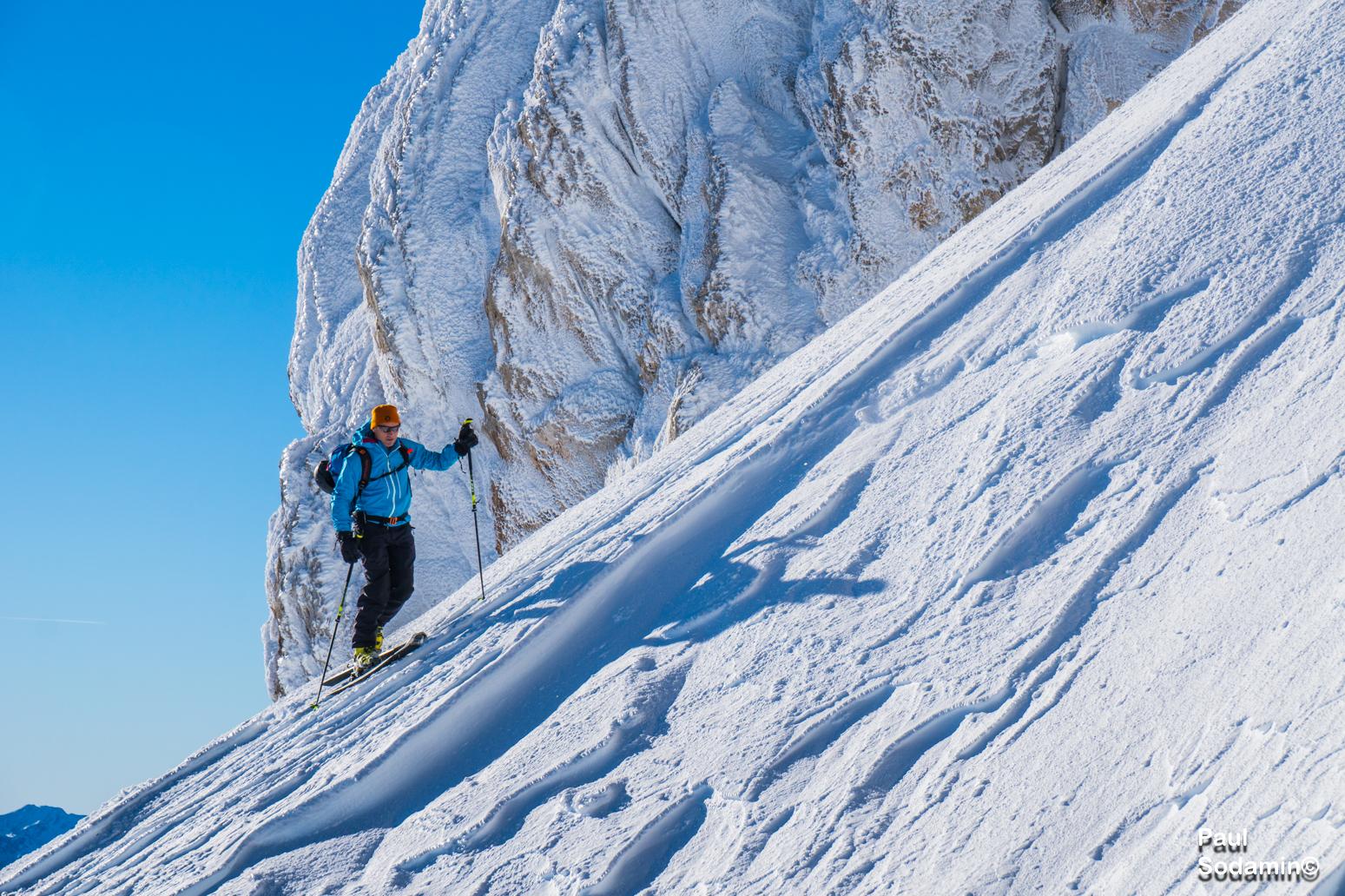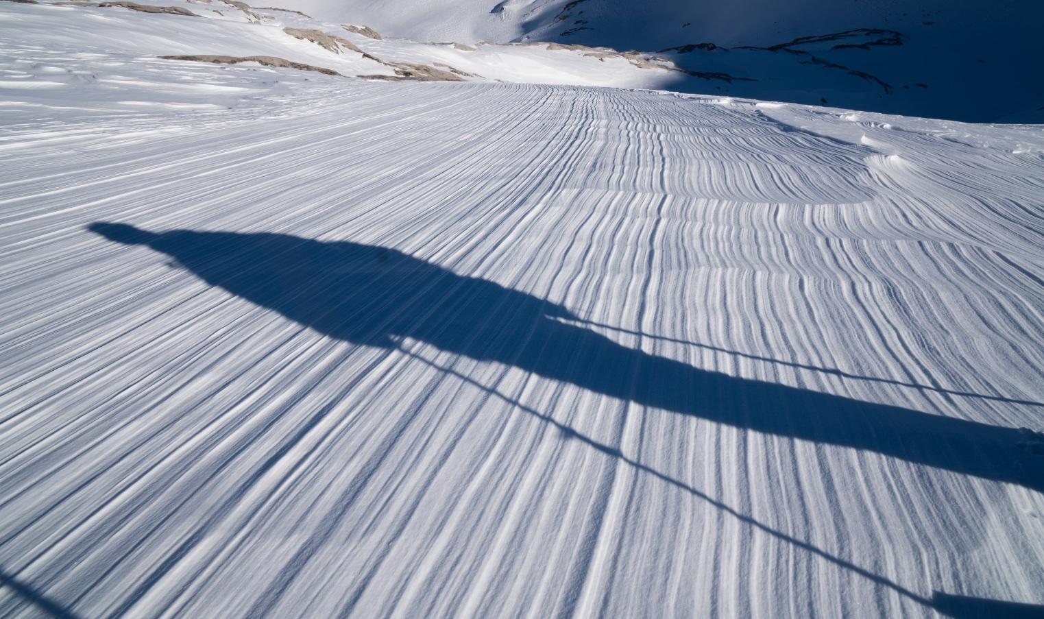 Trotz des orkanartigen Windes am Vortag war der Schnee überraschend gut befahrbar. Die Temperatur angenehm in der Sonne.