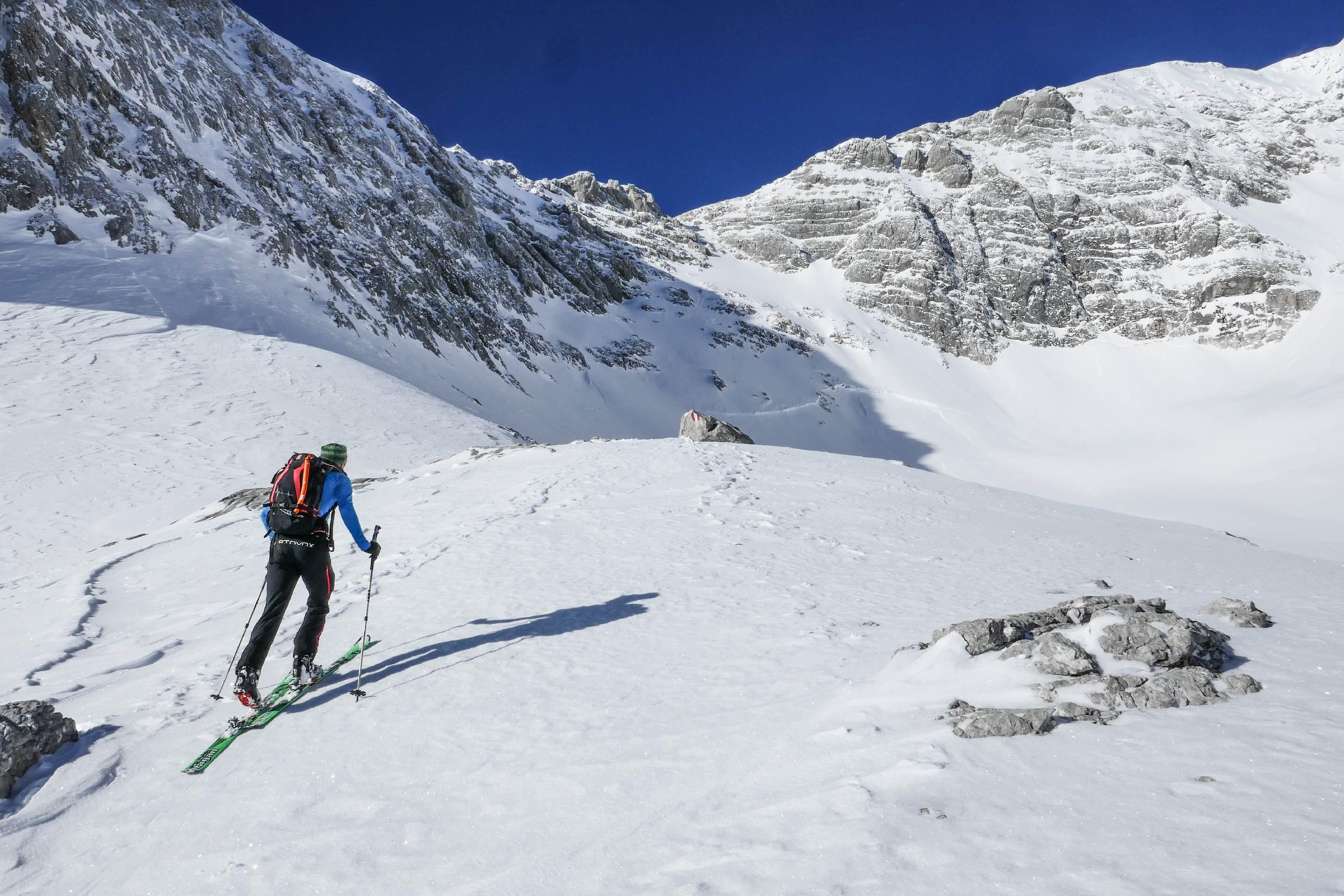 Tolle Verhältnisse am Gr. Priel. Im unteren Teil muss man zwar seine Schi ein Stück weit tragen, ab dem Prielschutzhaus jede Menge Schnee. ca. 20cm Pulver auf kompakter Unterlage, keine Gefahr von Feindkontakt. Beim Aufsteig zur Brotfallscharte ist noch der Anriss eines altes Schneebrett mit beachtlicher Mächtigkeit zu sehen. Der letzte Schneefall hat es noch nicht verdeckt!
