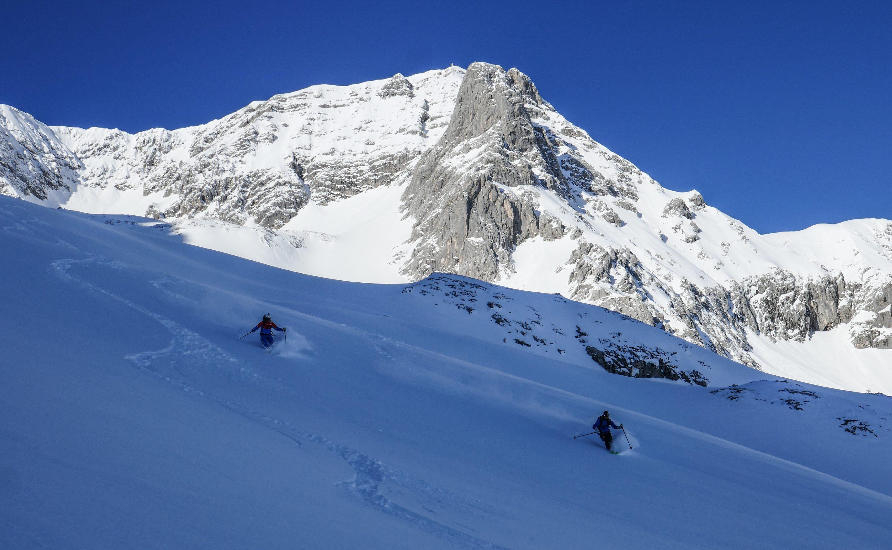 Heute hatten wir den Priel für uns alleine, dass man bei solch perfekten Verhätnissen den Berg alleine einspuren und zerpflügen darf ist schon eine Seltenheit.