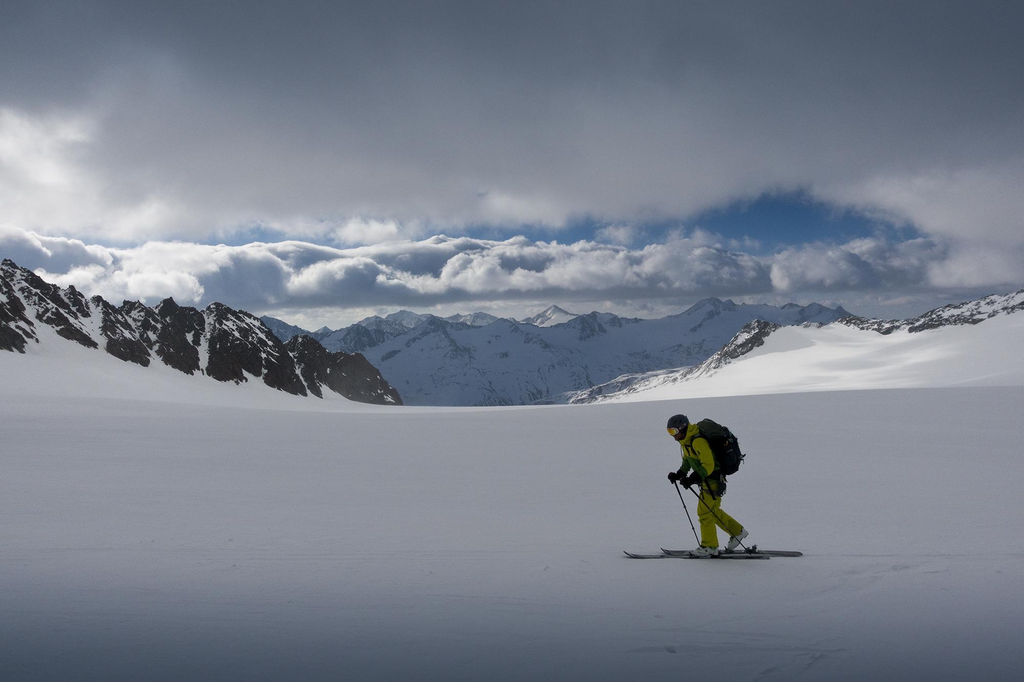 Sehr gute Tourenbedingungen findet man im Ötztal vor, - morgens hartgefrorene Schneeflächen, die gegen Mittag auffirnen. An der Hintereisspitze hatten wir sogar Pulverschnee. Allerdings hat der Sturm am 13.4. alles verblasen. Und in den nächsten Tagen werden die Karten ohnehin neu gemischt!
