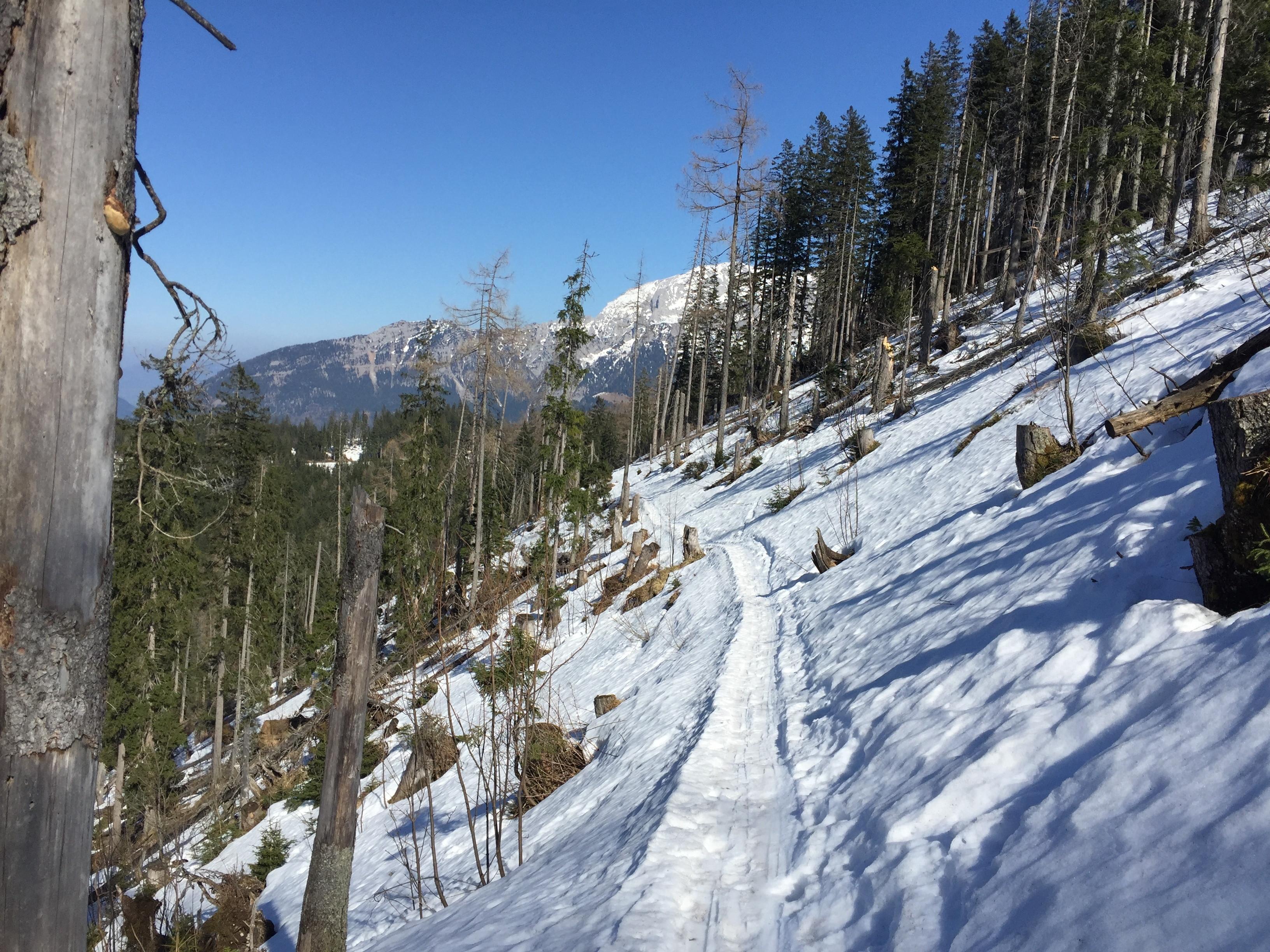 Alternativ für alle mit dem (e-)Radl anreisenden könnte der Weg zur Kühroint interessant sein (und mit abnehmender Schneedecke oberhalb der Benzinkurve noch interessanter werden), der Falzsteig ist gegenwärtig quasi-durchgehend gut schneebedeckt.