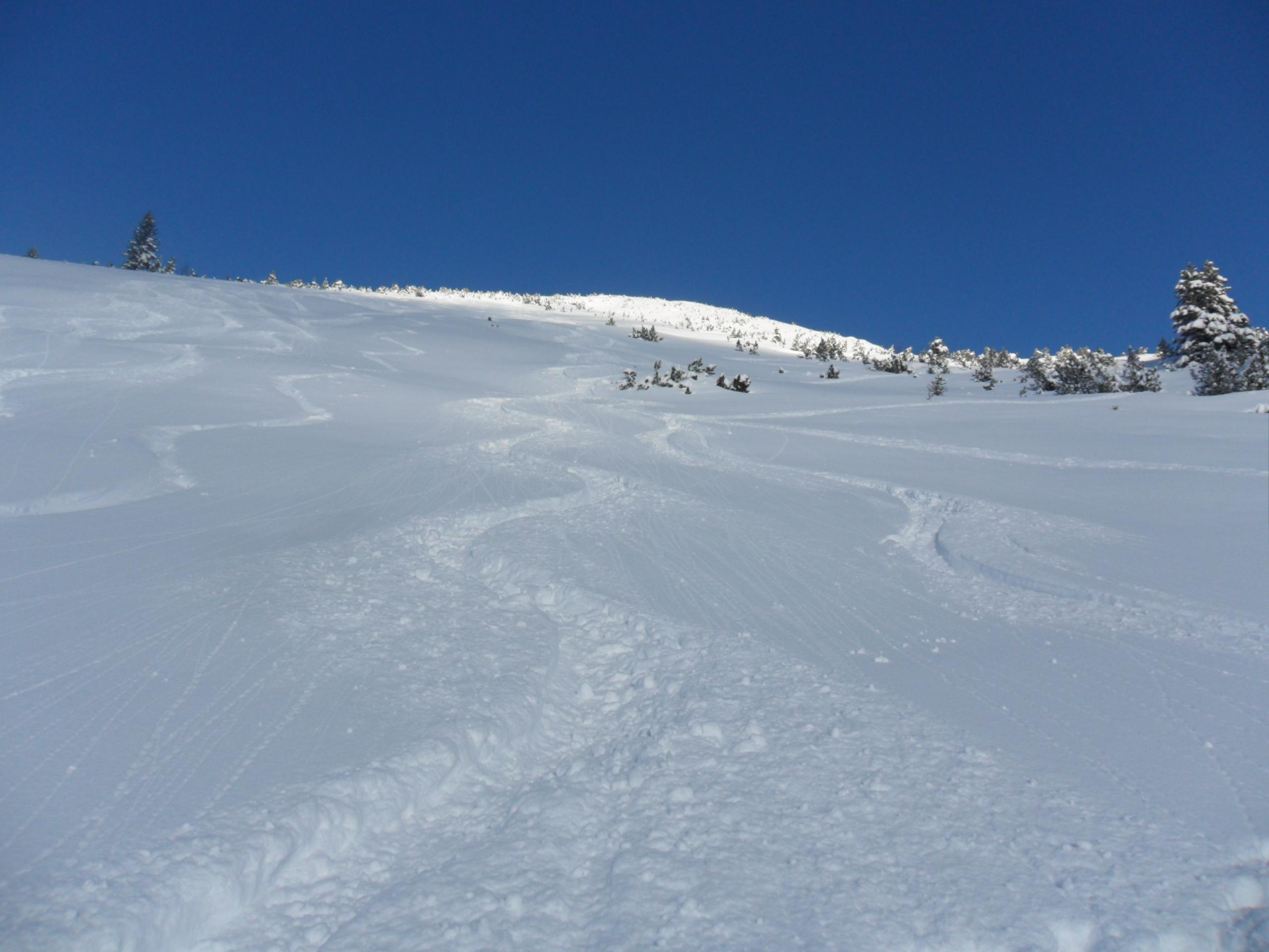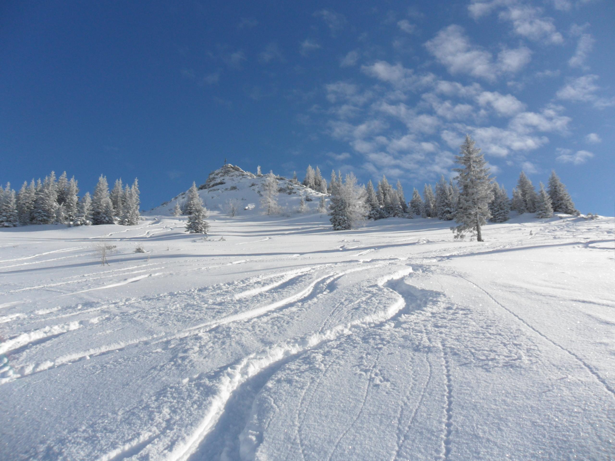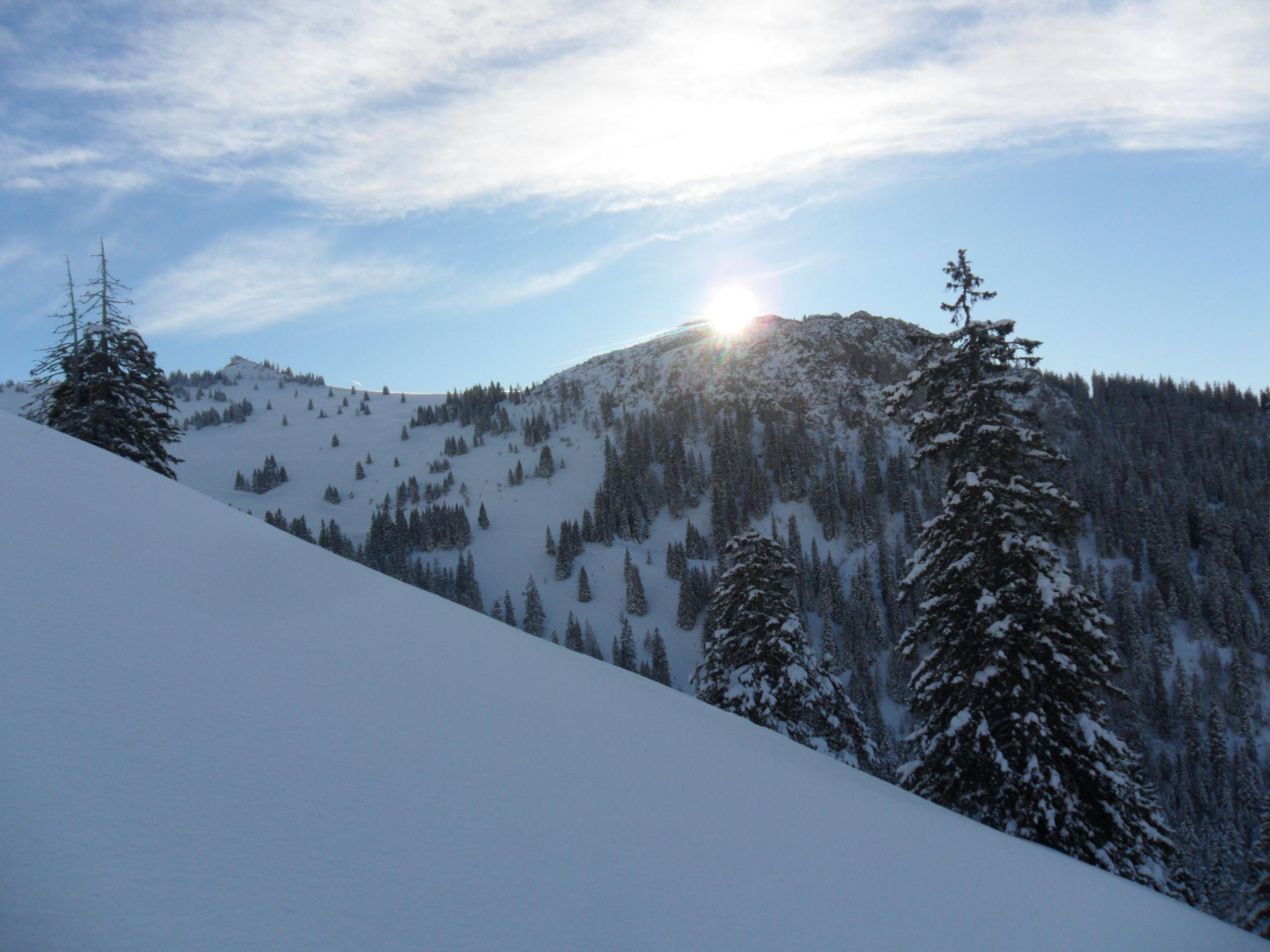 Die Erwartungen wurden nicht enttäuscht. Knietiefer Pulver bei Traumwetter und wenig Wind. Ü30cm Neuschnee bis ganz runter. Und weils so schee war, gings dann nochmal rauf zum Beidlkopf. Das Sonntagshorn war heute gut besucht und gegen Mittag auch schon ordentlich verspurt. Platz für eigene Spuren eher am Reiflberg und Beidlkopf.