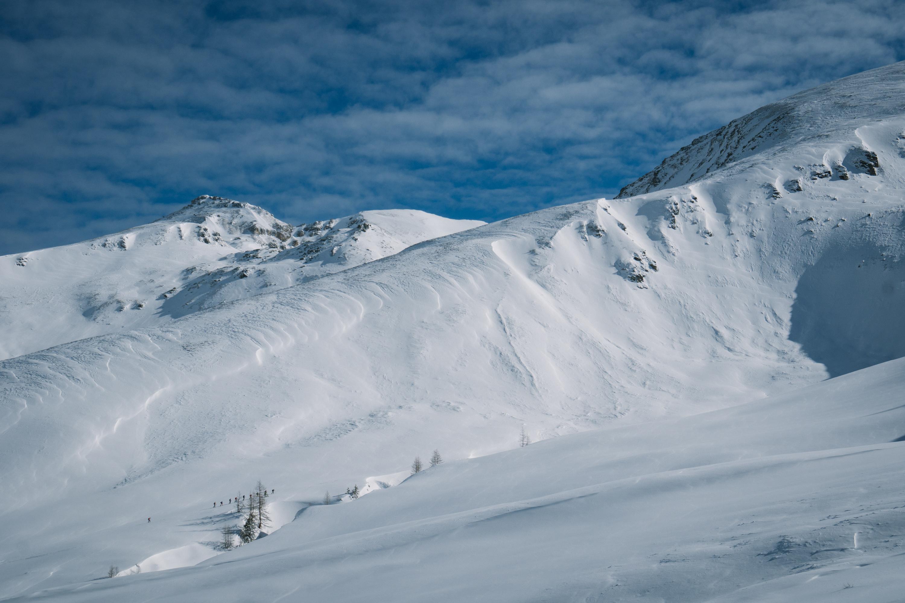 Einige Setzungsgeräusche beim Aufstieg. Die Rückstände der Riesenlawine von Goldzechkopf sind beeindruckend.