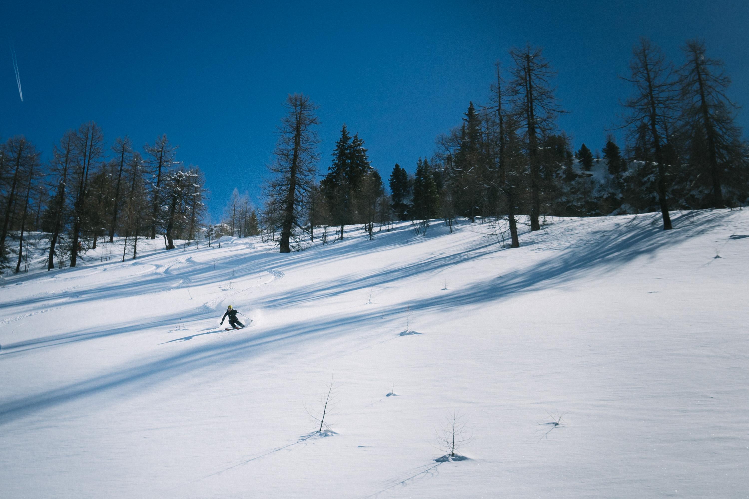 Bis ca. 200hm über Durchgangsalm 40-50 Pulver ohne Windeinfluss, dann teils Windharsch.