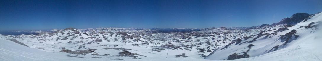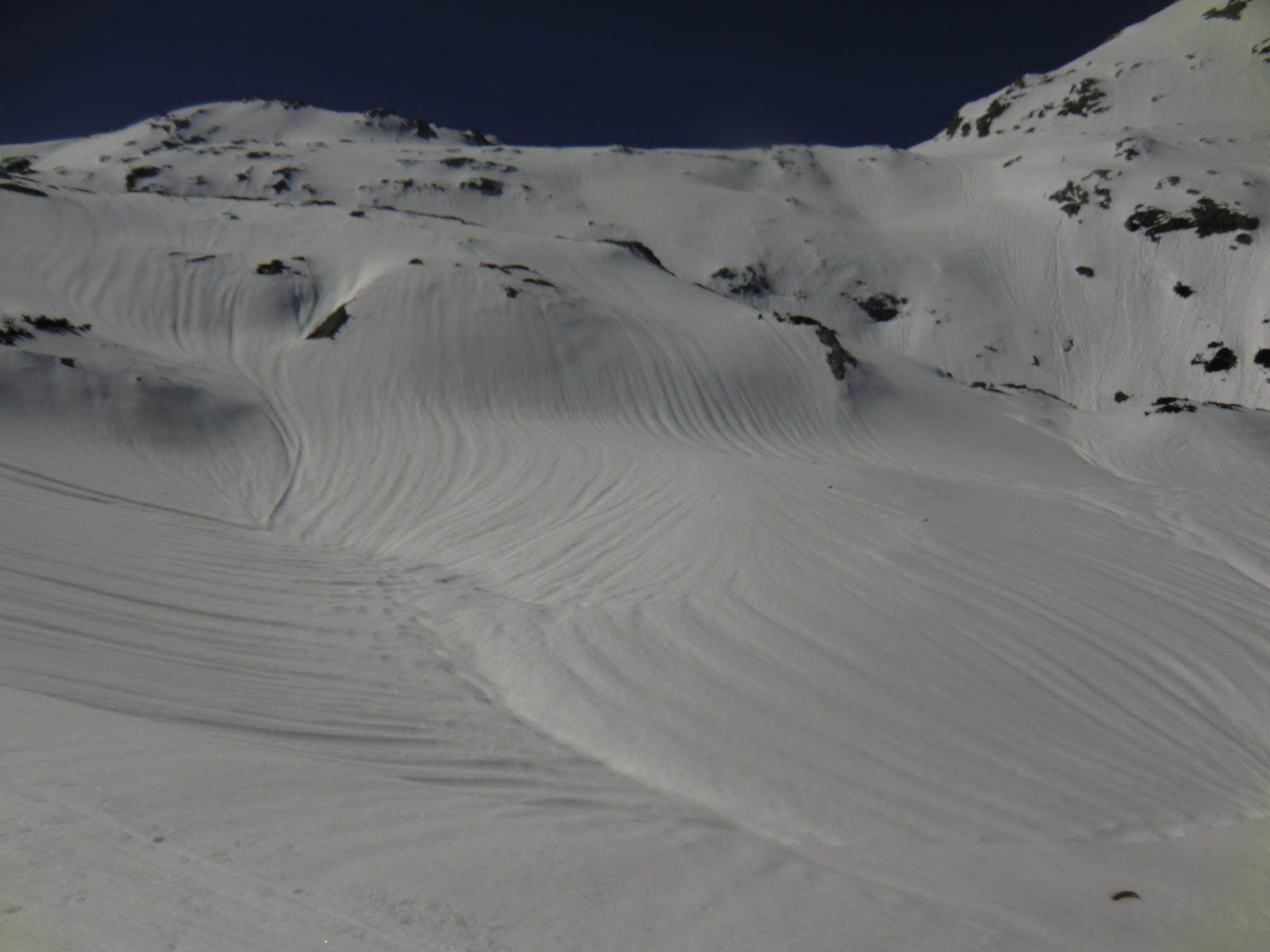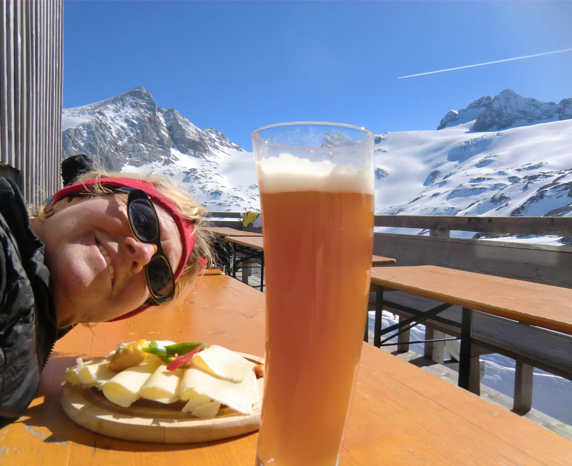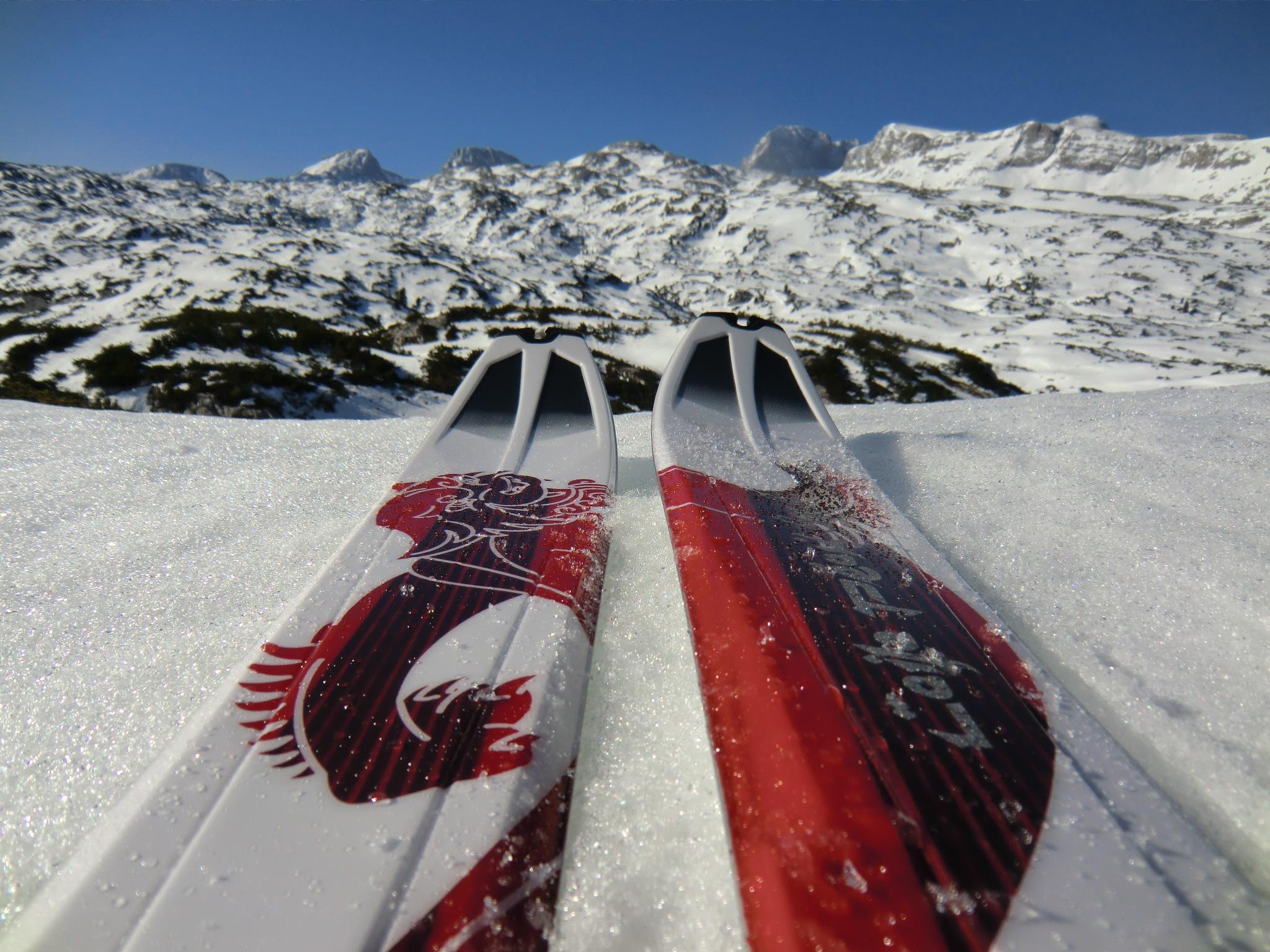 Jetzt war heute schon wieder so ein fulminanter Firn-Fun-Tag mit wenig Leuten am Weg. Dienstagseffekt. Beim Start um 9:30 Uhr war alles noch bockhart – die Kältereserven sollten dann auch über den ganzen Tag halten. Der obere Teil des Hallstädter Gletschers war ein Eisparkett, aber die hauchdünne Glasur war trotzdem gut zu fahren. Weiter unten dann festgepresster kalter „Styroporschnee“ der noch kräftig staubte. Kurz vor dem Eissee gab´s dann Firn. Überall auf der Nordseite hat sich feiner Saharasand über´s weiß gelegt. Die Autobahn von der Simonyhütte zur Gjaidalm rüber war gut aufgefirnt und eine rasante Rennbahn, kein Baatz, kein Sulz. Auch die 11km Abfahrt war bis zum PP gut in Schuß. Diese Woche noch täglicher Seilbahnbetrieb, nach dem 2.4. dann nur noch an Wochenenden, solange die Krippensteinabfahrt noch genug Schnee hat.