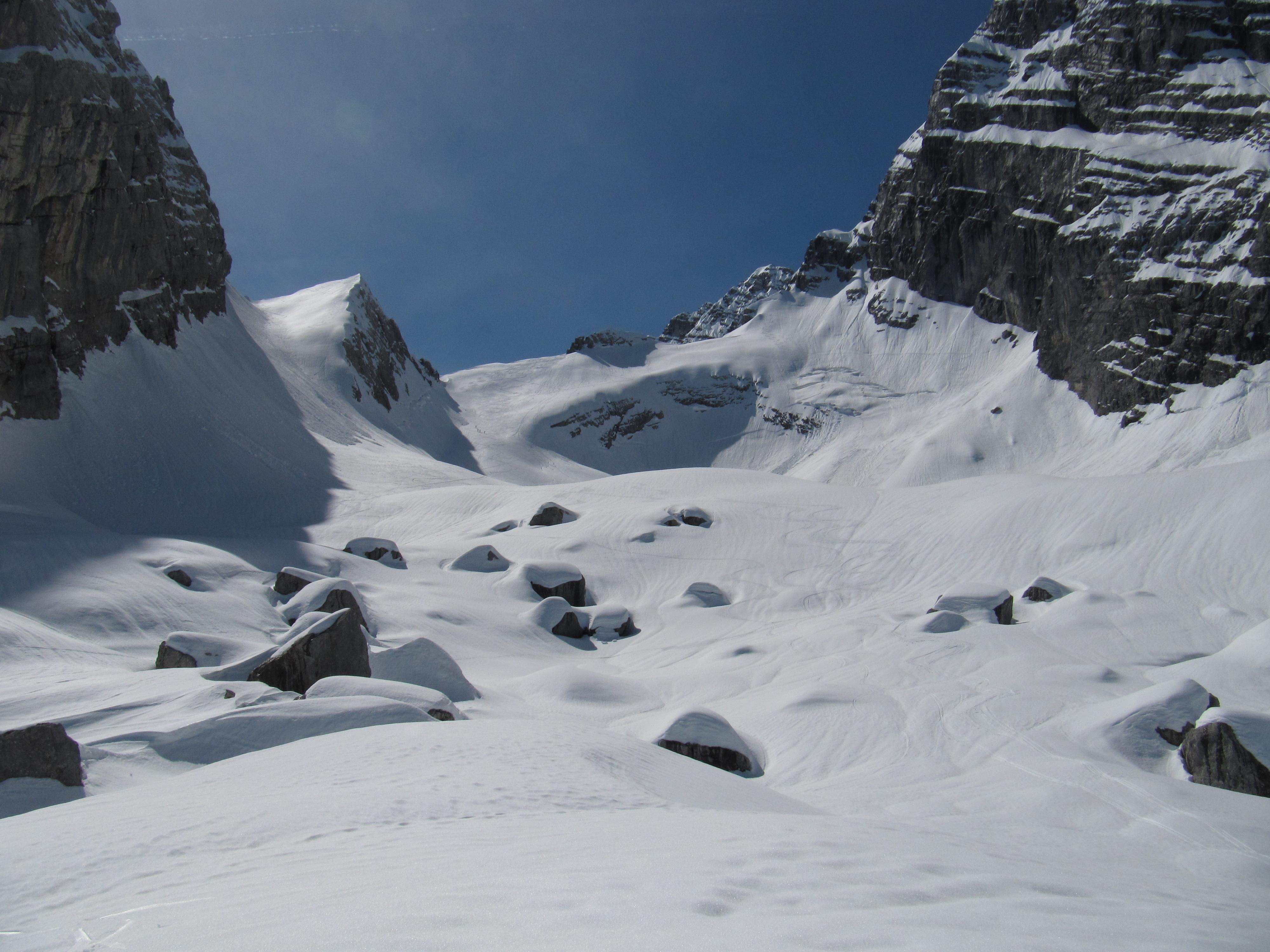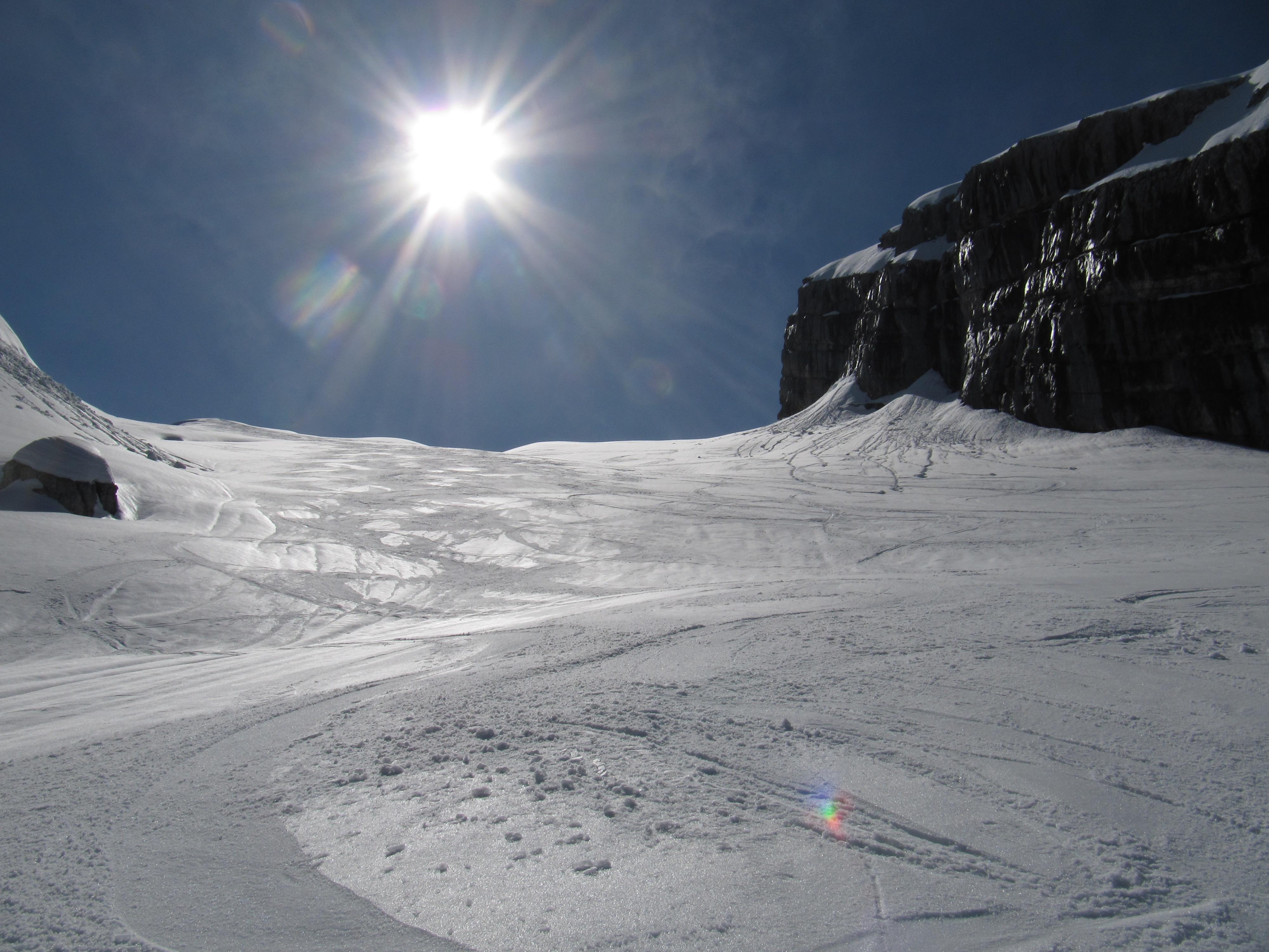 Lawinen: Ab 10Uhr Naßschneerutsche von Mittelspitz und Hocheck. In der Ostwand hats auch ein paarmal ordendlich gerumpelt.