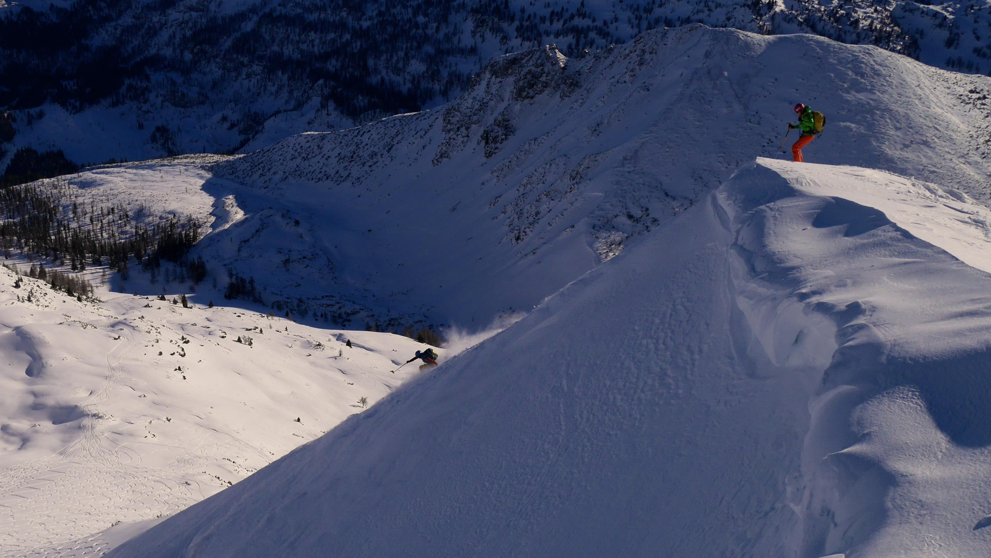 Lawinenwarnstufe 3 im Bereich Niedere Tauern oberhalb 1.800 m aufgrund eines Triebschneeproblems mit Schwerpunkt in den Sektoren von West über Nord bis Ost, wobei die frischen Einwehungen primär die West-und Nordseite betreffen...das ist am vergangenen Samstag die Ausgangsbasis für die Tourenplanung in Obertauern...