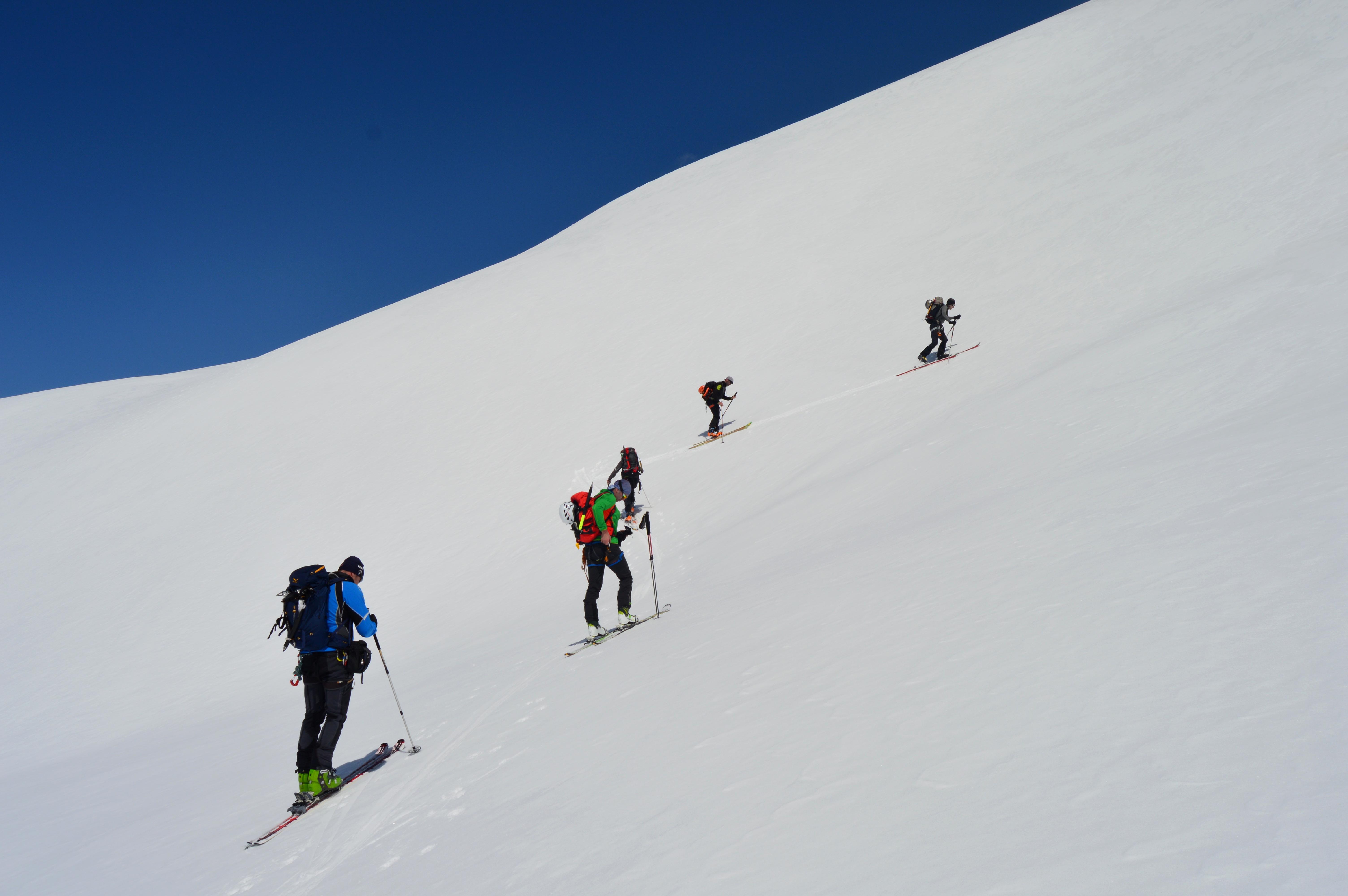 Nach einer kurzen Abfahrt querten wir zum Passo del Valbona und fuhren, dem Pulverschnee geschuldet, ein ganzes Stück Richtung Italien ab. Danach mussten wir wieder gut 200Hm auffellen um zur Sella del Forno zu gelangen. Von hier gings fuhren wir dann mit den Schi bis vor die Hüttentür.