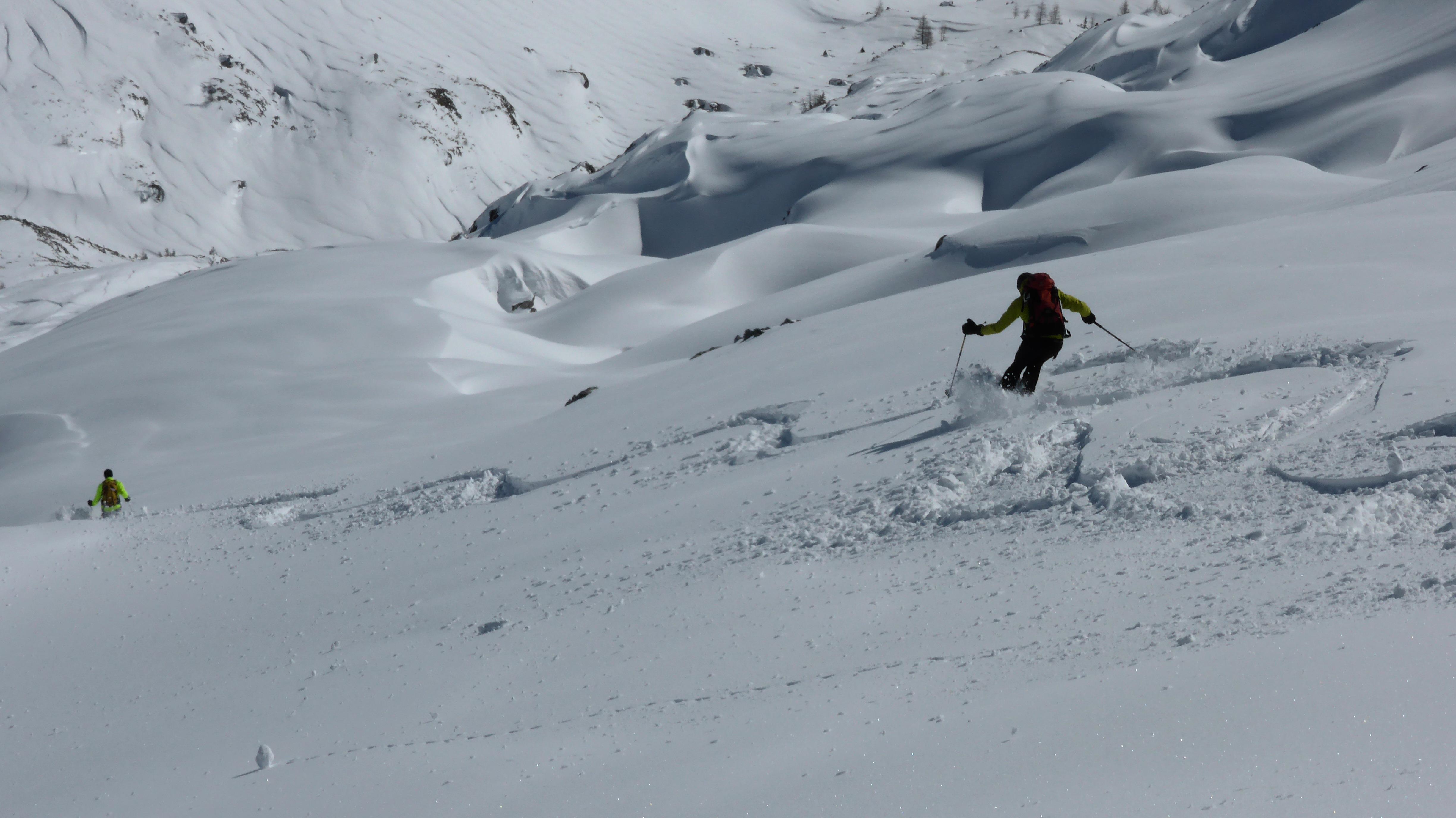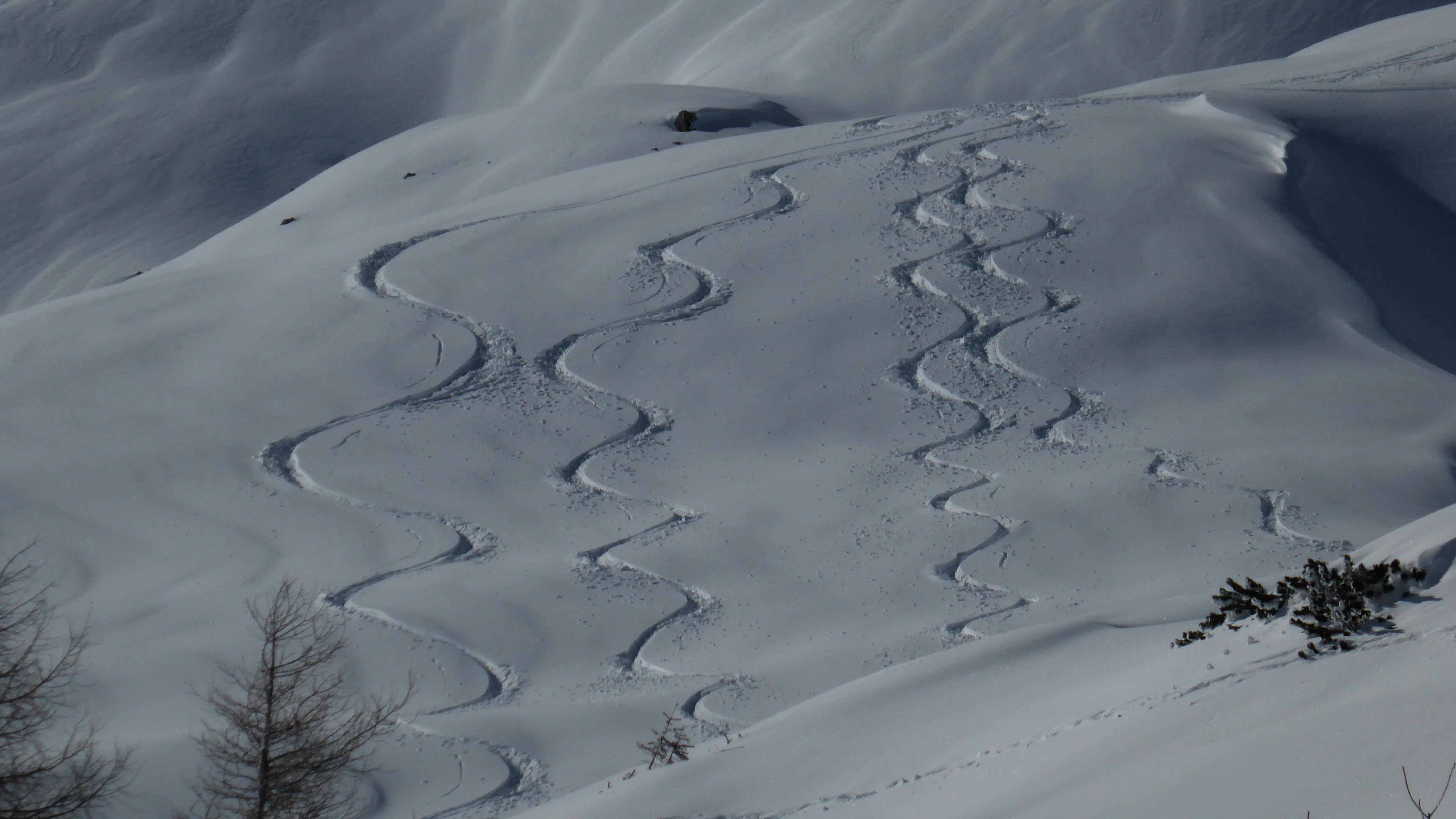 ...heute ziemlich spritzige Bedingungen - die oberhalb der Waldgrenze stark in die Ostsektoren verfrachtete Neuschneeschicht von gestern bzw. vergangener Nacht hat nur schlecht mit der Altschneedecke gebunden...