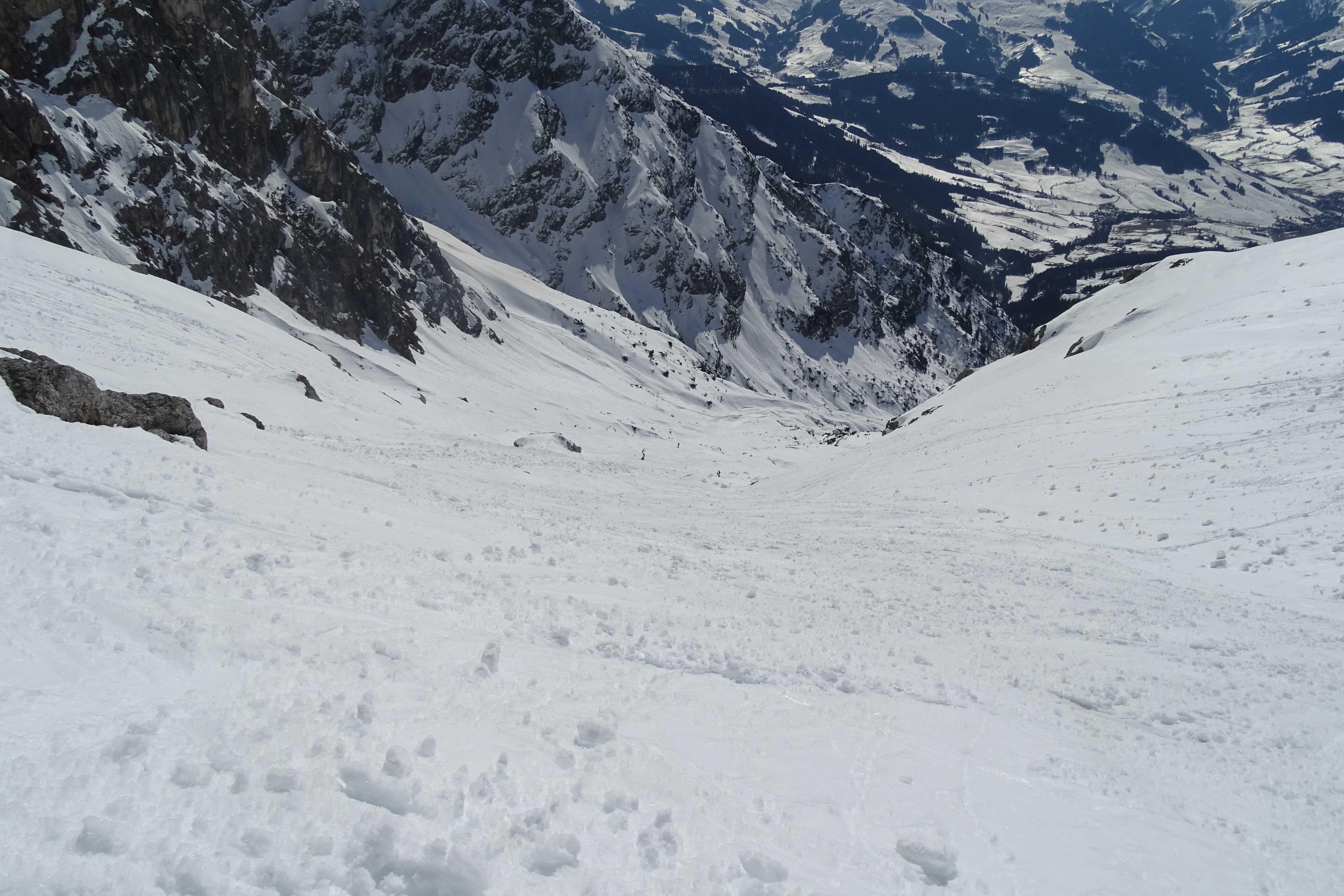 Abfahrt: um 12h30 war der Firn schon Geschichte und nur mehr an einigen Stellen zu finden. War dann fast so schweißtreibend wie der Aufstieg. Nach dem Wasserfall geht es mit einigen kurzen Unterbrechungen noch bis zum Parkplatz.
