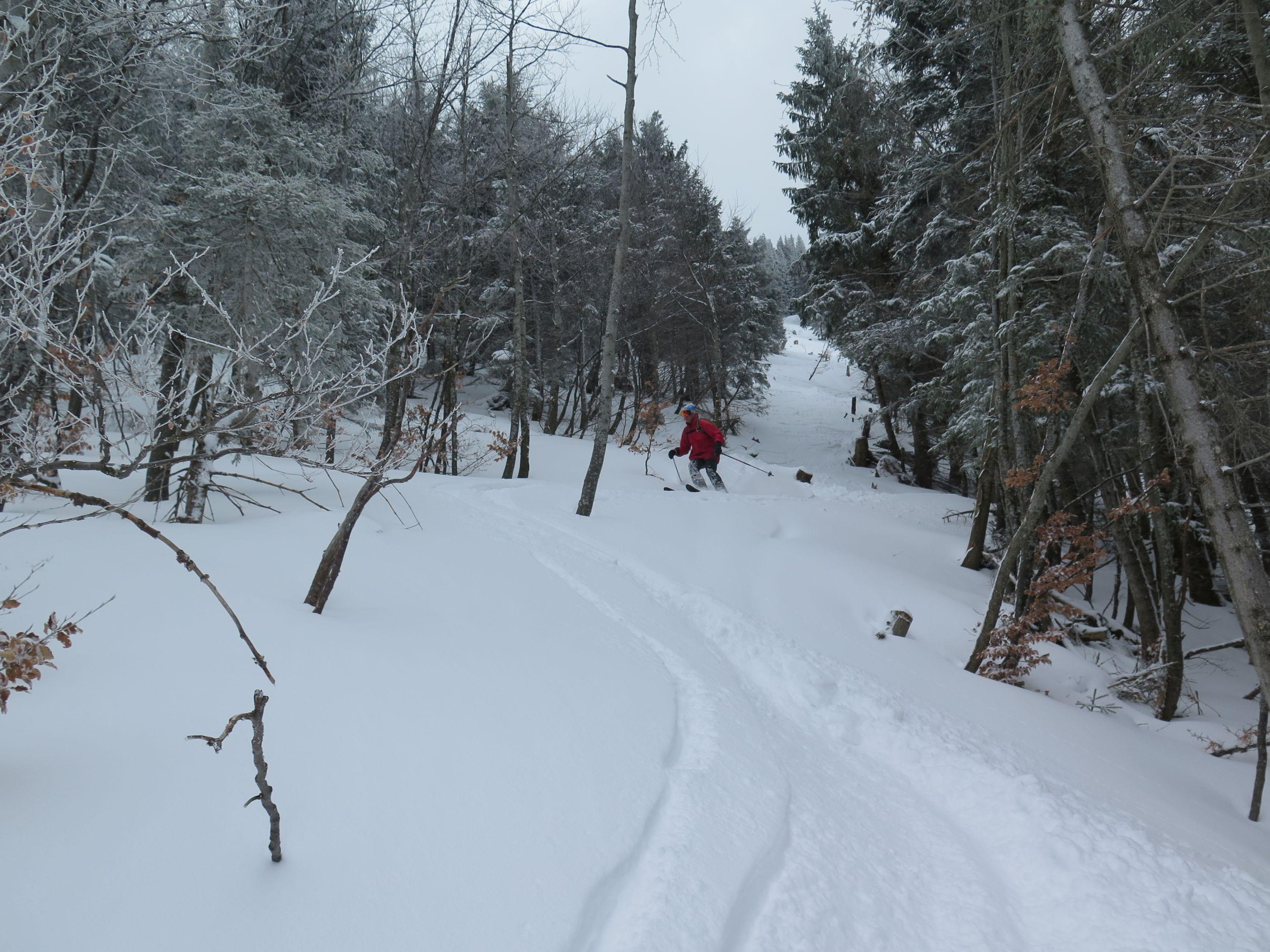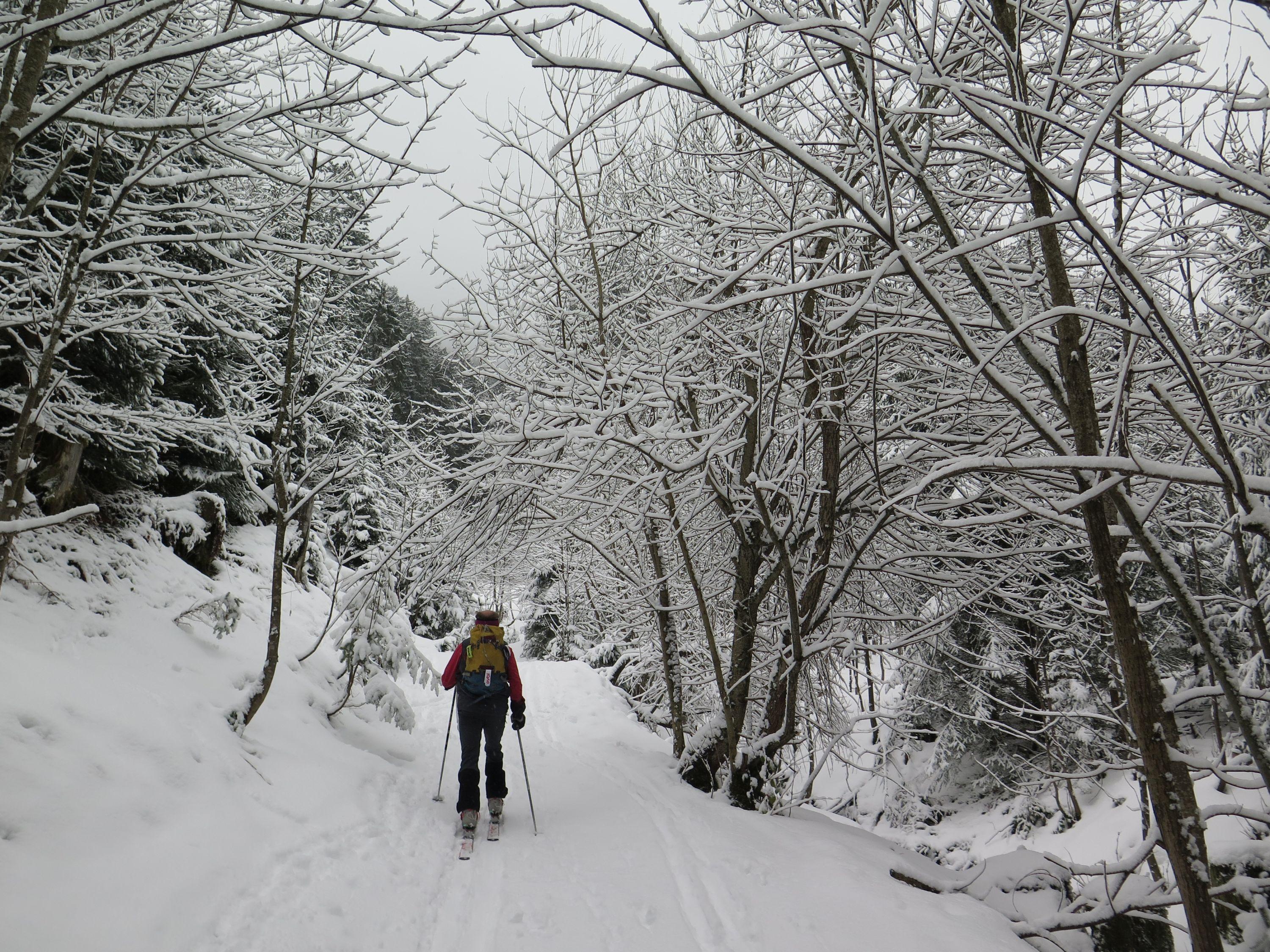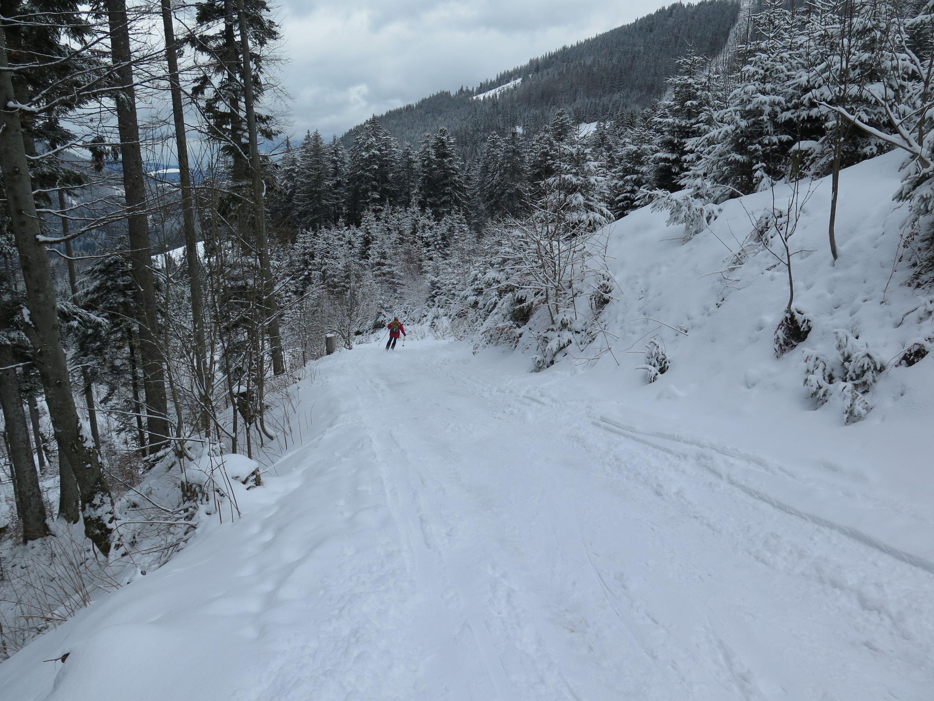 Wetter: stark bewölkt, zeitweise unergiebiger Schneefall,am Sattel zwischen Schafberg und Loibersbacher Höhe und am Gipfelgrat mäßig starker Wind,ca 5 cm Neuschnee. Bei der N-Abfahrt im oberen Teil doch ca 20cm Pulver auf Harschdeckel,auf der Forststraße zur Mittereggalm im Wald sehr dünne Schneedecke´( Feindkontakt) im Freien gut zu fahren.Nach dem gestrigen milden,stürmischen Tag überraschend gute Verhältnisse