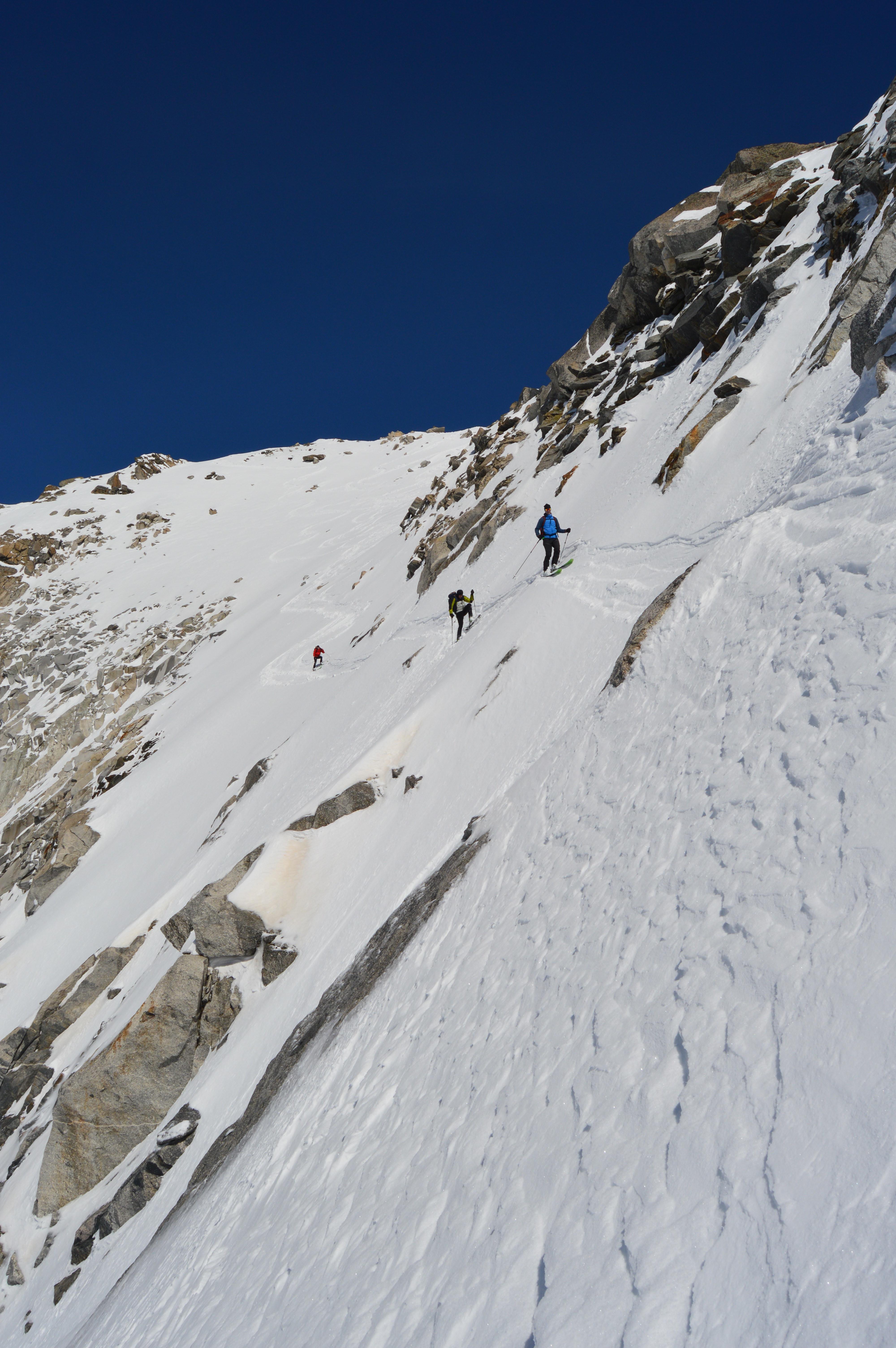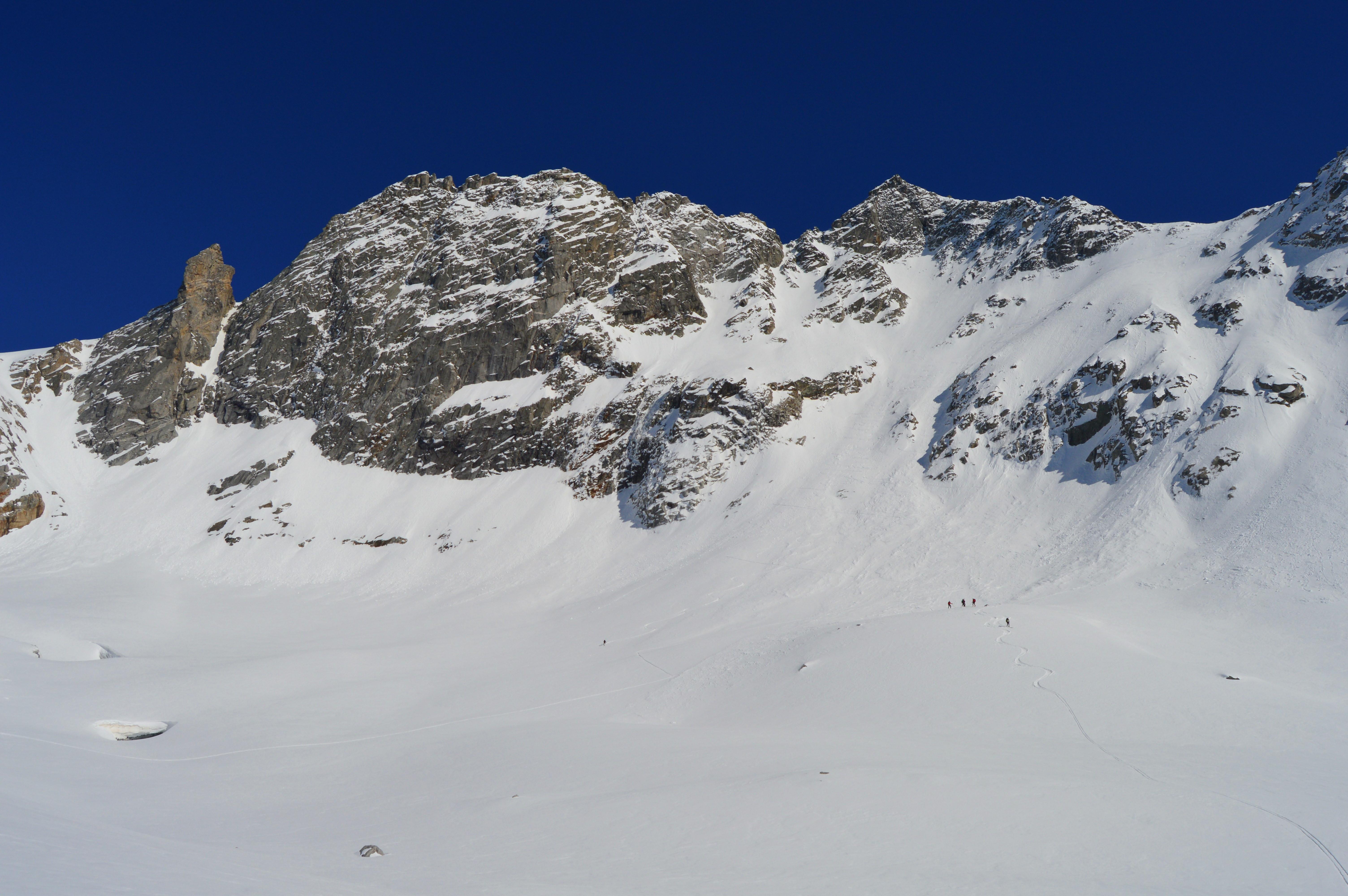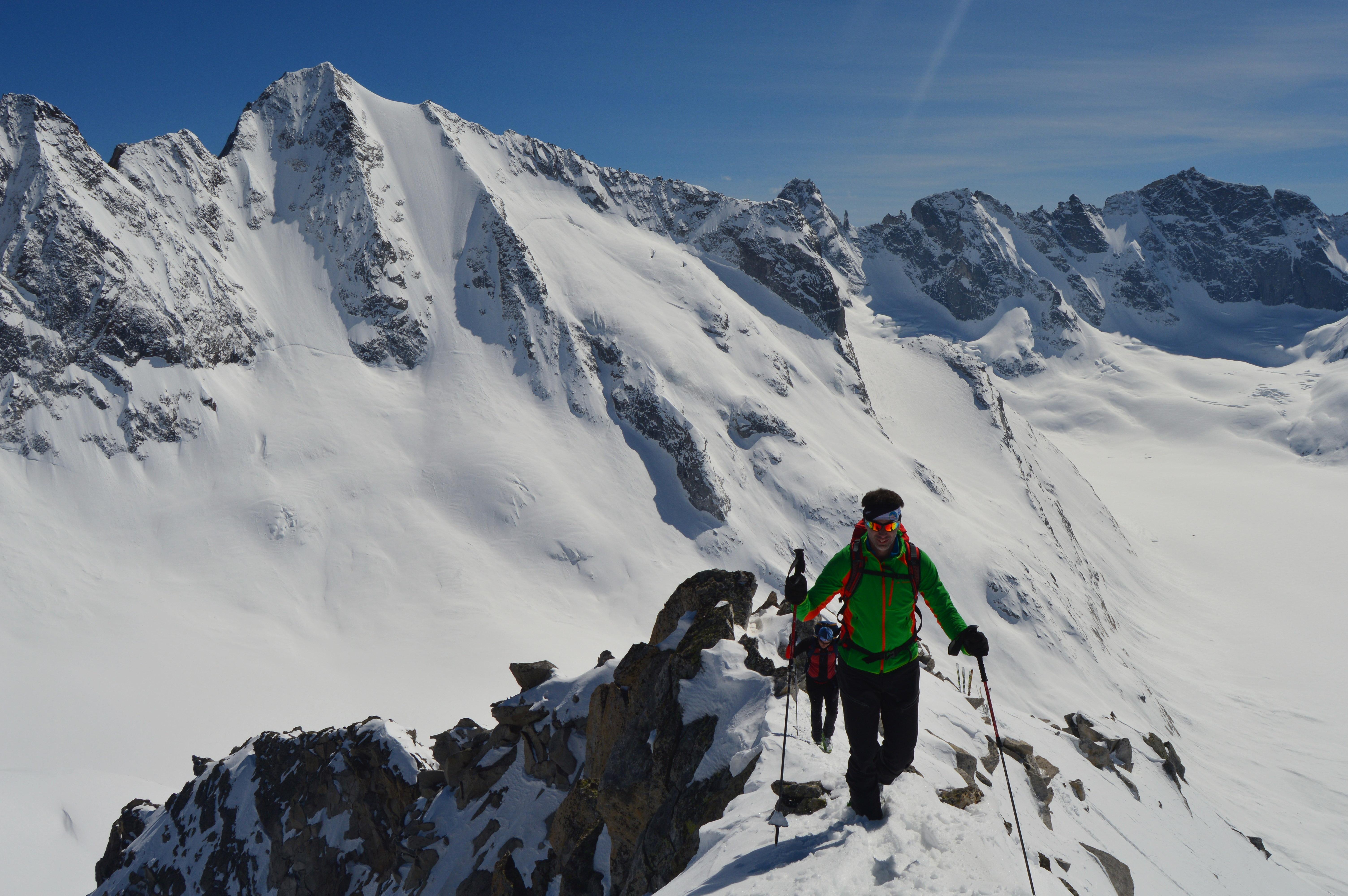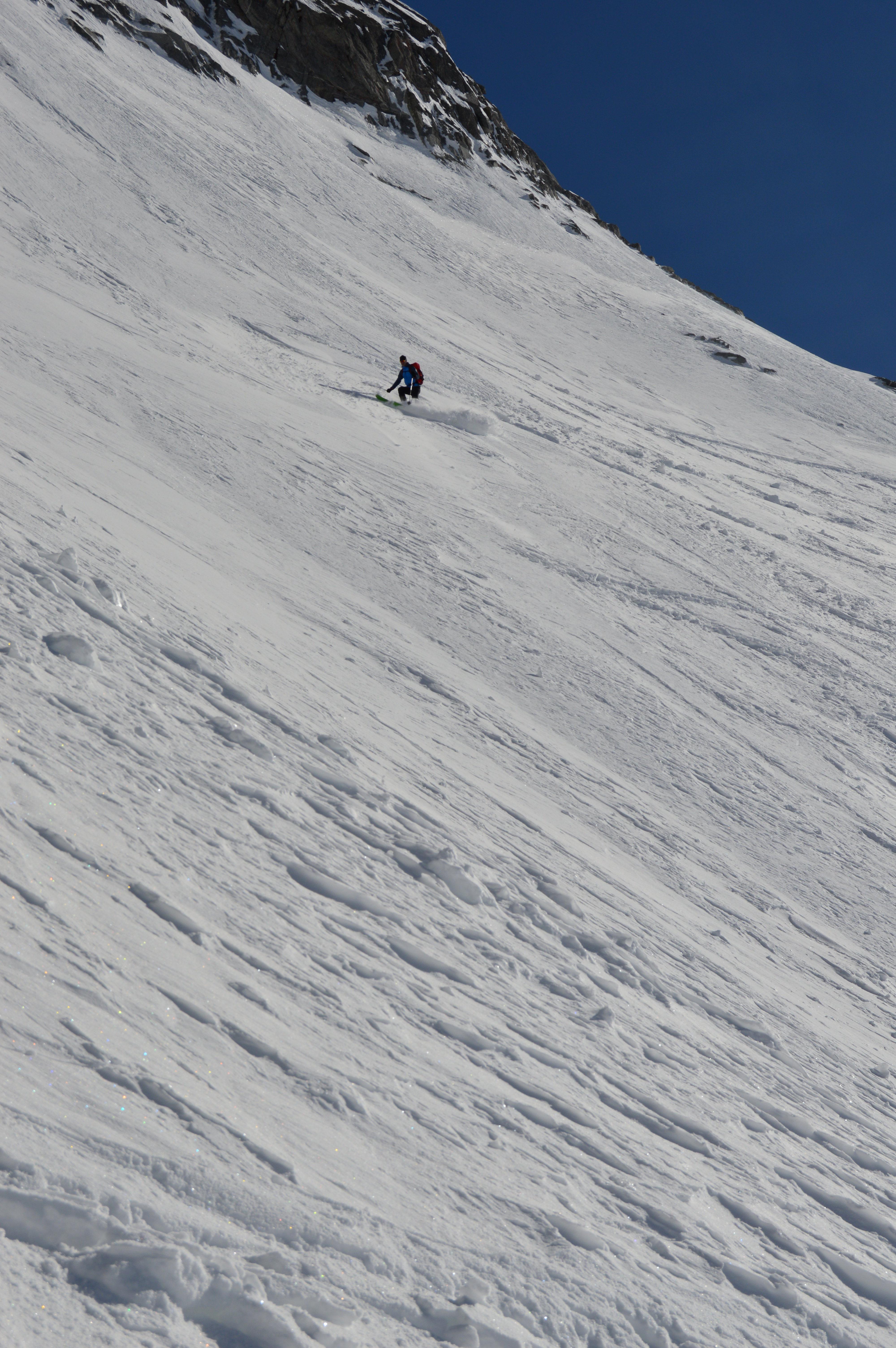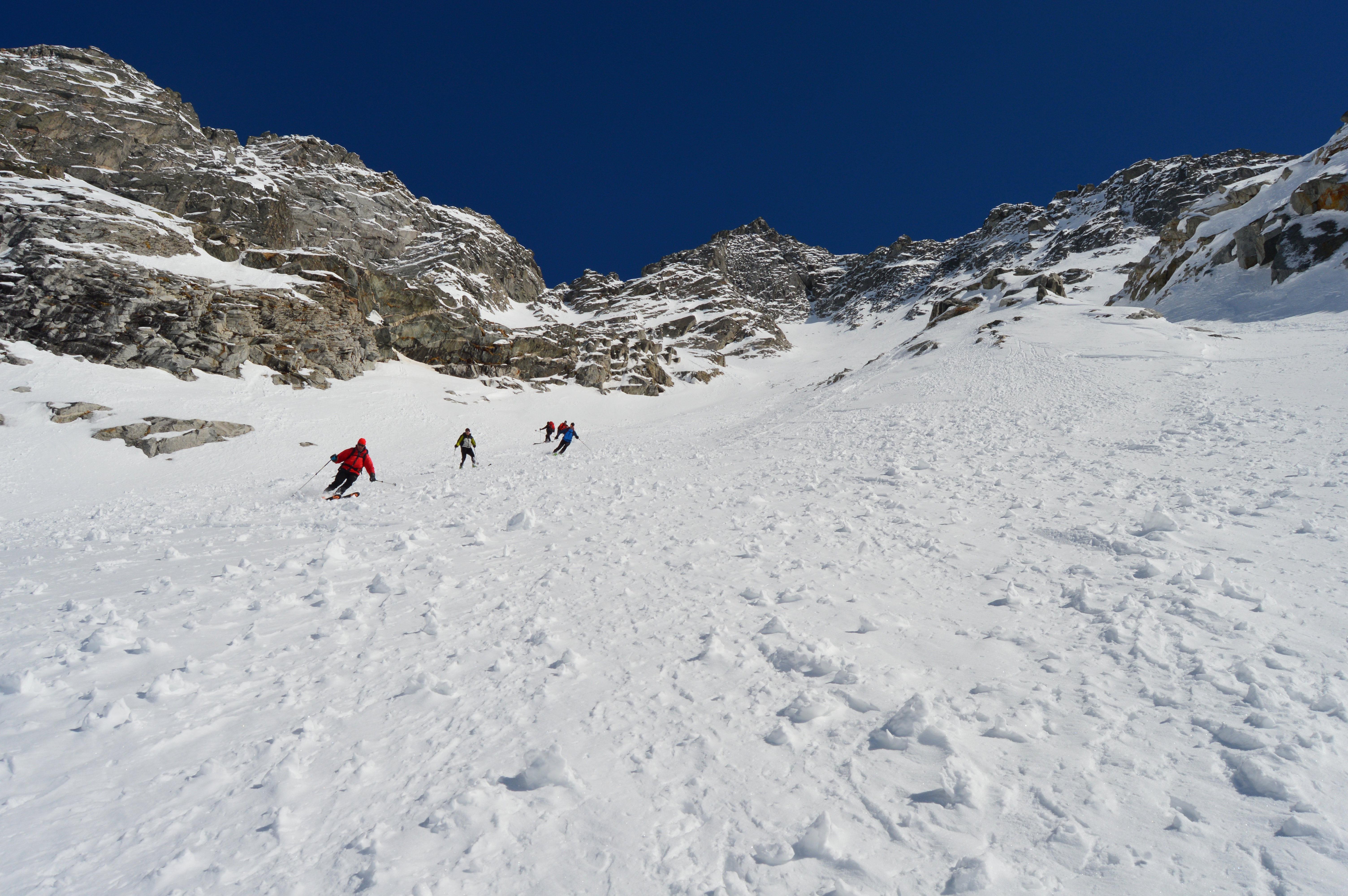 Ansonsten hatten wir hervorragende Schneeverhältnisse. Die Gletscher sind noch perfekt eingeschneit und unsere Ziele für Mi und Do waren noch unverspurt!