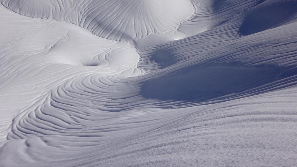 Der Neuschnee vom Wochenende kommt auf der durch Gefrierprozesse beeinflussten Schneedecke zu liegen (Schmelz und Windharsch). Ebenso der unter Westwind Sa/So umgelagerte Triebschnee kammnah wie auch kammfern. Hier einige Bilder aus der Tauernscharte.