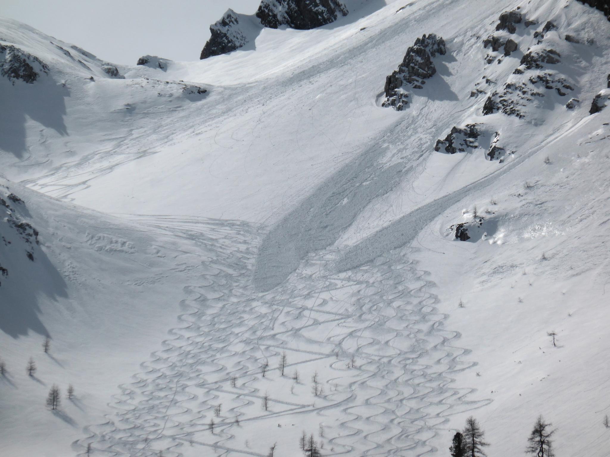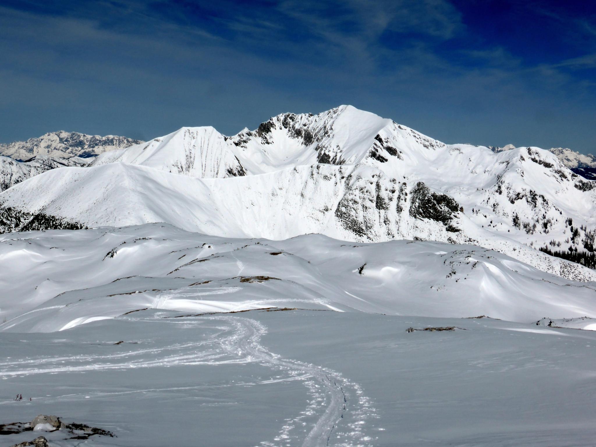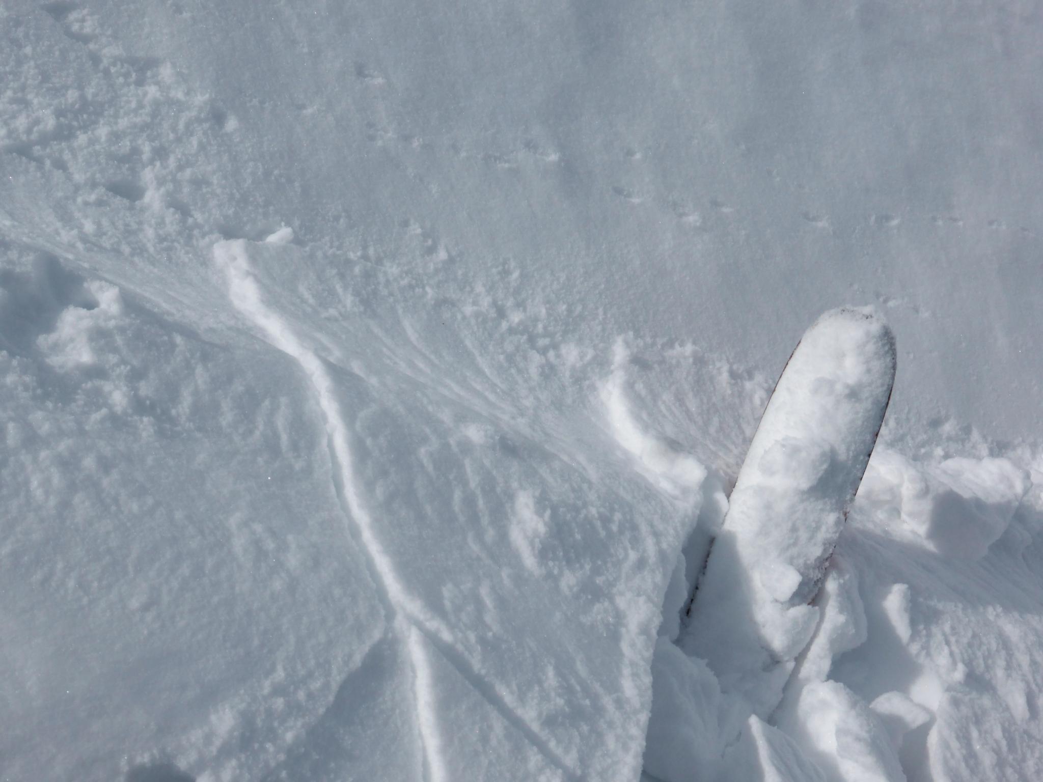 Lawinen: Diverse Neuschneerutsche im Steilgelände bzw. aus der Flanke der Permuthwand in das Kar unterm Taferlnock. Dort verlegen zwei kleine Rutsche die am Vormittag angelegte Spur auf den Taferlnock (siehe Foto).