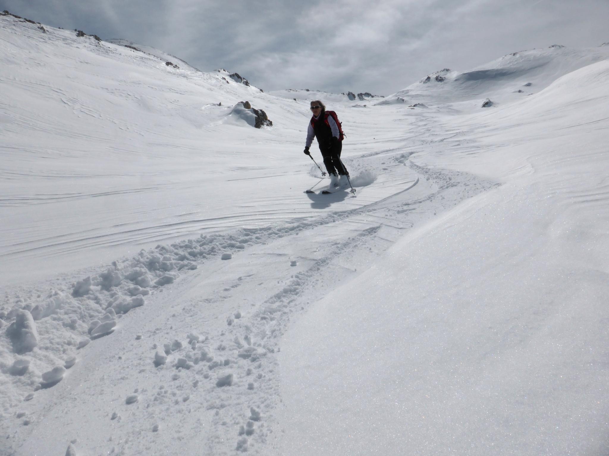Leider ist mir am Gipfel beim Fersenbacken der Tour lite eine Imbusschraube ausgerissen (2 mm von der Kunststofffräsung). Die Bindung hat sich deshalb nicht mehr verriegeln lassen und es war eine Abfahrt im Telemarkstil angesagt. War aber weniger schlimm als befürchtet.
