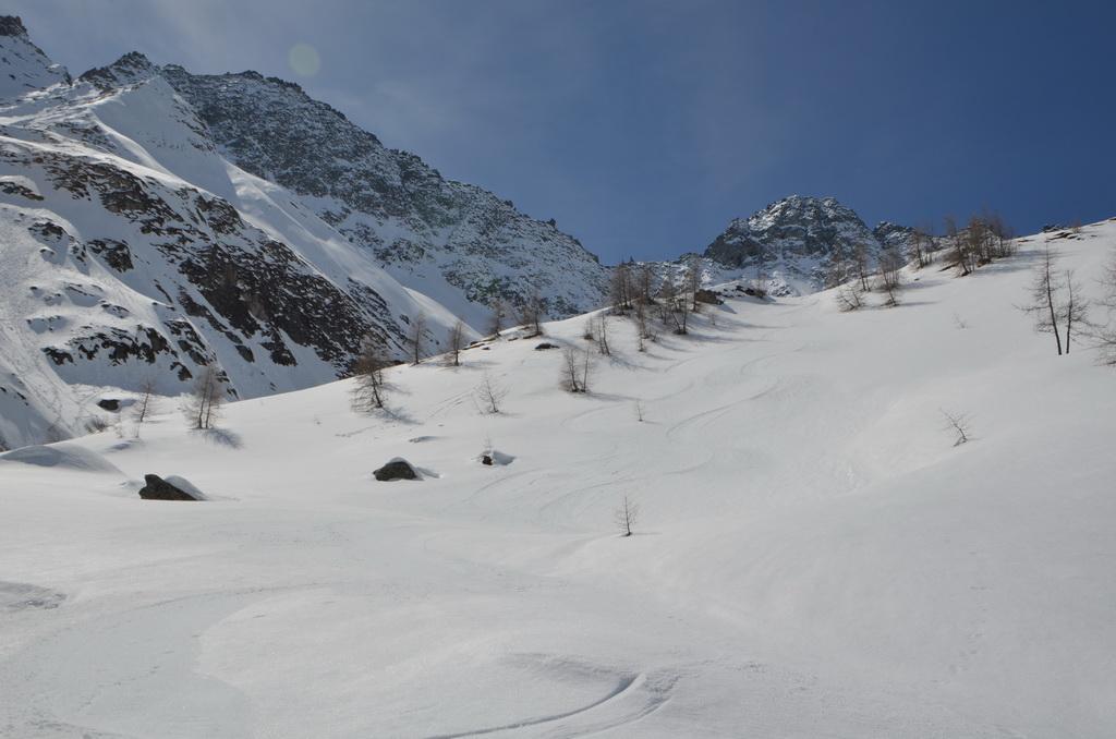 Heute Traumbedingungen in der Venedigergruppe. Die Überschreitung von der Bodenalm über die Eisseehütte ins Frossnitztal war an diesem Tag nahezu perfekt. Allerdings haben wir uns heute aufgrund der Erwärmung die letzten 40hm zum Gipfel geschenkt und sind um ca. 10:40 Uhr direkt von der Scharte vor dem letzten Aufschwung abgefahren. Die Abfahrt ins Froßnitztal bis zur Zedlacher Alm beinhaltet doch einige Steilstufen und wir wollten da einfach auf Nummer Sicher gehen. Belohnt wurden wir mit einer Traumhaften Firnabfahrt bis zur Alm. Speziell die steile Ostflanke von der Scharte war wirklich genial und der Zeitpunkt dafür optimal. Der zusätzliche Zeitaufwand für den Gipfel hätte uns wahrscheinlich um dieses Vergnügen gebracht. ALles in allem eine wirklich lohnende Überschreitung, welche für den langen Fussmarsch nach der Abfahrt durch das Froßnitztal mehr als entschädigt.
