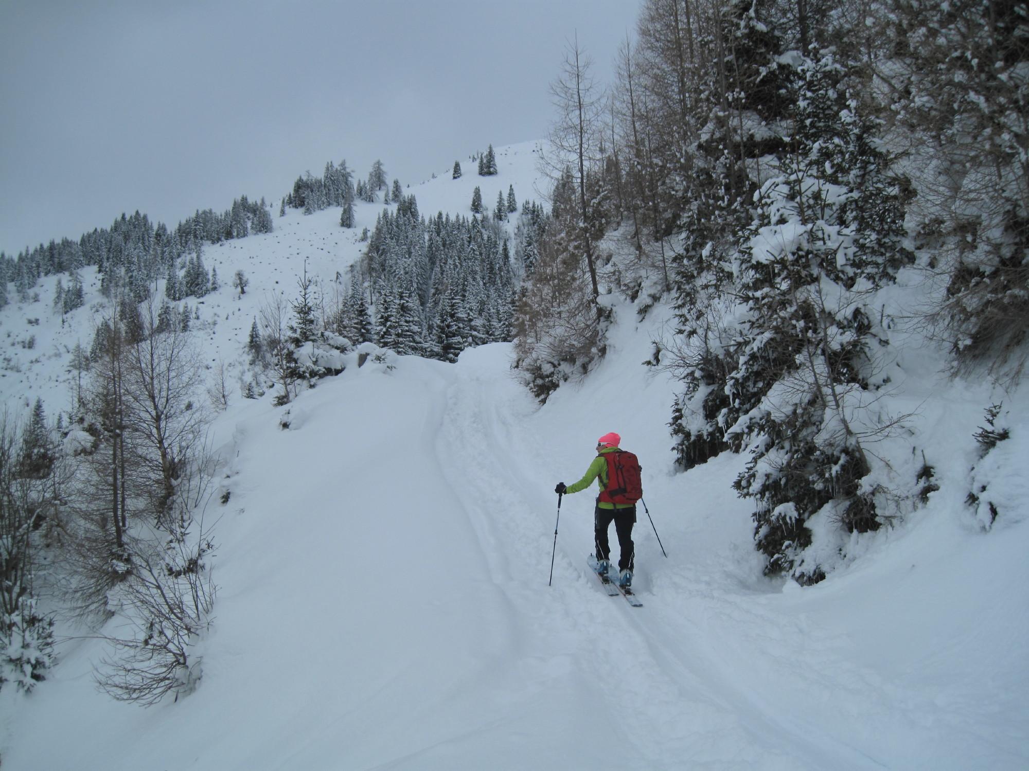 Nun wird´s aber auch für uns Zeit die Kletterpatschen gegen die Tourenschischuhe auszutauschen. Vom Ottino gehts bei ausreichender Schneelage auf den Ahornstein. Wie bereits beim Aufstieg zu bemerken war, hatte die Schneedecke vom gestrigen Sonnentag in den steileren Bereichen bereits eine unangenehme Kruste ausgefaßt. Wir entschlossen uns daher vom Gipfel ostseitig Richtung Paußalm abzufahren. Hier gabs dann ausreichend lockeren, spannungsfreien Pulver. Erst im unteren Teil, wo wieder Südhänge vorherrschen konnten wir dem unangenehmen Harschdeckel nicht mehr entkommen. Aber für diesen Winter eine nette Tour mit guten Verhältnissen und ohne Feindkontakt.