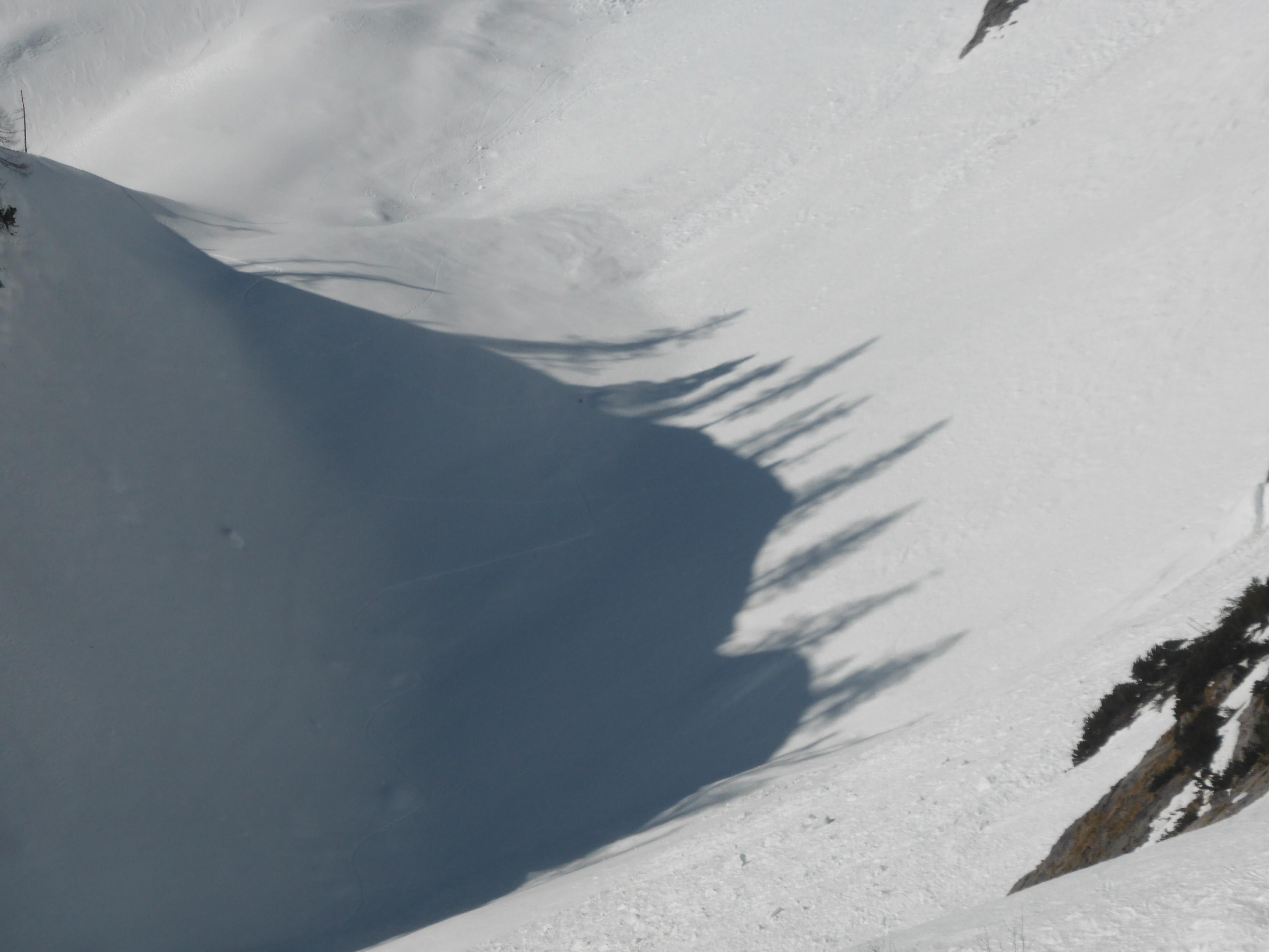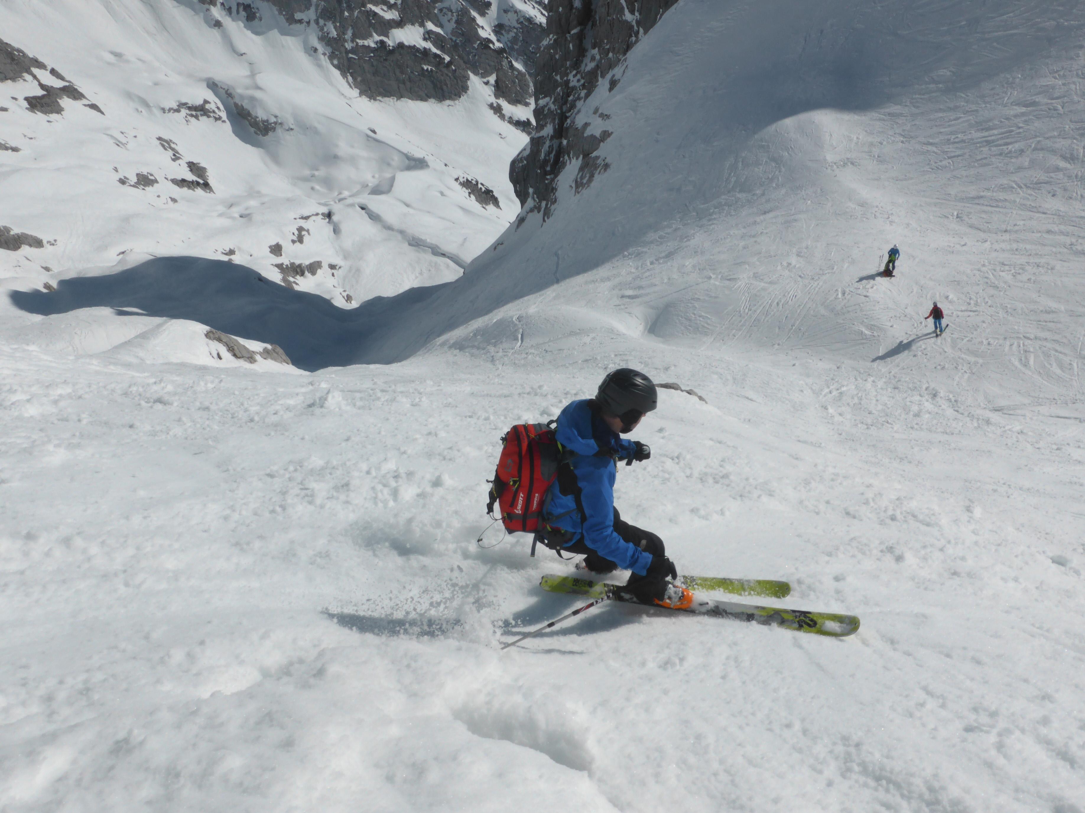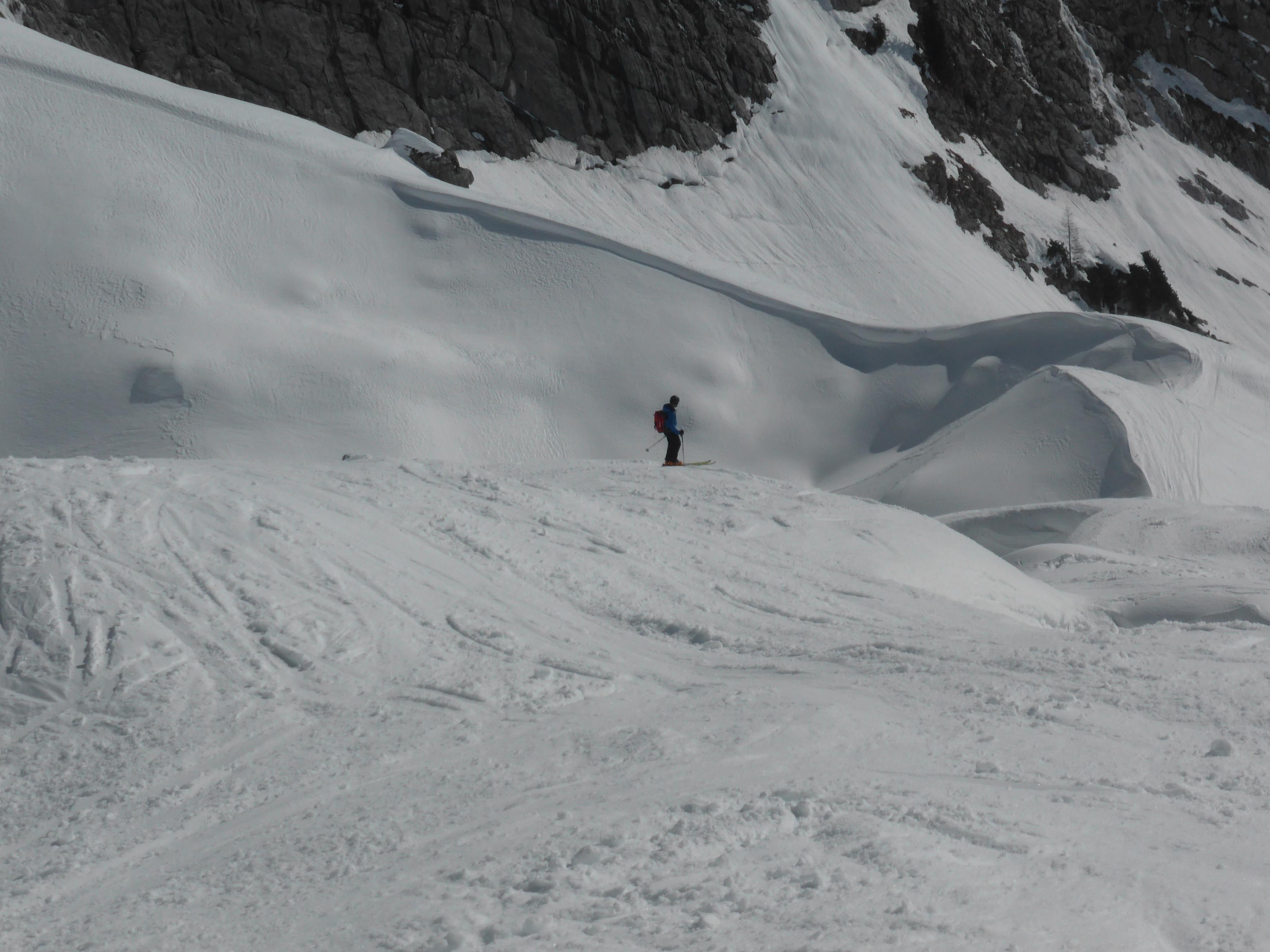 Firnig bzw. kompakter Sulzschnee fast im gesamten Verlauf der Abfahrt. Lediglich der Bereich unter dem Gipfel mit der Querung von der Scharte zwischen Hochtor und Festkogel war etwas härter bzw. teilweise noch pulvrig. Die direkte - felsdurchsetzte - Gipfelflanke ist derzeit nicht lohnend.