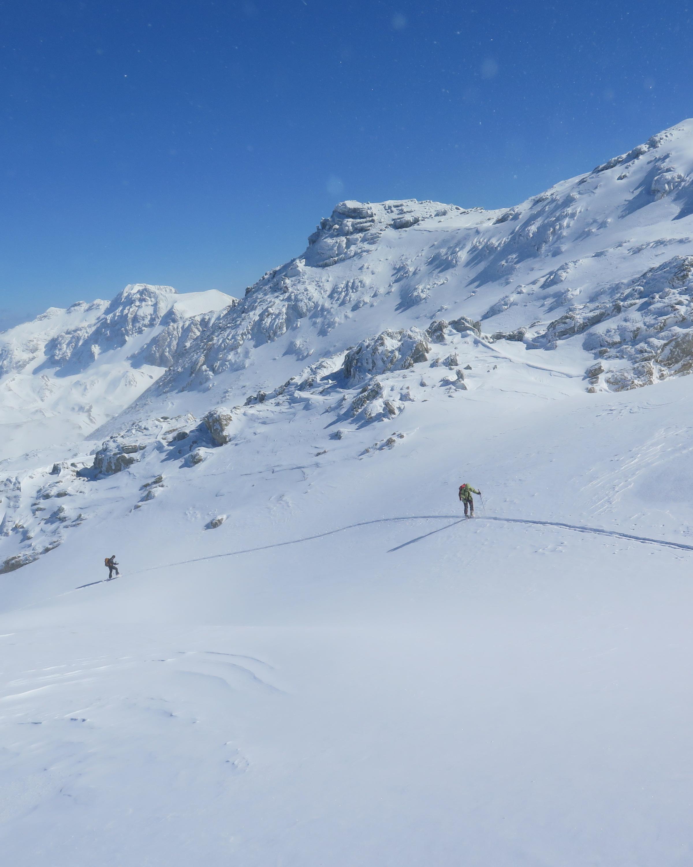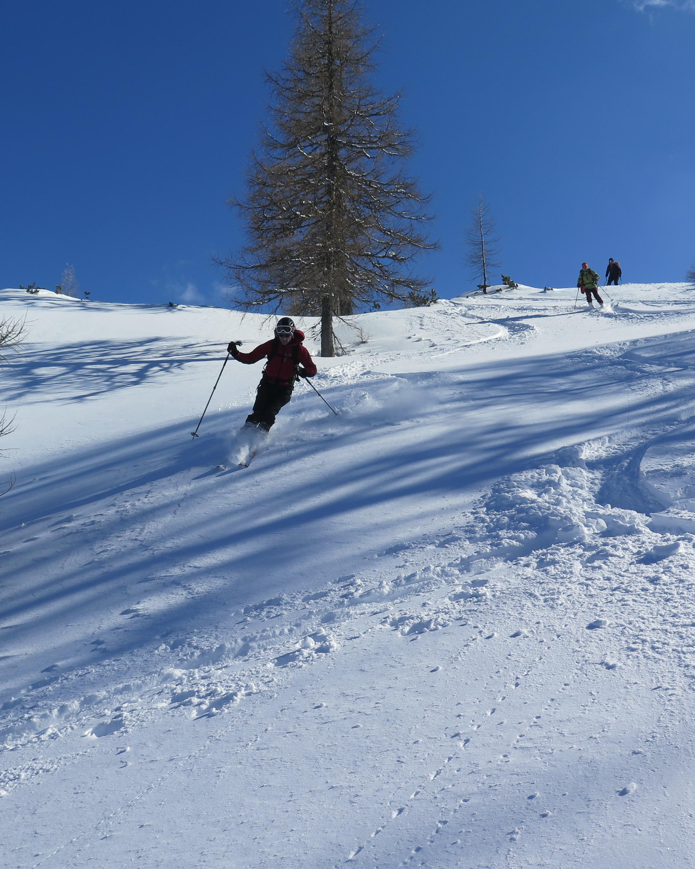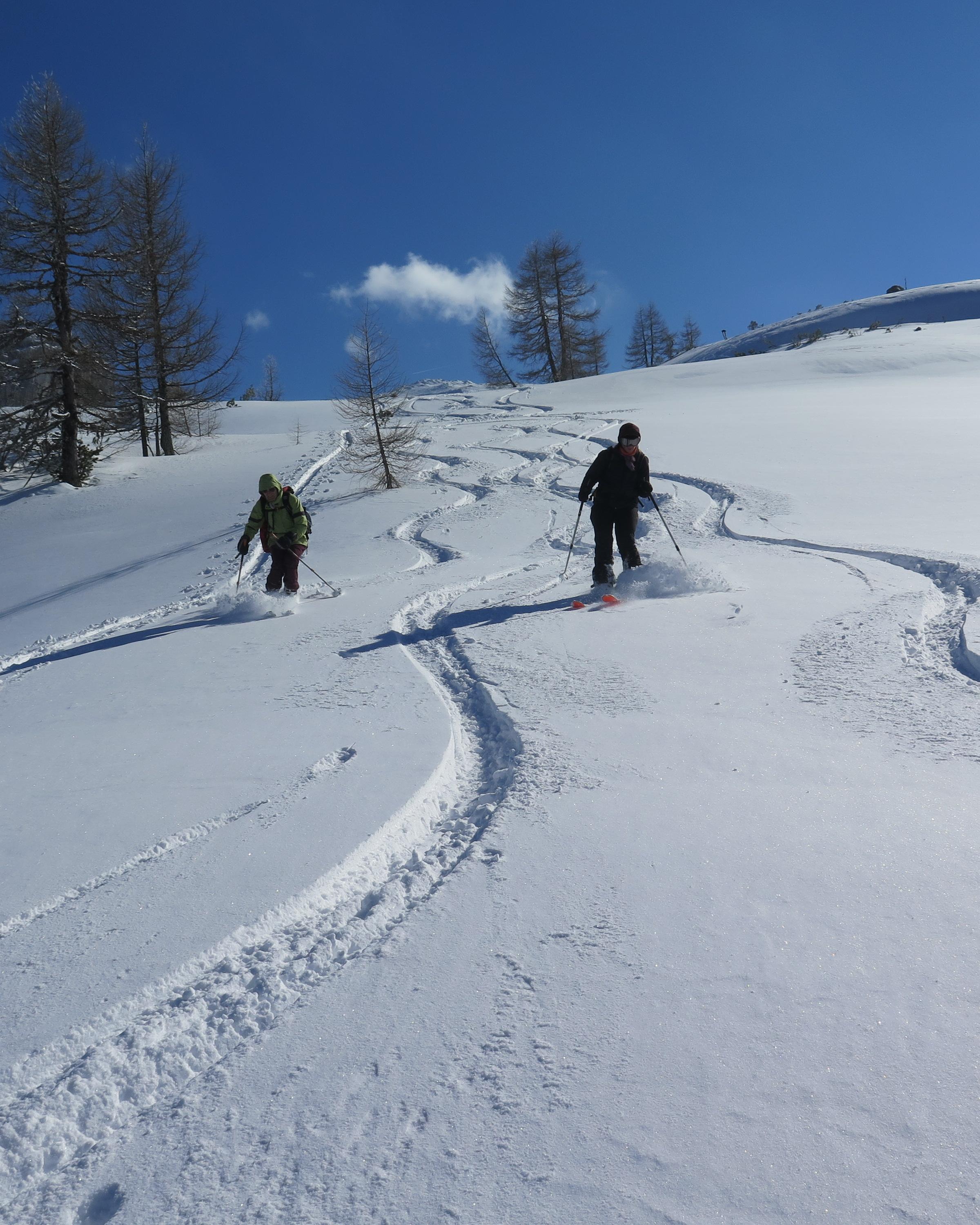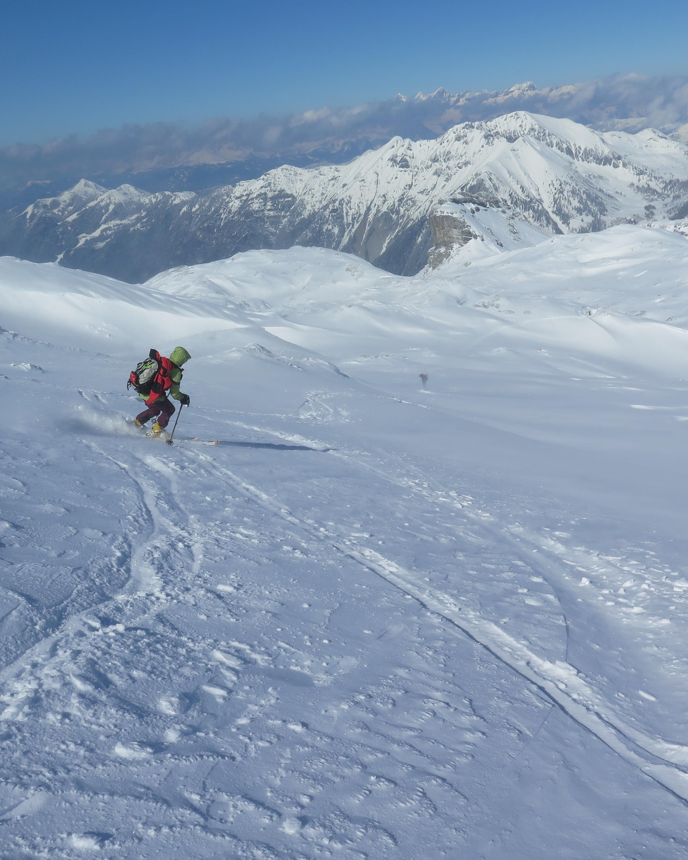Radstädter Tauern.Aufstieg vom Tauern N-Portal über obere Gasthofalm und weiter über das Gasthofkar.Wetter zunehmend sonnig,Neuschnee ca 15-20cm,im Waldbereich angefeuchtet,oberhalb Pulvrig,auf der Hochfläche des Gasthofkares teilweise Windgepresst,bis zur Waldgrenze schöne Pulverschneeabfahrt, im Gipfelbereich lebhafter Wind.