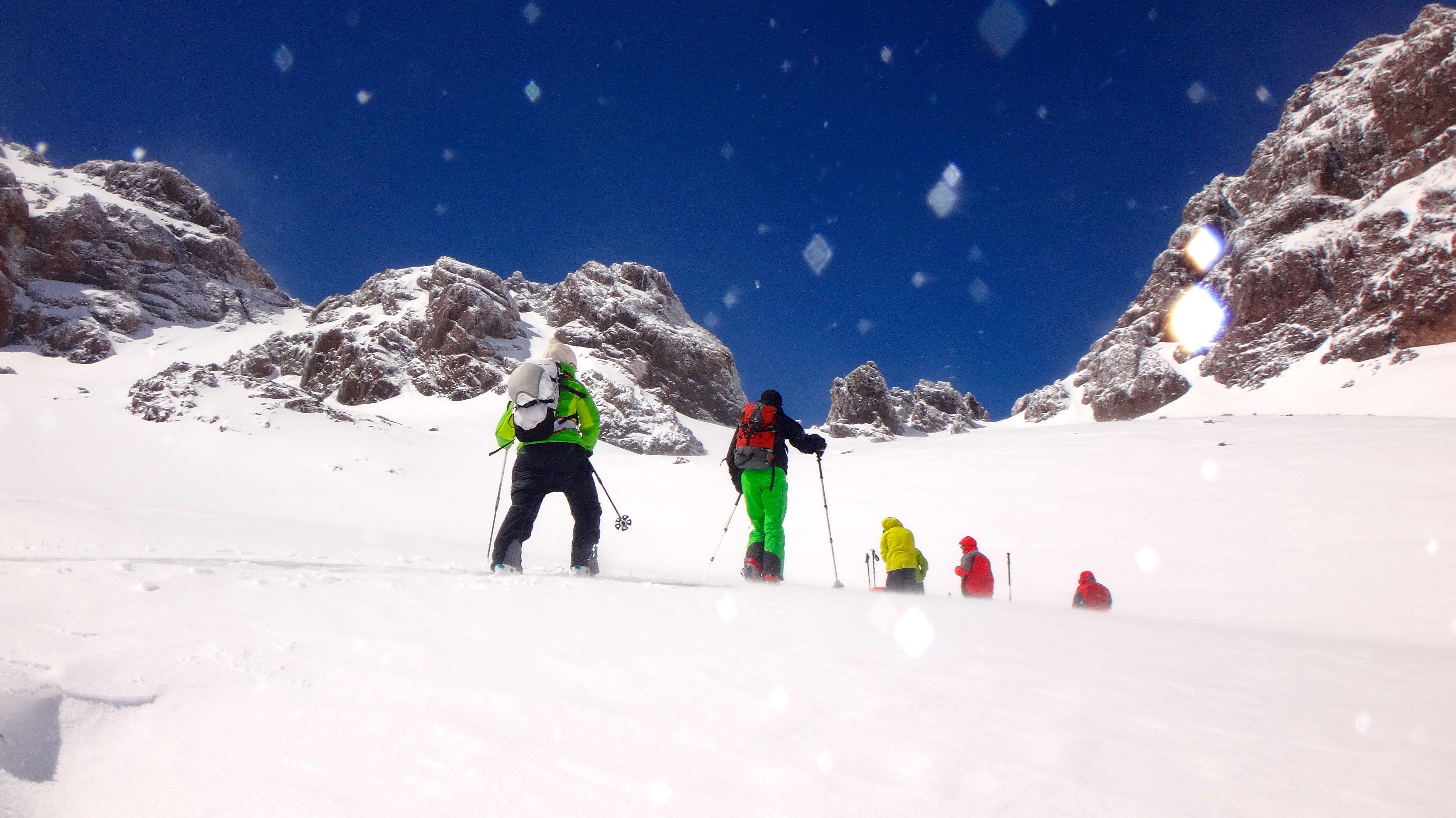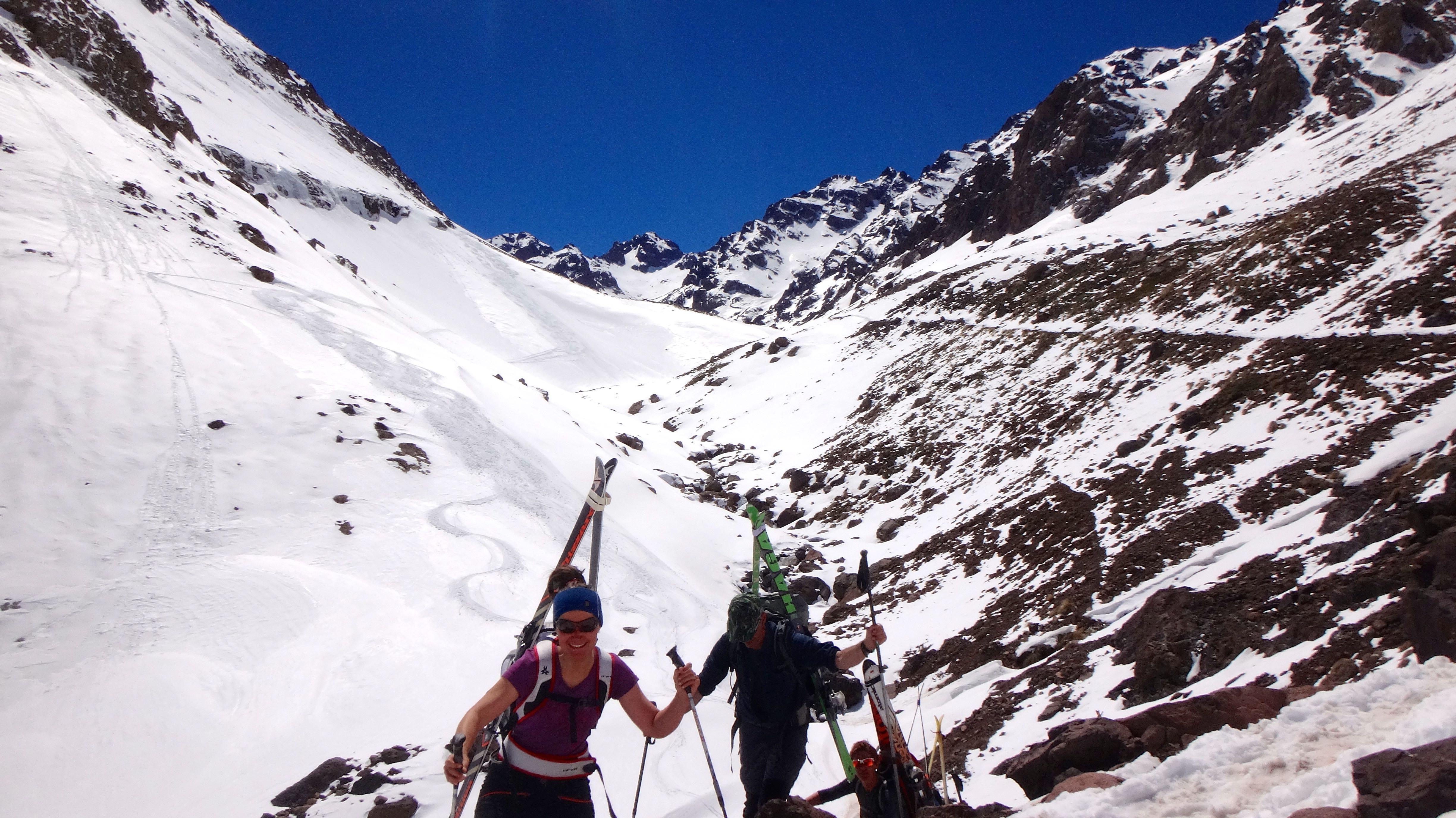 Ein Hauch von Exklusivität, Abenteuerlust und Karl-May-Romantik liegen über dem Hohen Atlas. Die mit den heftigen Atlantikwinden ankommenden ergiebigen Niederschläge, der Wintermonate erlauben normalerweise das Skifahren von Mitte November bis weit in den Mai hinein. Zugegeben, der Schnee ist gleich, ob hier in Marokko, in den Pyrenäen oder bei uns in den Alpen. Doch die extremen Temperaturschwankungen zwischen minus 15 Grad in der Nacht und plus 20 Grad am Tag bescheren uns den legendären Afrikafirn der uns noch am späten Nachmittag genussvoll die Firnhänge hinabschwingen lässt....lassen sollte, denn heuer war alles ganz anders!