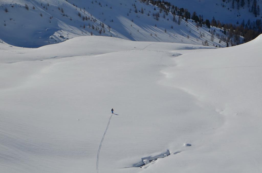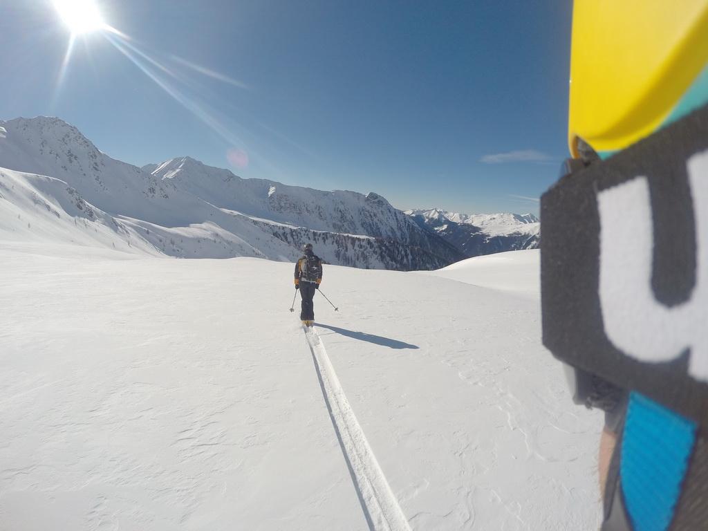 Am Parklatz in St. Magdalena hätten wir uns die heute wirklich lässigen Bedingungen kaum vorstellen können. Die vom Parkplatz weg noch etwas spärliche Schneelage wurde zunehmend besser und spätestens ab der Kasermähdalm wirklich gut. Leider hat auch hier der WInd stark gewütet und die steile Gipfelflanke war heute tabou. Da wir die Abfahrtsspour etwas anders als die AUfstiegsspur gewählt haben mussten wir dabei ein kurzes steiles Stück überwinden und wie vermutet is dieses dann auch gleich abgegangen.