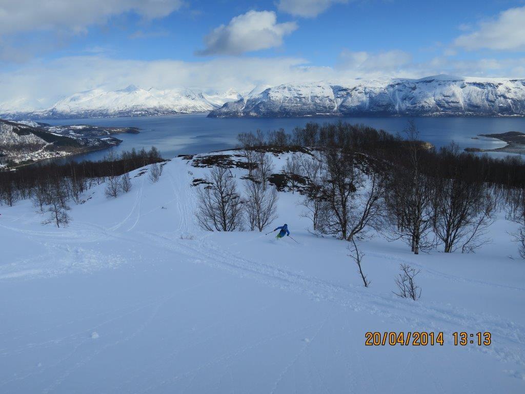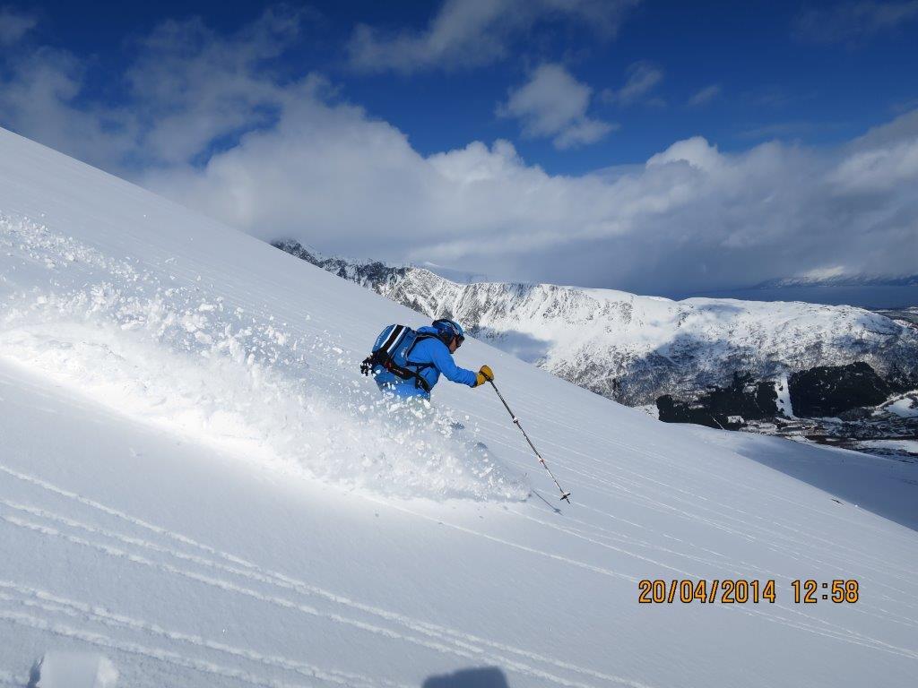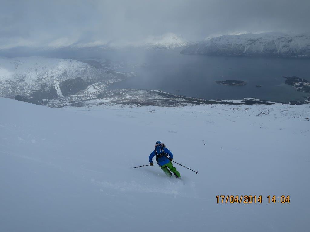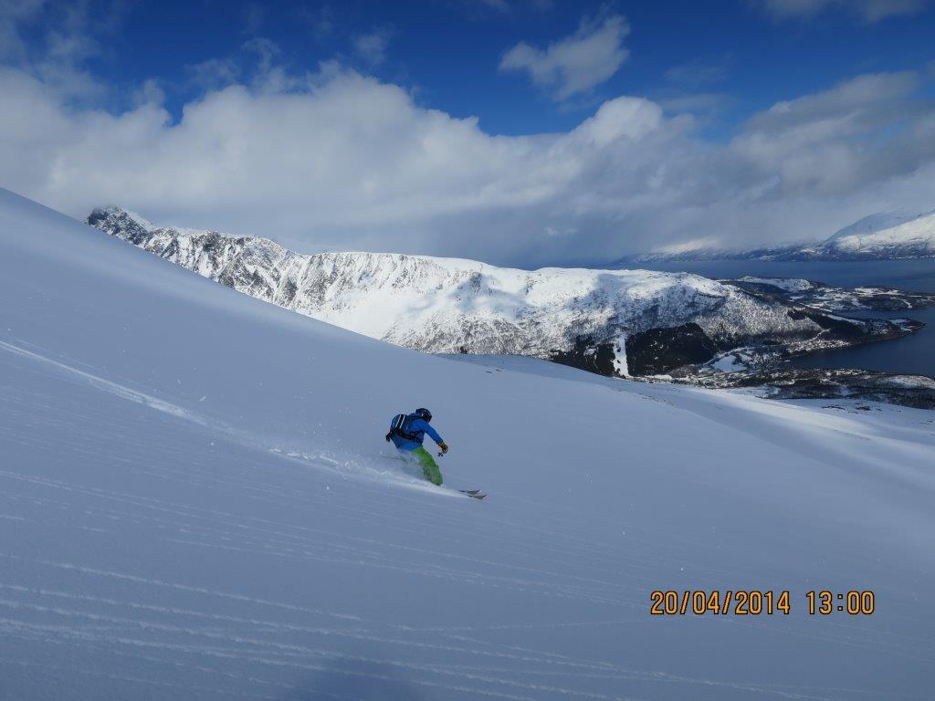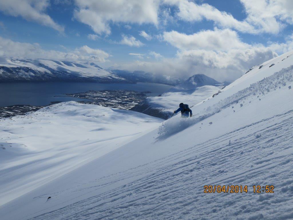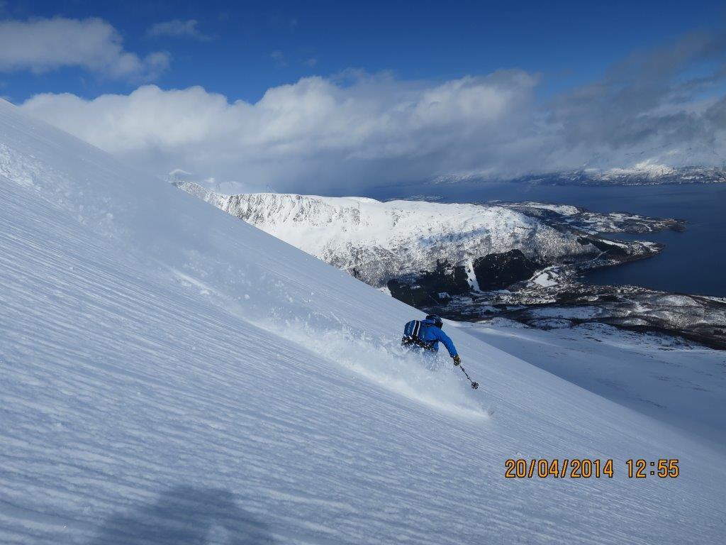 Der Kavringtinden erwies sich bei unserem Lyngenalps Aufenthalt als oft begangener Berg. Er bot bei den vorherrschenden stürmischen Verhältnissen ideale Schneebedingungen sowohl als Powder als auch als Firn.
