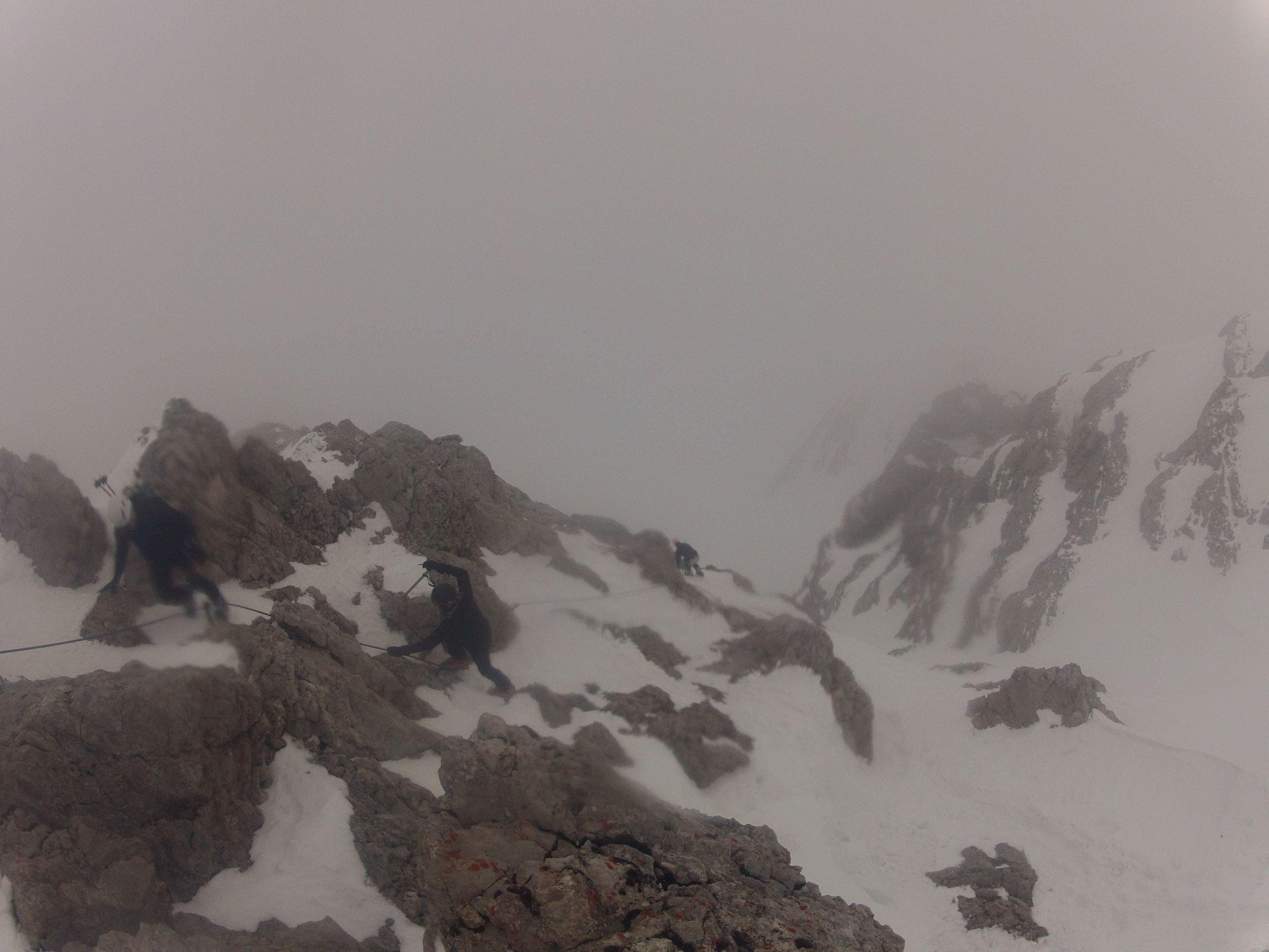 Im Gletscher Bereich wehte starker Wind - Triebschnee Ansammlung waren aber nicht vorhanden. Der Westgrad selbst war sehr gut zum gehen - das Drahtseil war zur gänze frei vom Schnee. Am Gipfel selbst herrschte keine gute Sicht. Es war trotzdem viel Betrieb am Dachstein - vor allem vom Randkluftanstieg war der Ansturm groß.