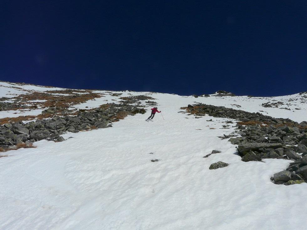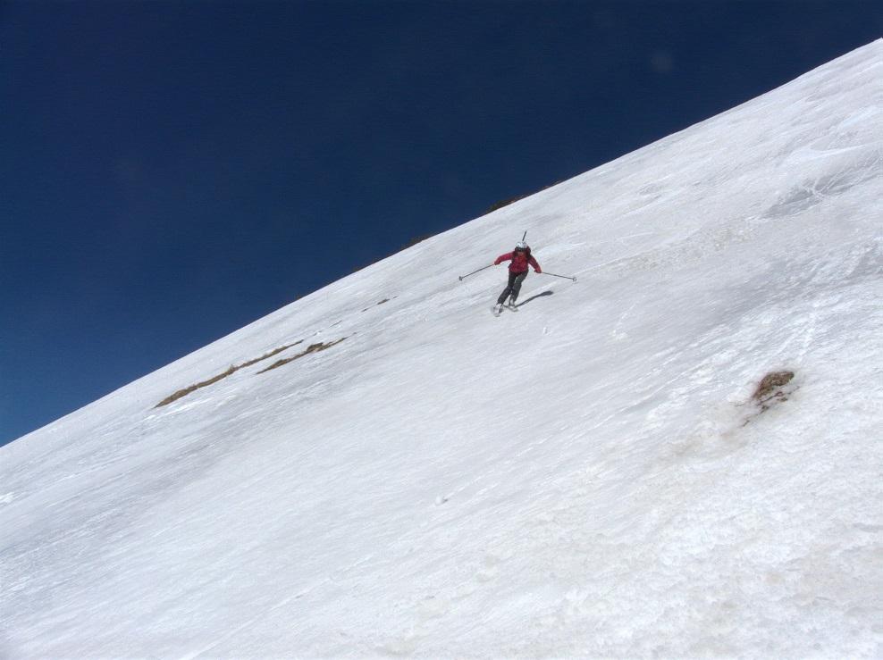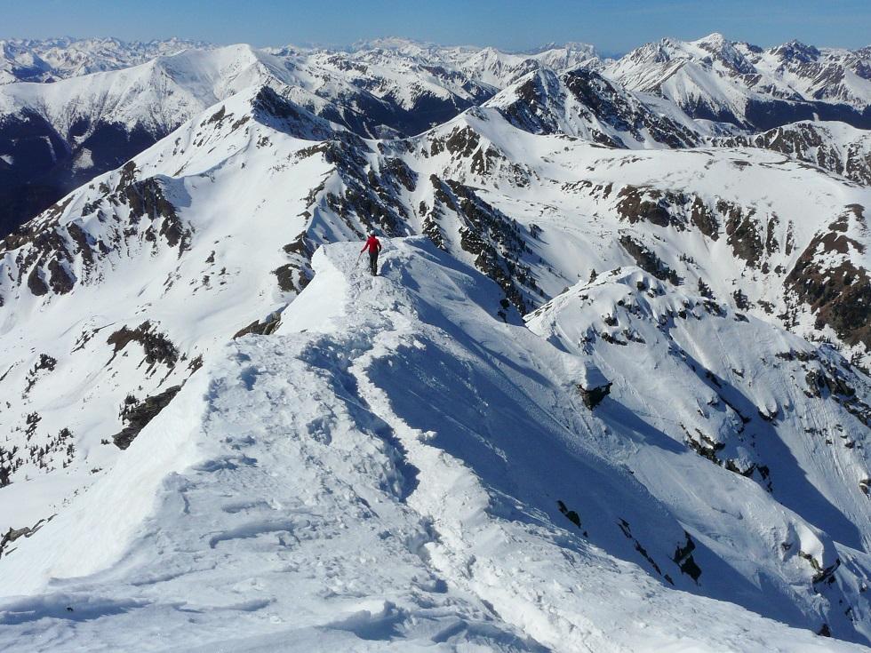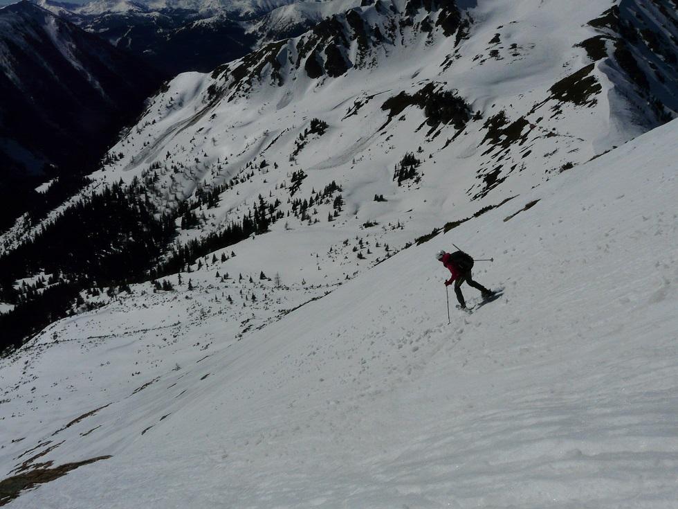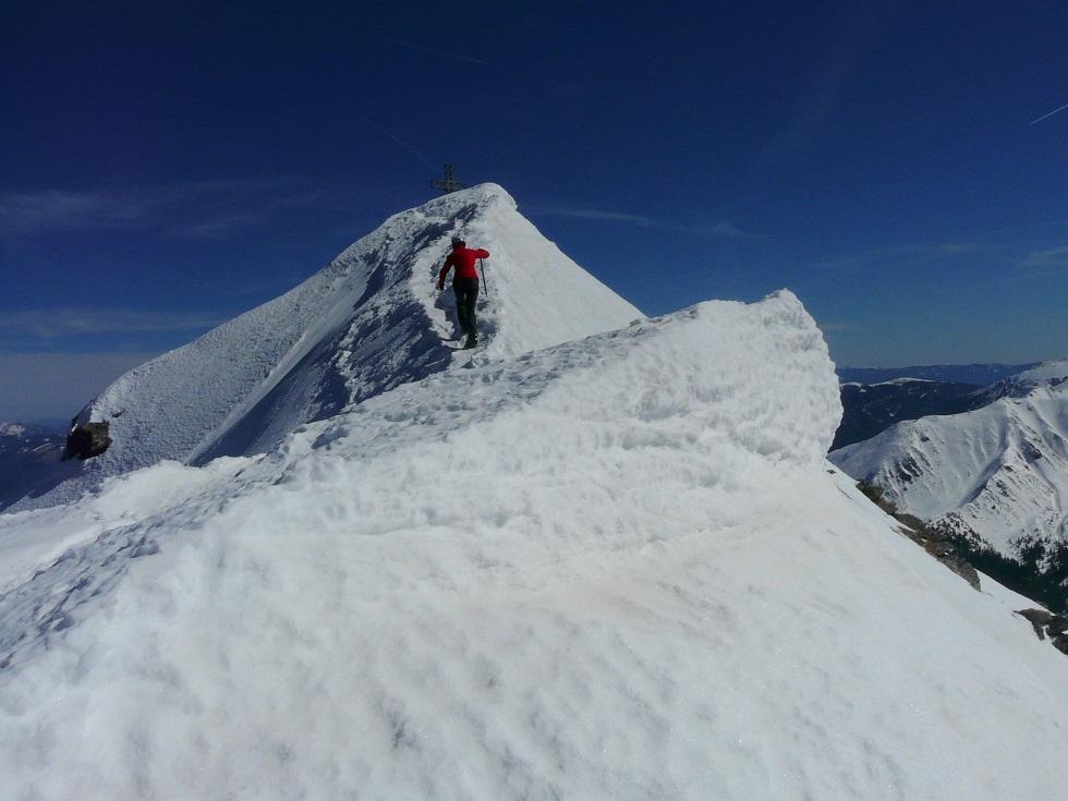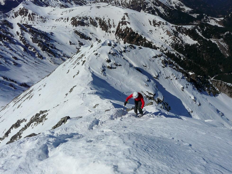 Der Grat ist ab Skidepot ohne Steigeisen recht heikel, Ausrutschen nicht empfehlenswert.