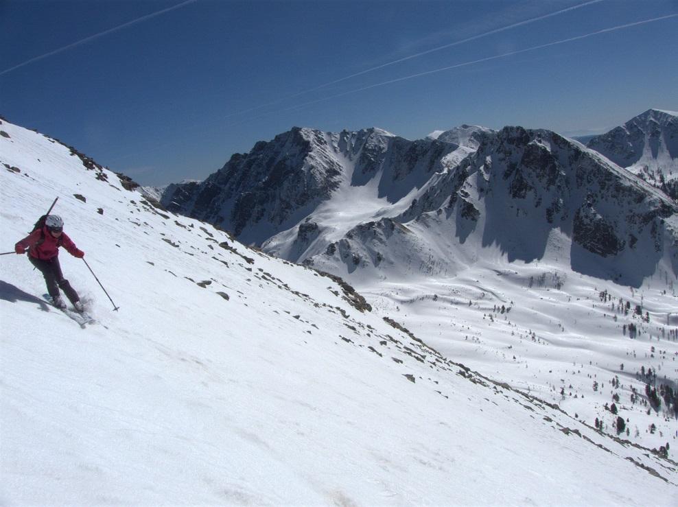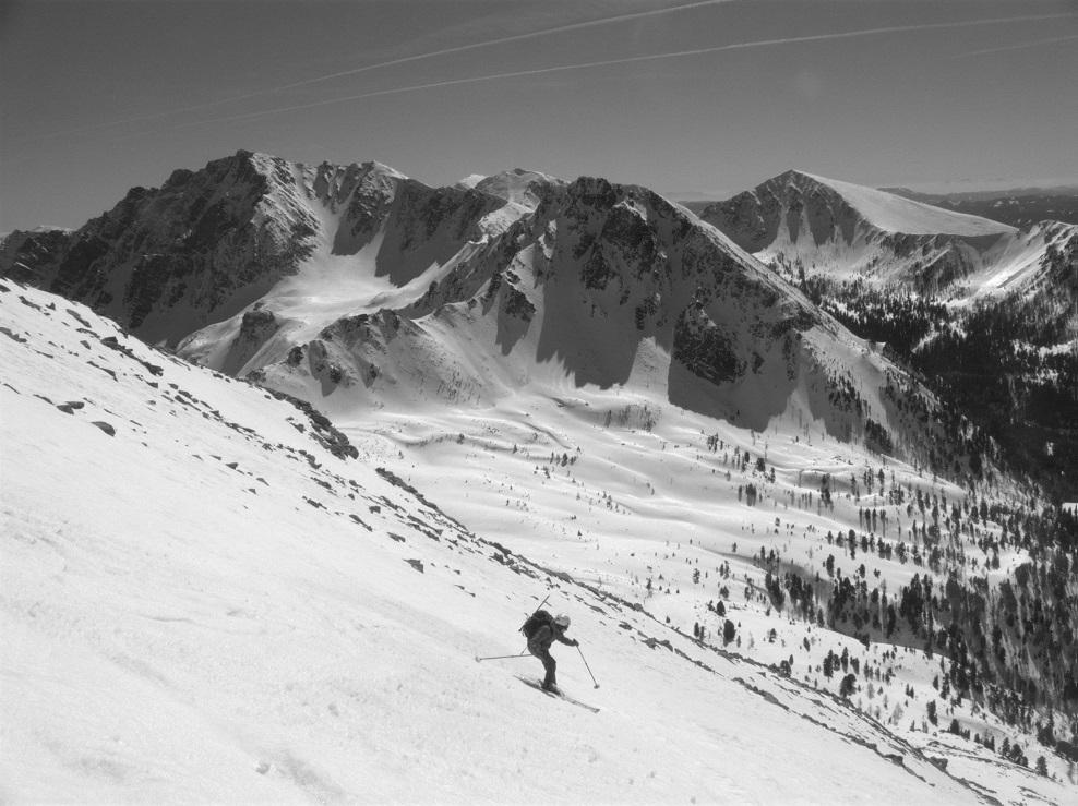 heute nur aus großer Entfernung. Herrliches Tourengebiet mit schönen Süd- und Westabfahrten.