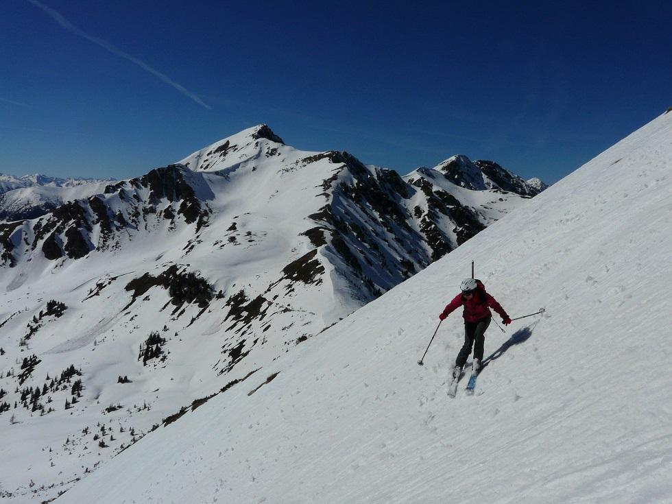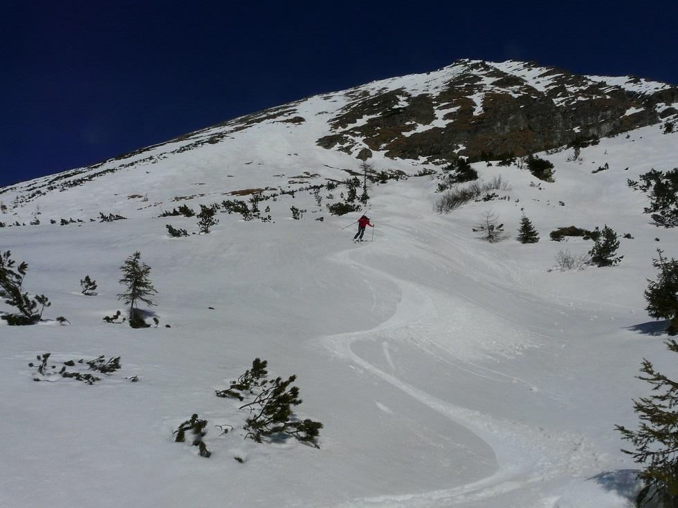 Abfahrt im Angesicht von Gamskogel und Hochleitenspitz