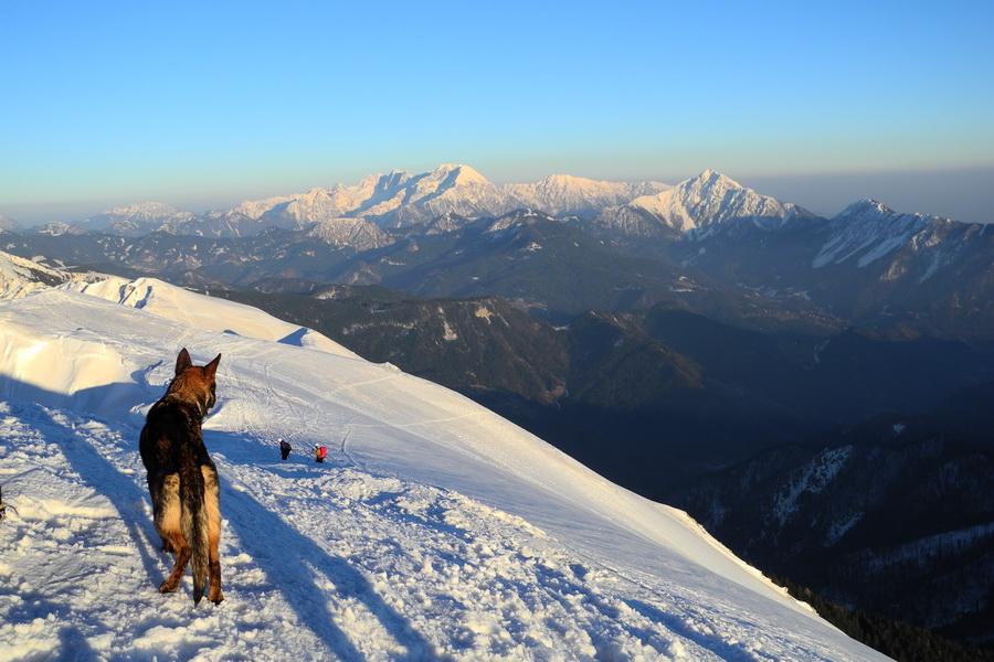 Today it was a perfect day. After job I started From Ljubelj at 4 p.m. The snow on the North sice of Begunjscica is more or less in the shadow and it was wery compact. Over "Sentanski plaz" I reached the top in 1 hour and 20 minutes. Even it was a working day there was a lot of ski tourers on the mountain. At the top there was 10 of us plus one dog. I was skiing down via "Centralna grapa". Conditions were perfect. Hard snow, a remarkable quantity of snow made steep or narrow passes much easyer. In only 15 minutes I was down by the car.