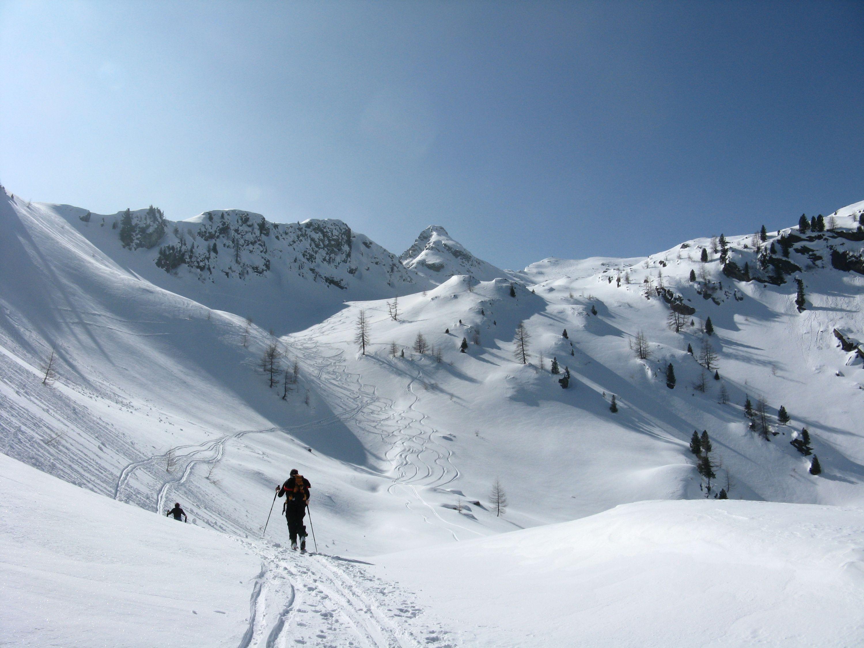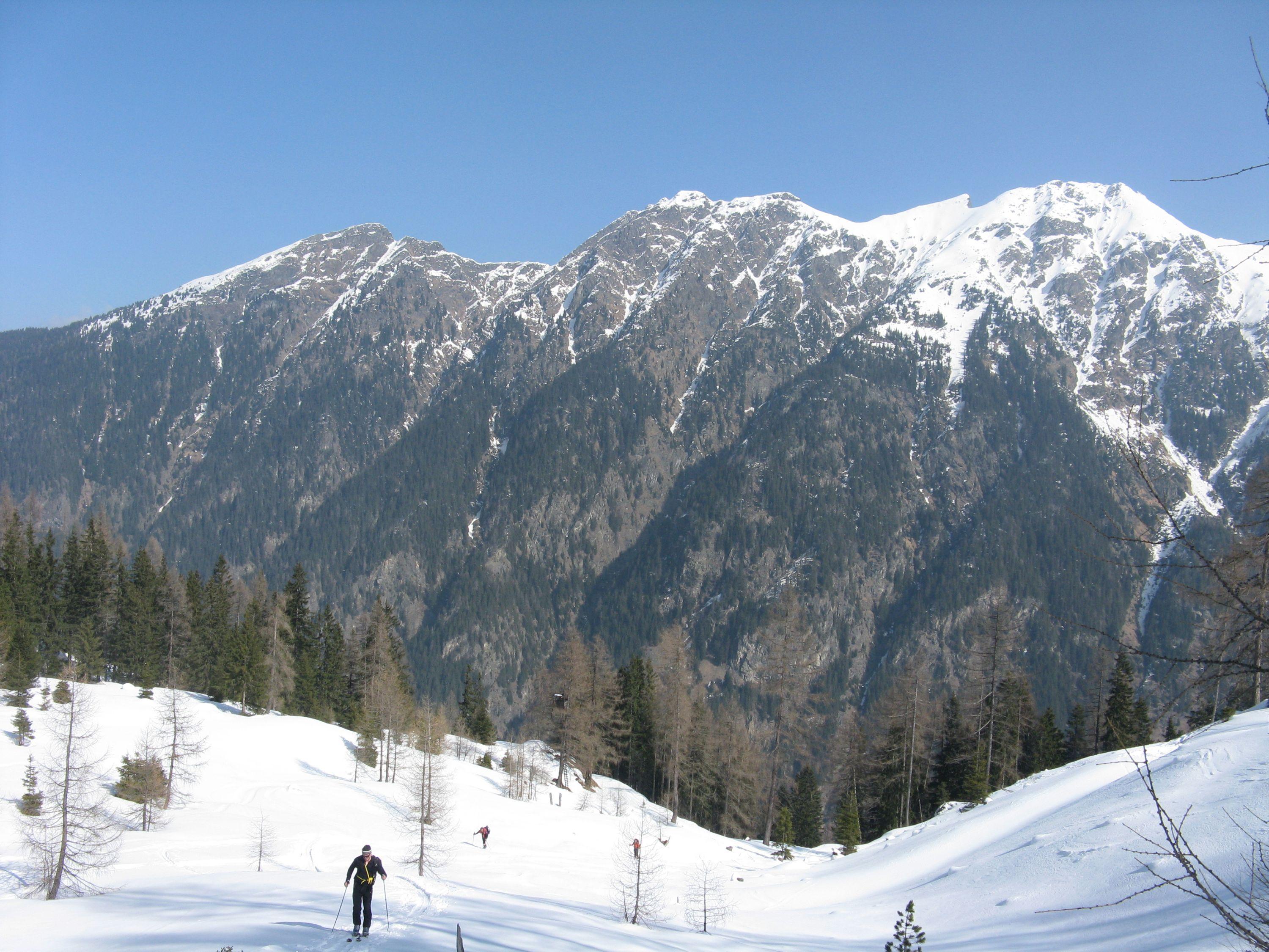 Schladminger Tauern Start beim GH Waldhäuslalm-Untertal,hier Fahrverbotstafel 9-17 Uhr die meisten Tourenkollegen sind aber trozdem bis zum Wh Weiße Gams zugefahren, ausreichende Schneelage bis ins Tal, längerer Forststraßenaufstieg,dem steilen,dichten Waldgürtel folgen offene schöne nordgerichtete Kare,bei der Abfahrt bis zur Forststraße schöner Pulverschnee,Forststraße ist wegen Fahrzeugspurrillen nicht so lustig zu befahren,schwacher Wind im Gipfelbereich