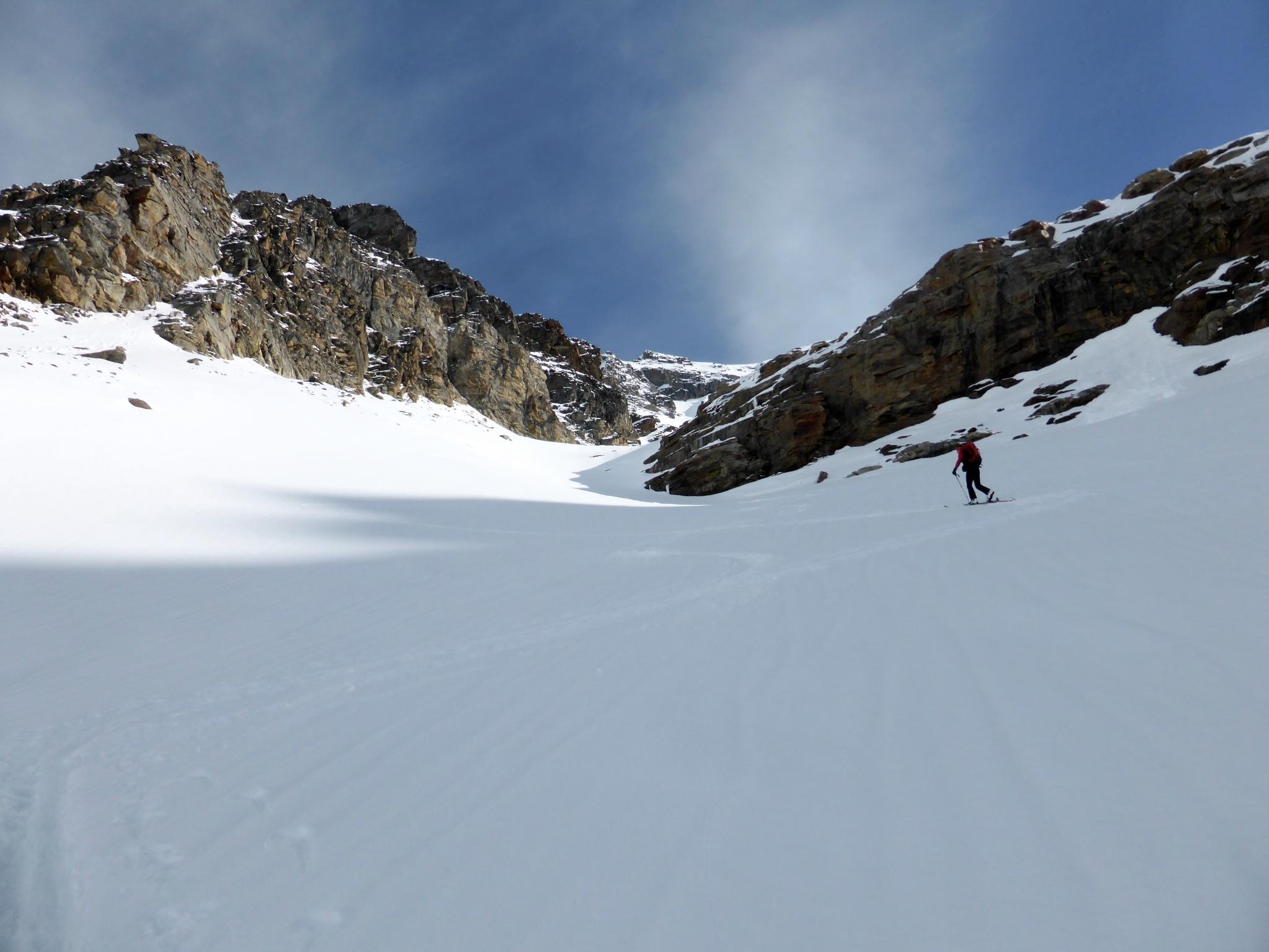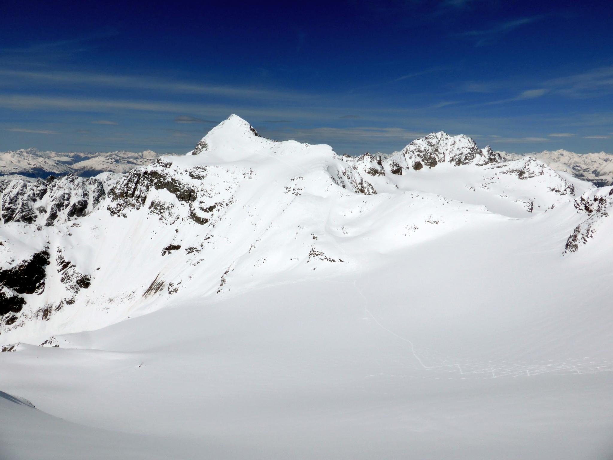 Allgemeine Verhältnisse, Schnee: Beste Bedingungen, in der Früh hart gefrorener Firn, in den Gipfellagen sonnseitig aufweichender Neuschnee, von der Plattenspitze Traumpulver, dann weicher Neuschnee, im Rosimtal Firn. Abfahrt bis Sulden.