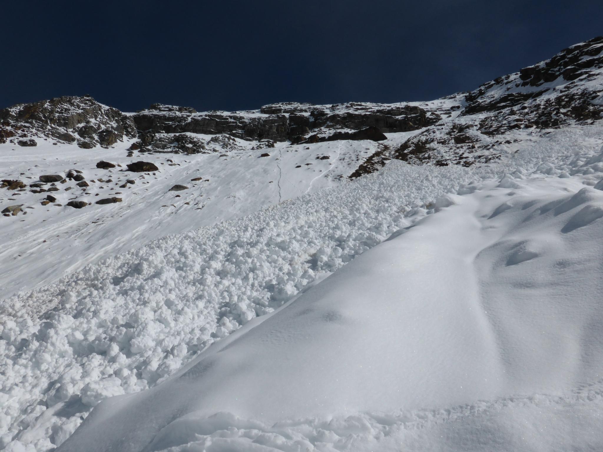Lawinen: Kleine bis mittlere Nassschneelawinen aus den sonnseitigen Lagen am Nachmittag. Am Ortler hat am Vortag (Sonntag) eine Lawine, ausgelöst vermutlich durch den Abbruch eines Seracs, drei Tourengeher verschüttet, die glimpflich davongekommen sind und mit dem Hubschrauber geborgen wurden. Unfallzeitpunkt ca. 07.00 Uhr morgens laut zweier Beteiligter, die wir zufällig auf der Vertainspitze getroffen haben.