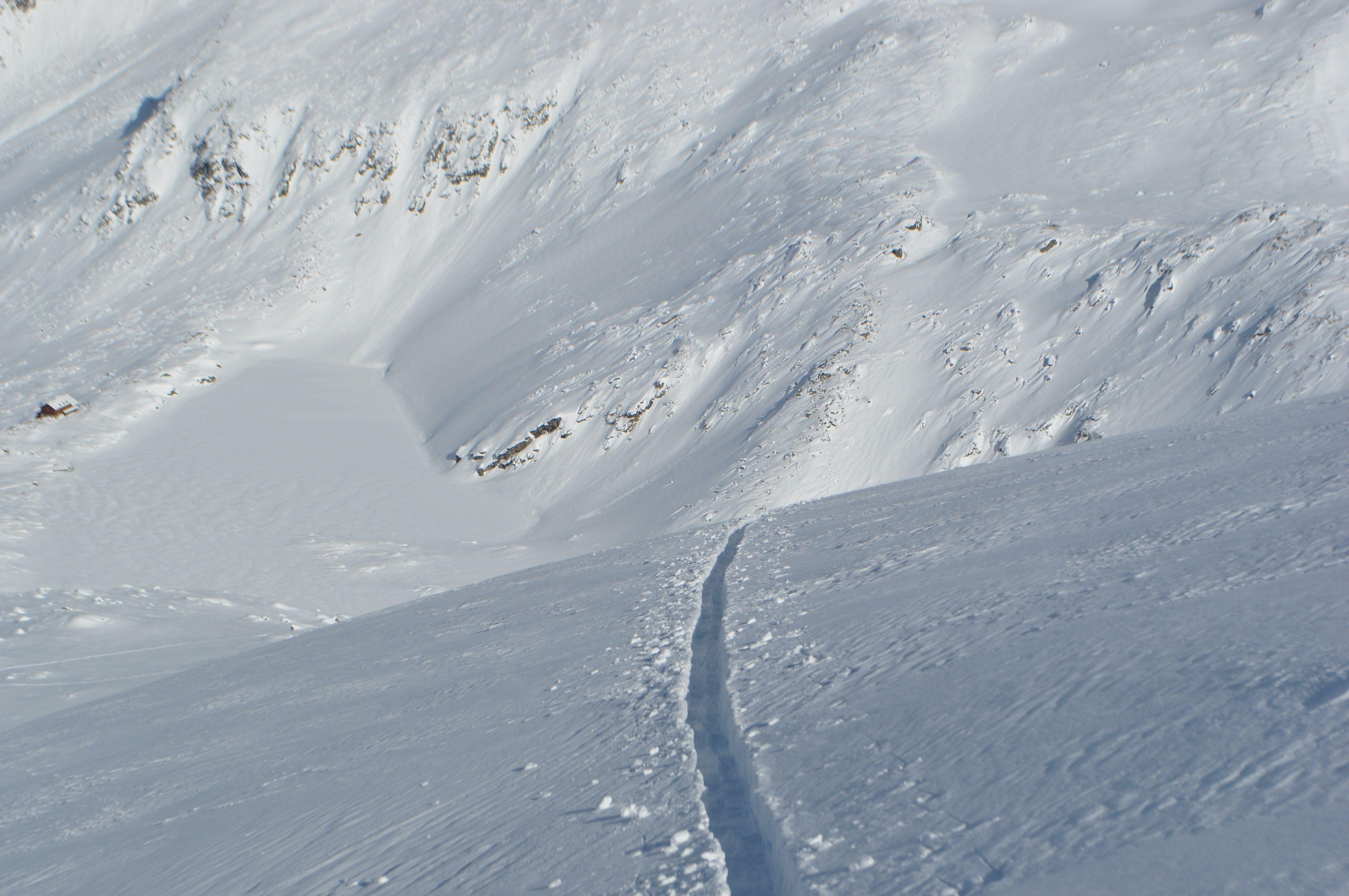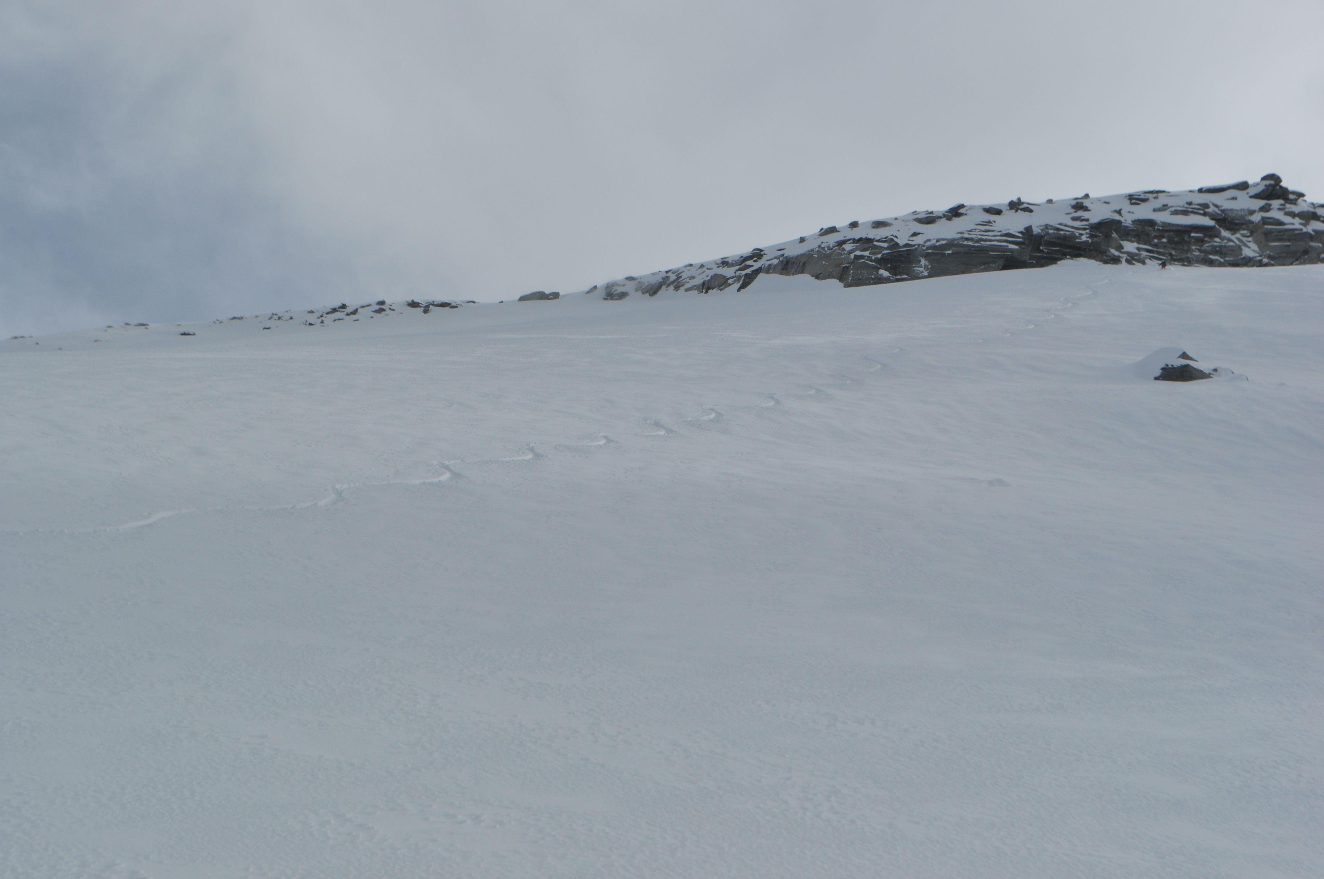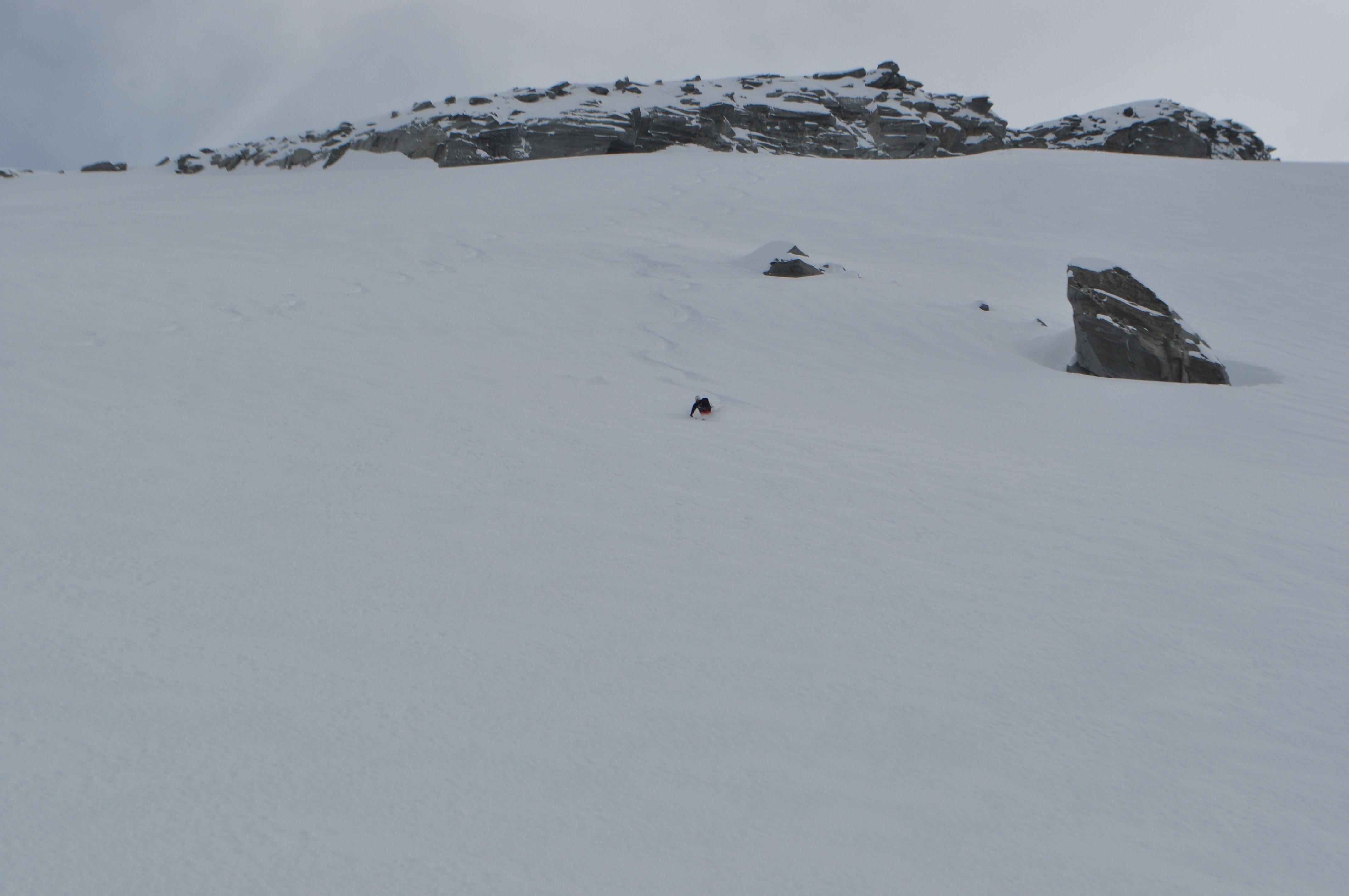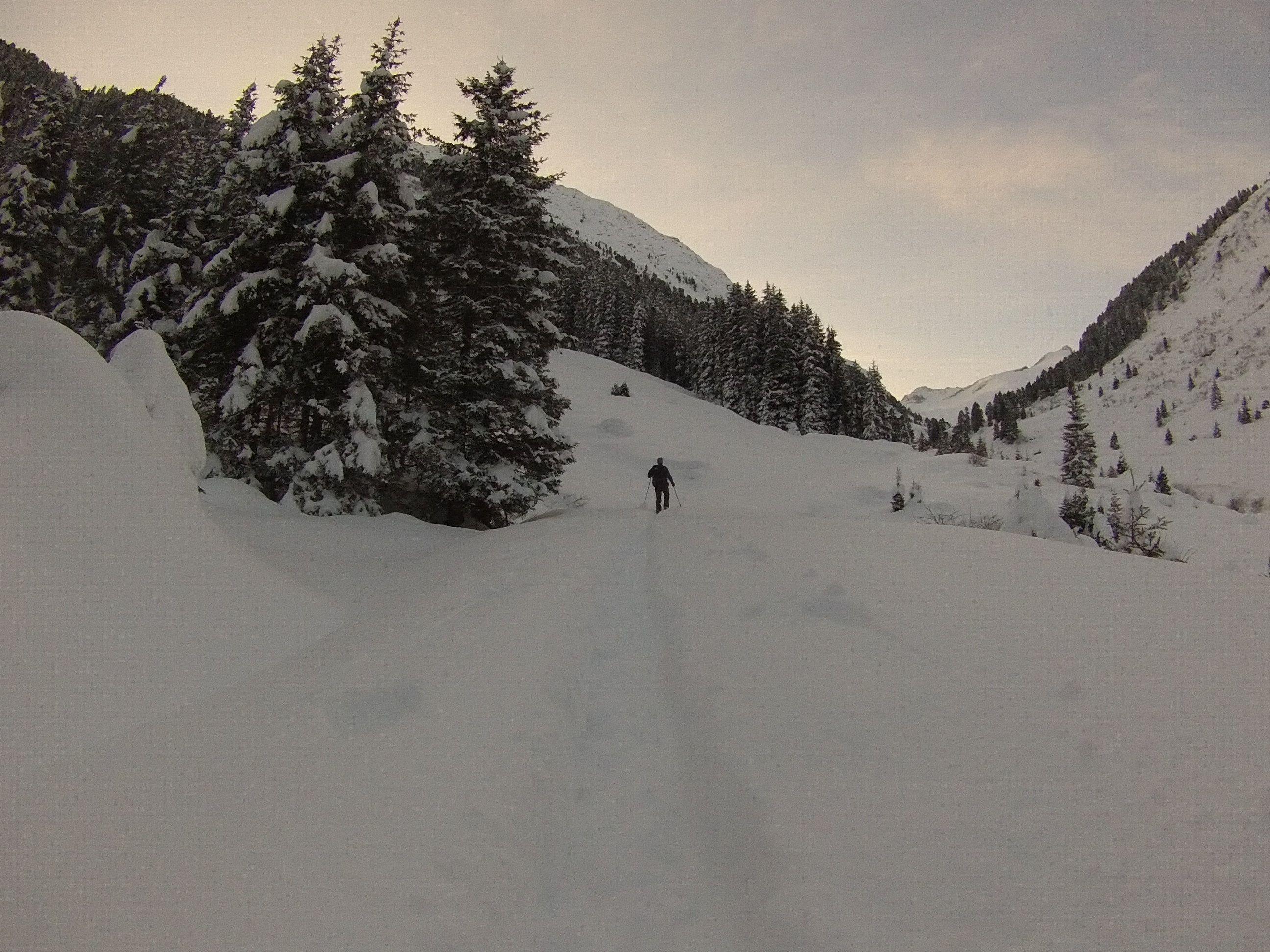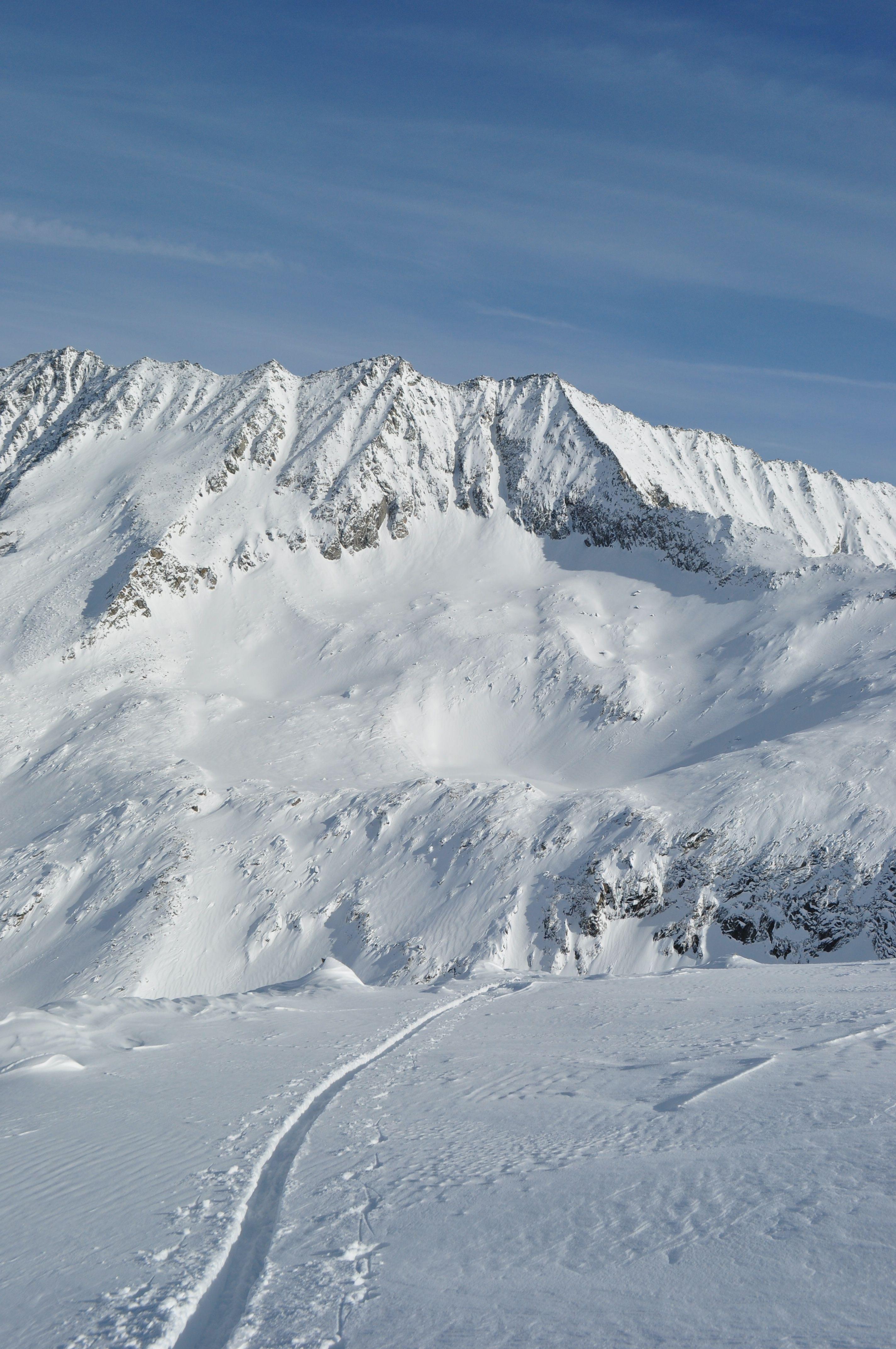 40–50 cm Neuschnee und gute Wetteraussichten = zweite Gablerbesteigung, Unterstützung gibt es diesmal von Papa. 1 Steilstufe mit Ski auf den Füßen, keine Einwehungen, keine Rutsche, aufpassen heißt es auf verdecktes Blankeis am Rand, 2 Steilstufe (Glatze) auch kaum windbehandlet und kompakt, die Spurarbeit verlängert sich durch den Neuschnee von 4 auf 6 h, dafür Traumabfahrt!