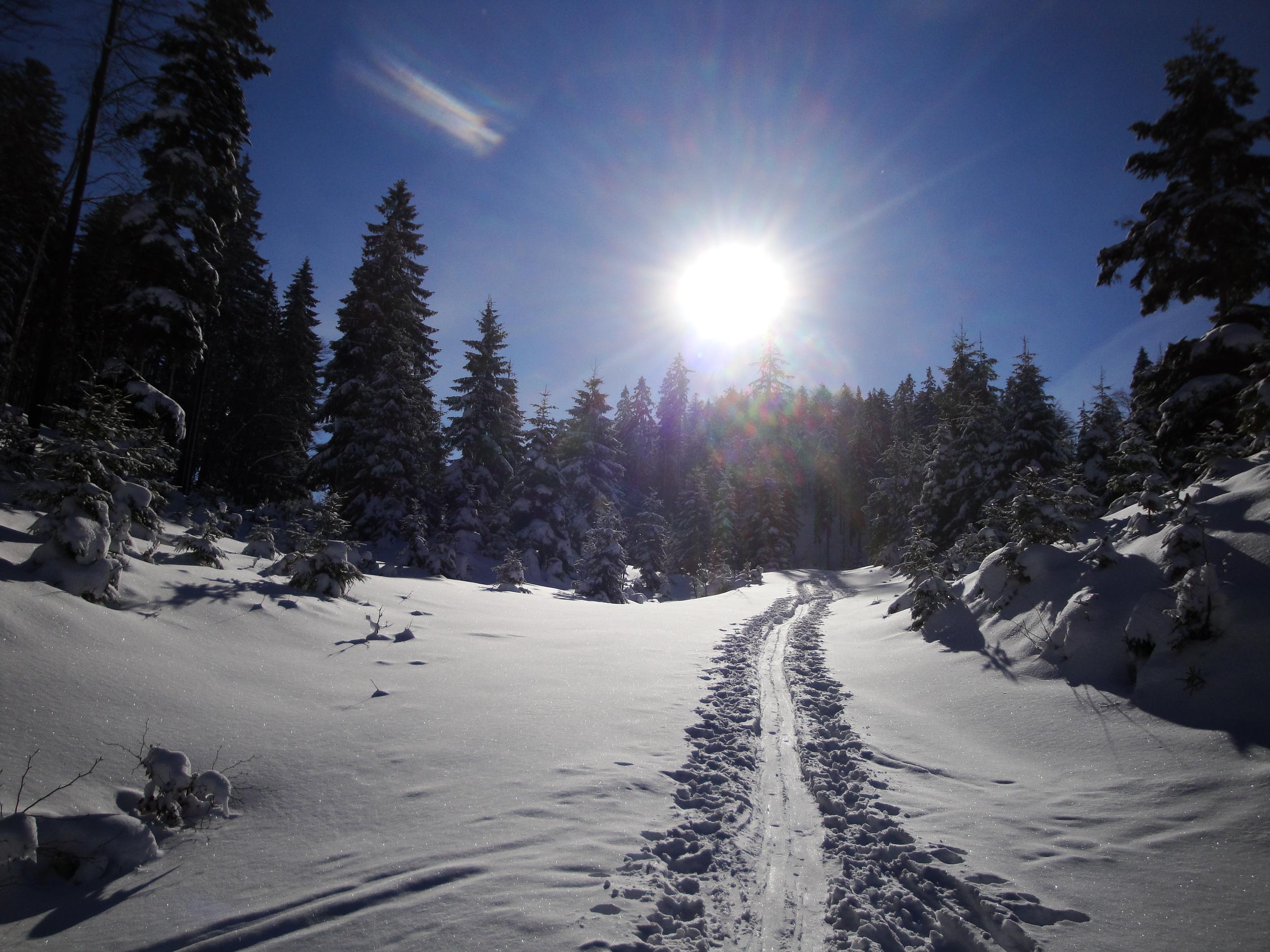 Dank der Schneefälle der letzten Tage ist in Bad Ischl von der Talstation der Katrinseilbahn (kein Winterbetrieb) aus ein Anstieg über den Windengraben auf den Feuerkogel (1460m) und zur Katrinalm möglich. Die Katrinalmhütte ist bewirtschaftet. Die Abfahrt über die ehemalige Schipiste ist bis ins Tal möglich. Im oberen Teil sind die Bedingungen ausgezeichnet. Nur am letzten Stück ist mit Steinkontakt zu rechnen. Im Gelände ist ein Steinkontakt praktisch sicher (fehlender Untergrund). Im Tal 20cm, auf 1000m etwa 50cm, auf der Alm circa 70-80 cm Neuschnee.