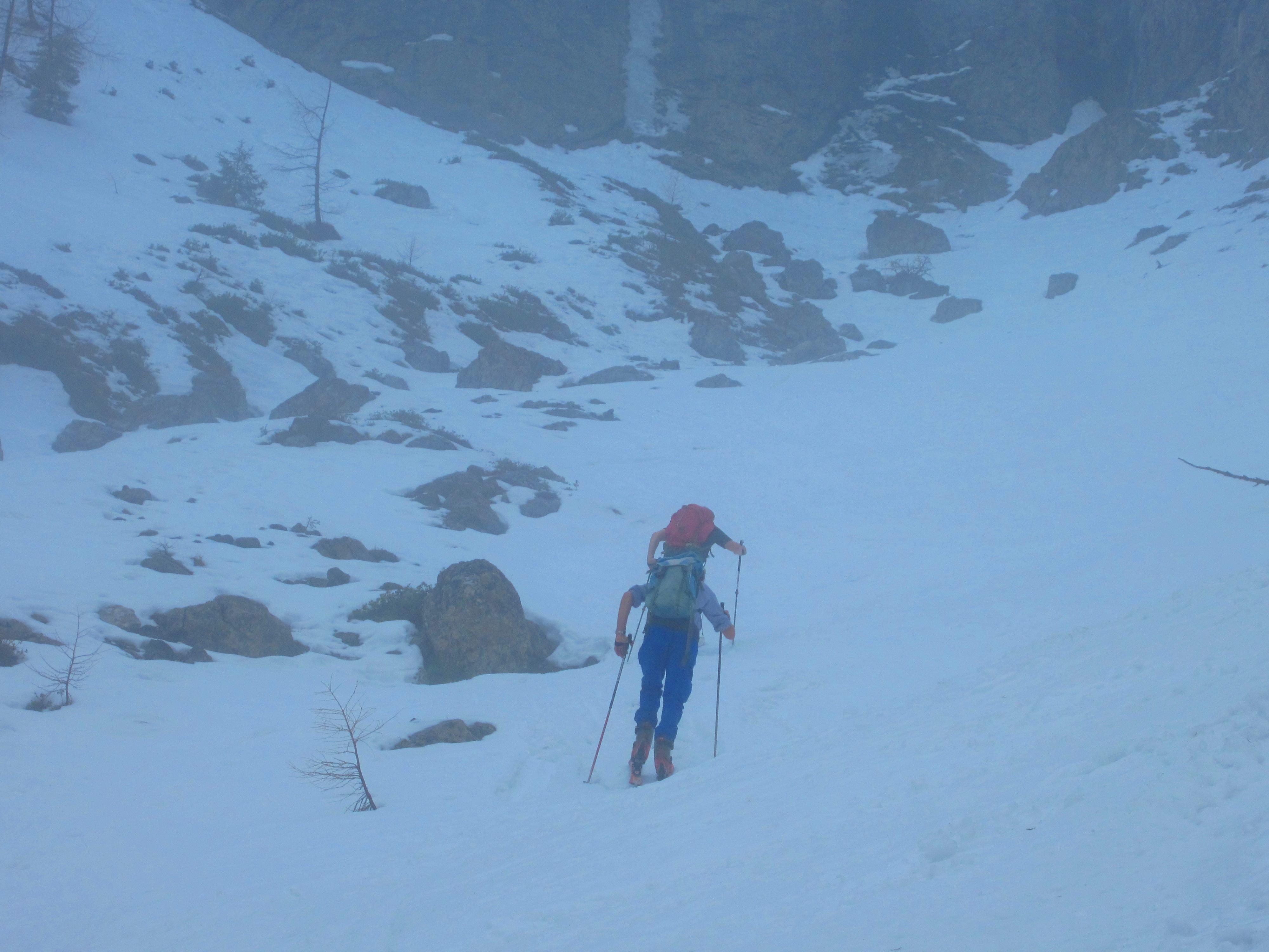 Dann wieder durchgehend mit Schi bis zum Goinger Törl.